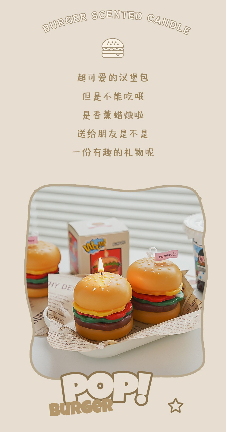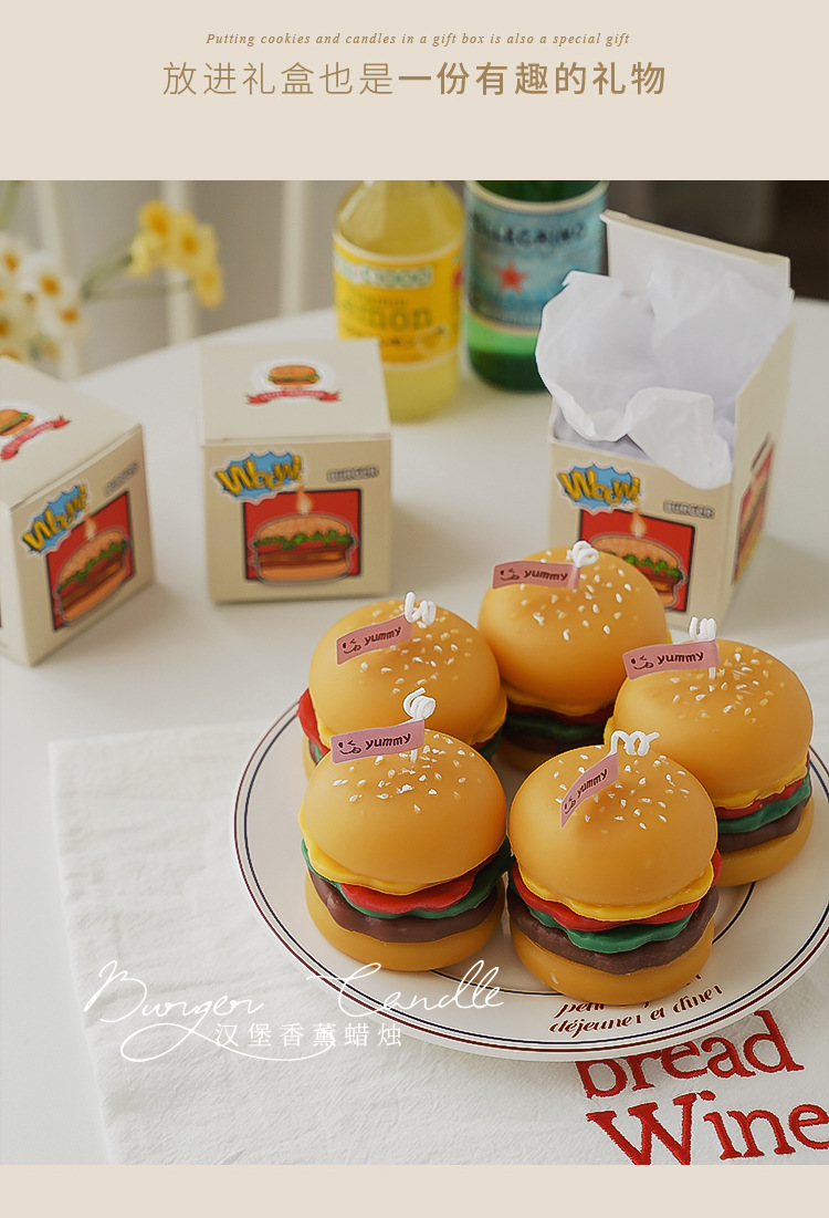 Hamburguesa Vela de aromaterapia Regalo de mano Vela de simulación al por mayor Regalo de aromaterapia de cumpleaños Cera de modelado de fragancia de candle