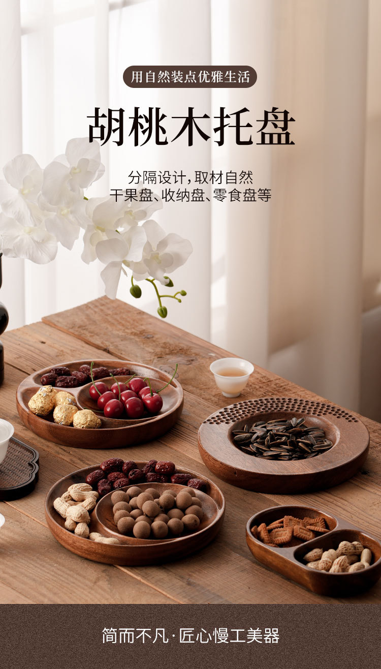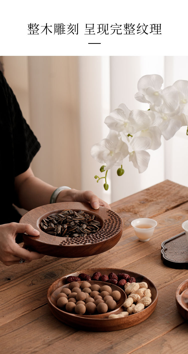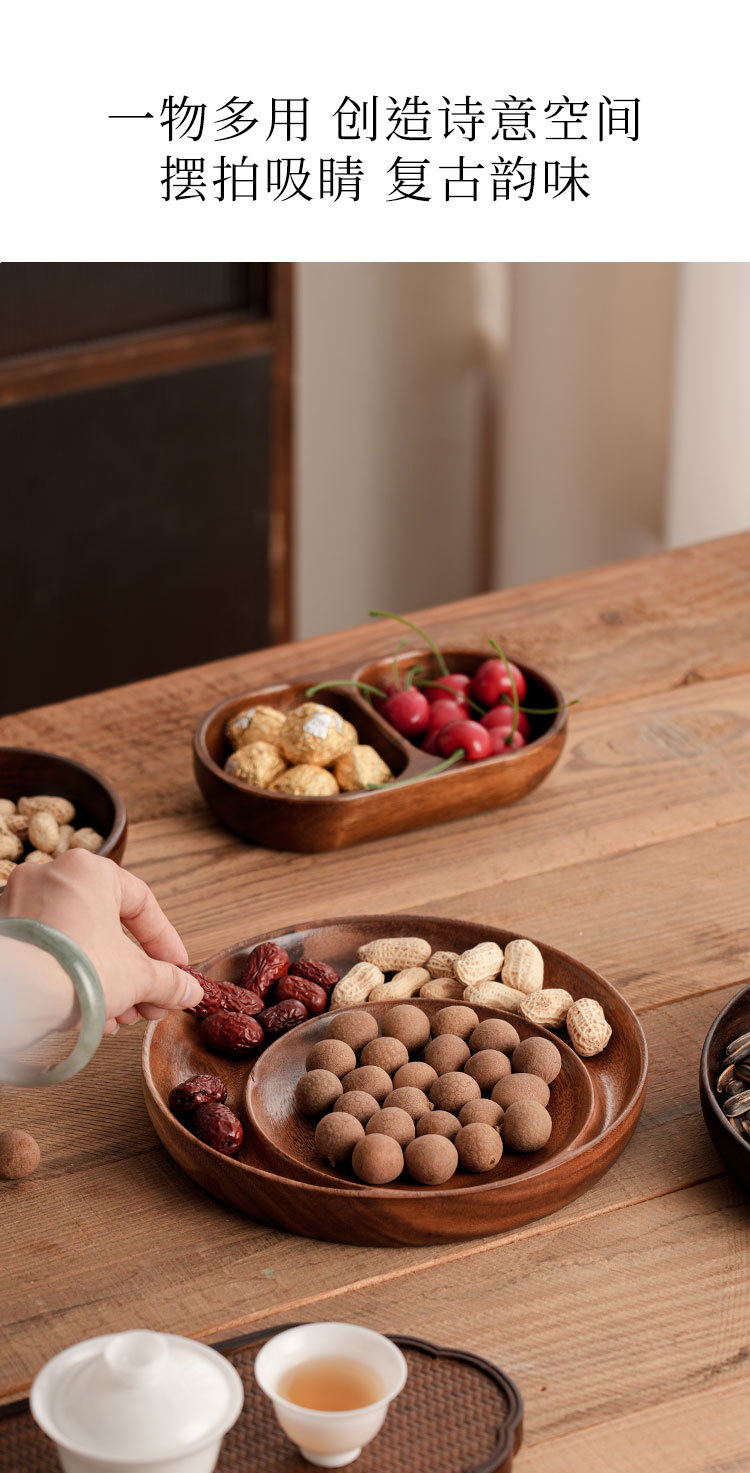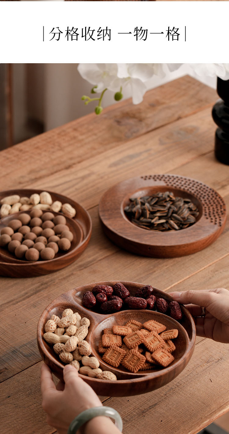 Plato de frutas secas de nuez, plato de refrigerios, plato de madera sólida, caja de almacenamiento, bandeja doméstica comercial de Amazon