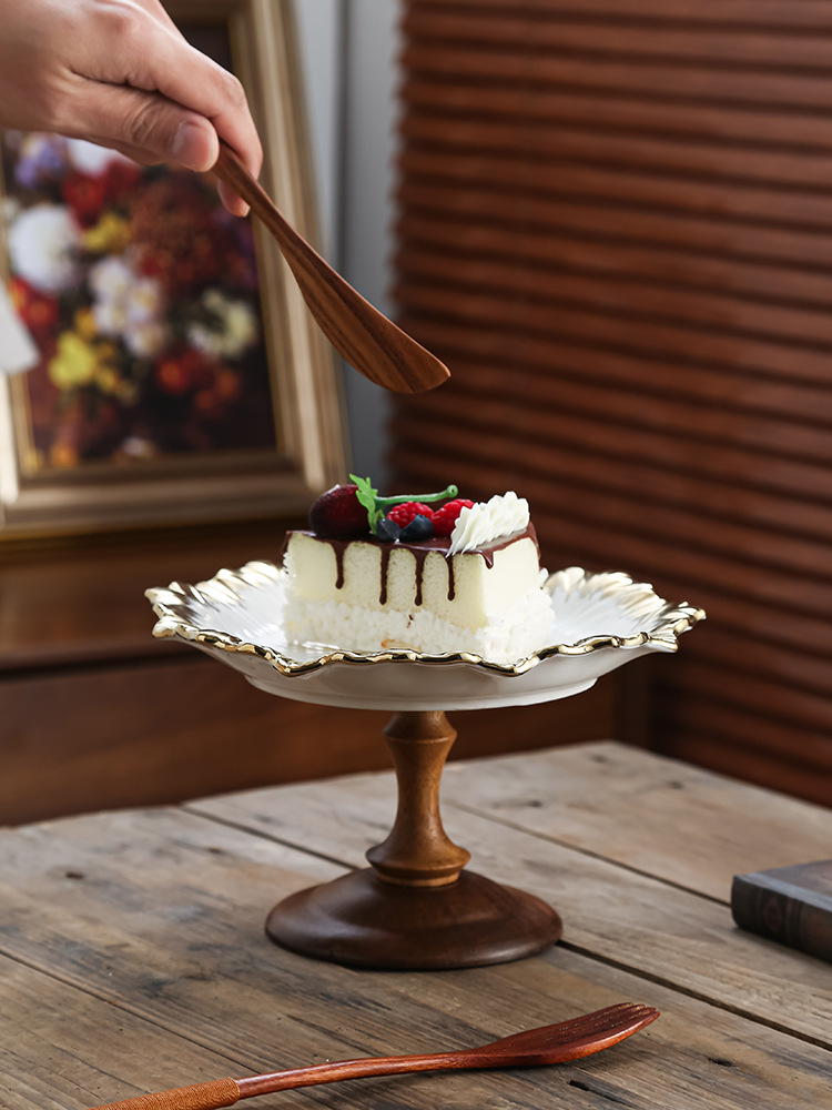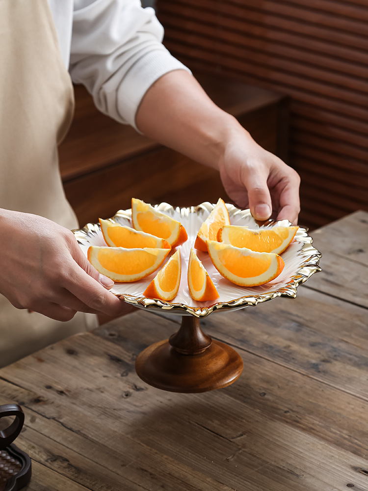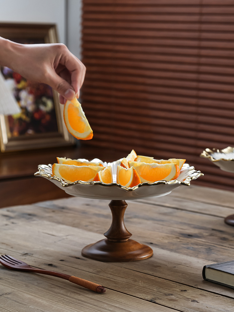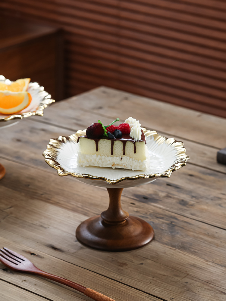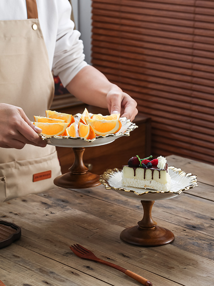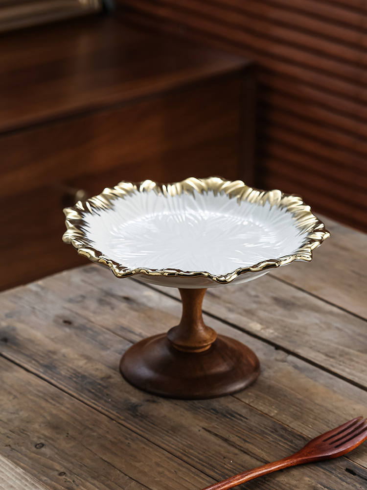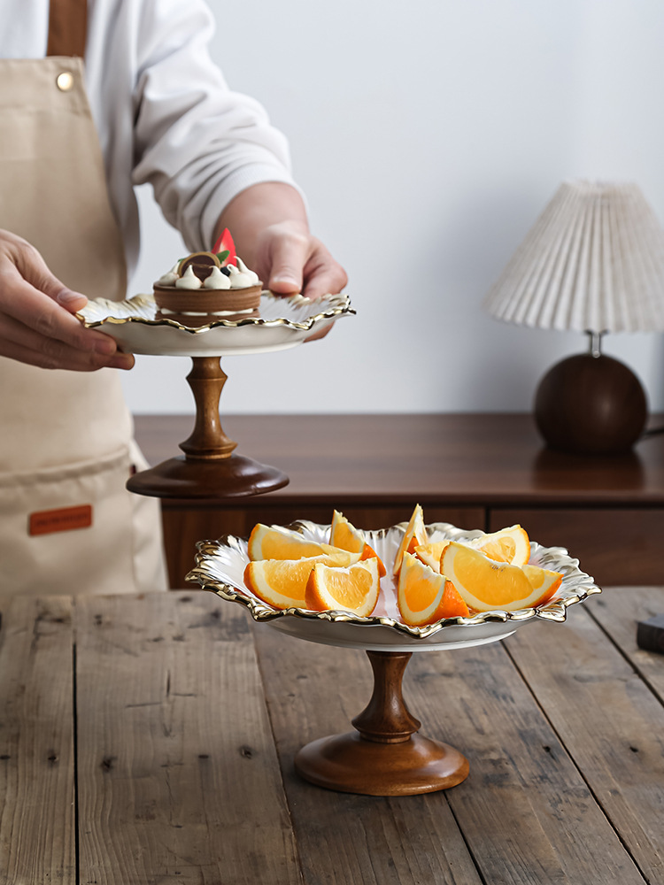 Transfronterizos de cerámica de madera de pie alto bandeja de frutas bandeja de pan dulces postre pastel estante de exhibición bandeja al por mayor