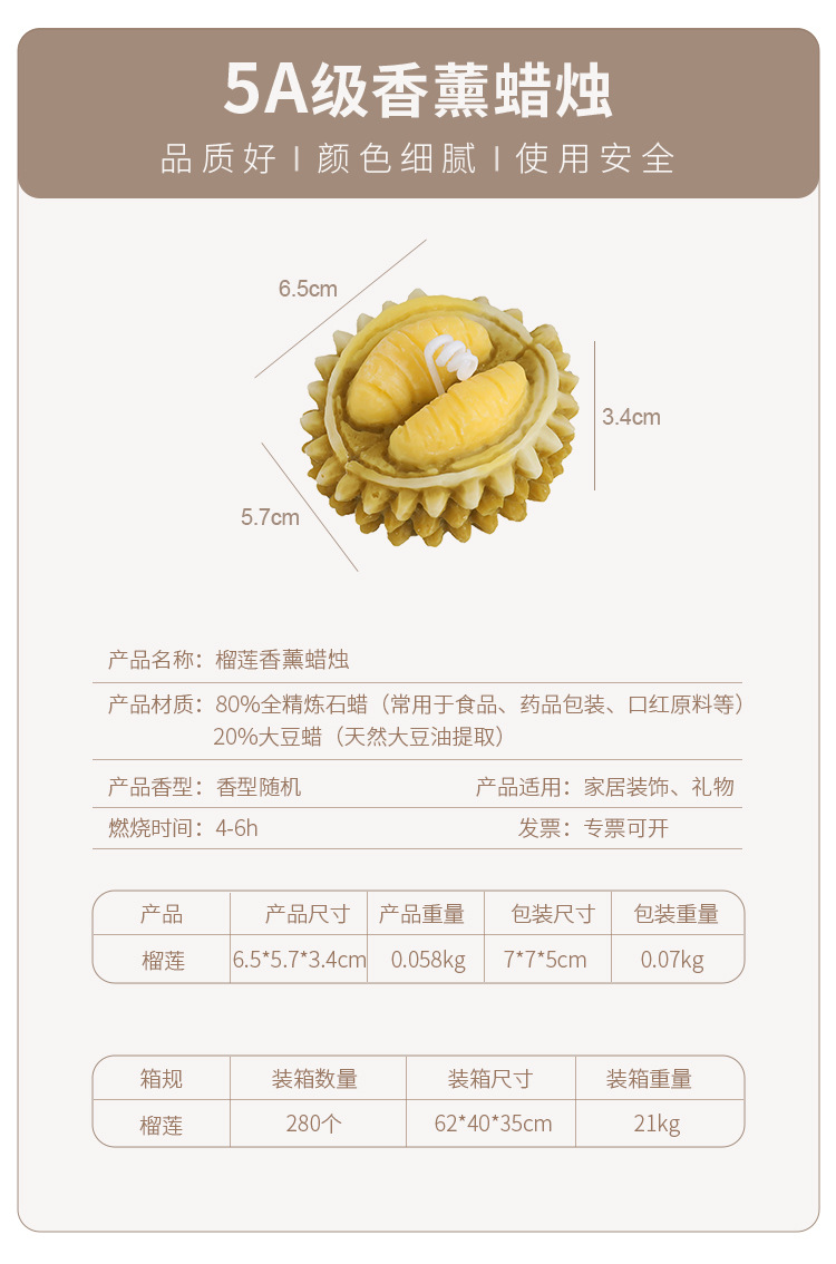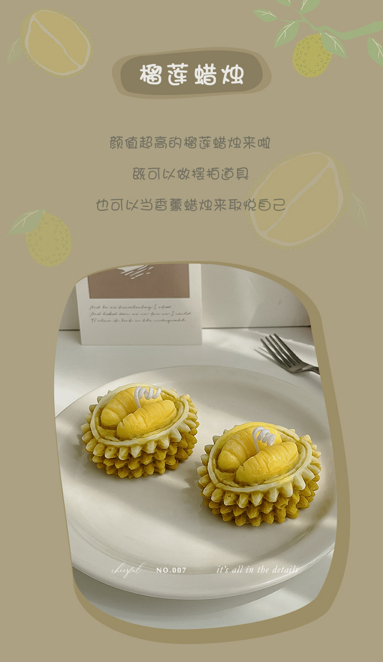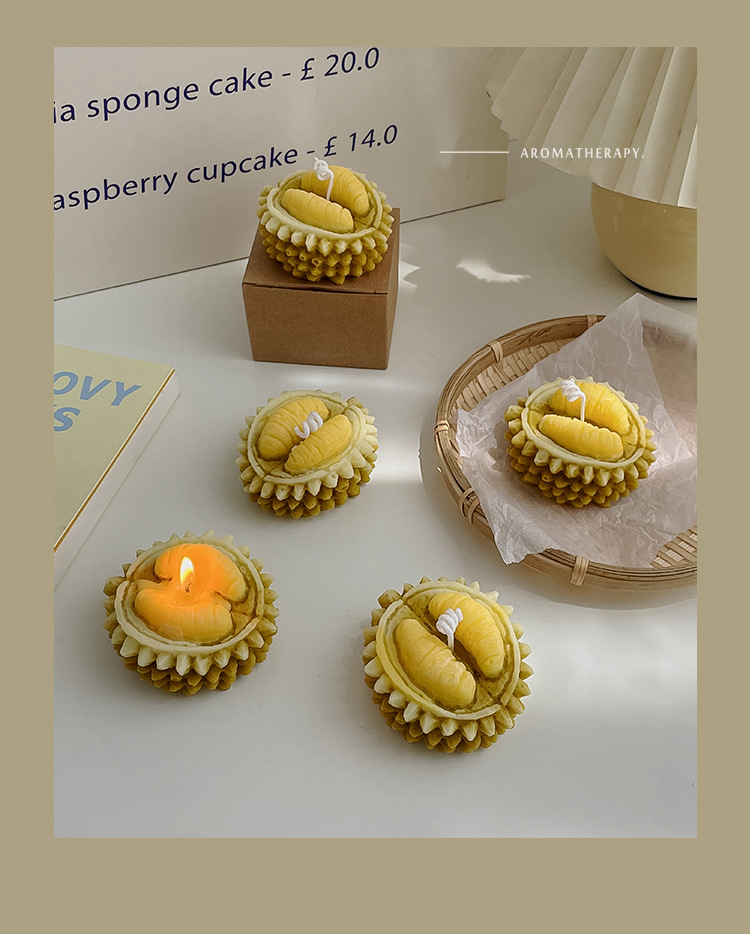 Fábrica al por mayor aromaterapia vela Regalo de Cumpleaños creativo vela simulación decoración fruta Durian aromaterapia vela