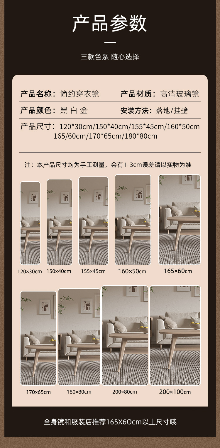 Espejo de cuerpo entero, espejo de piso a techo, hogar, pared simple, pared, celebridad neta, niña, maquillaje de dormitorio, espejo de ajuste de pared