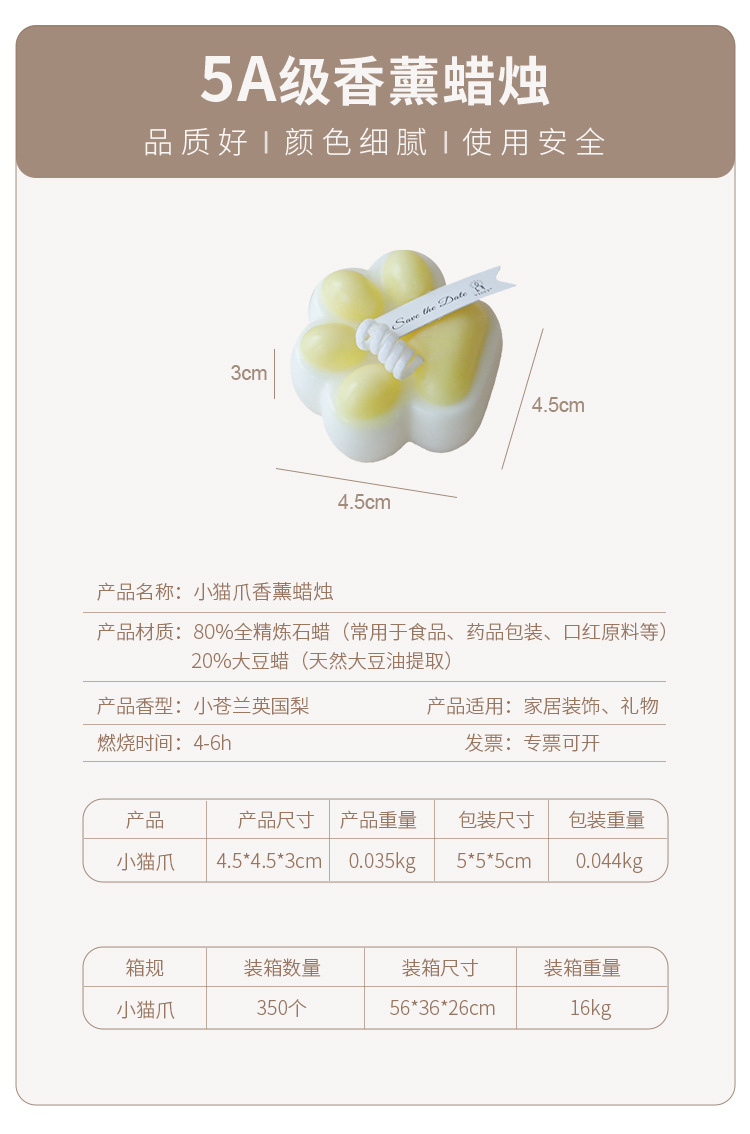 Venta al por mayor aromaterapia vela ins estilo gato forma regalo creativo DIY decoración del hogar fragancia pequeña garra de gato vela