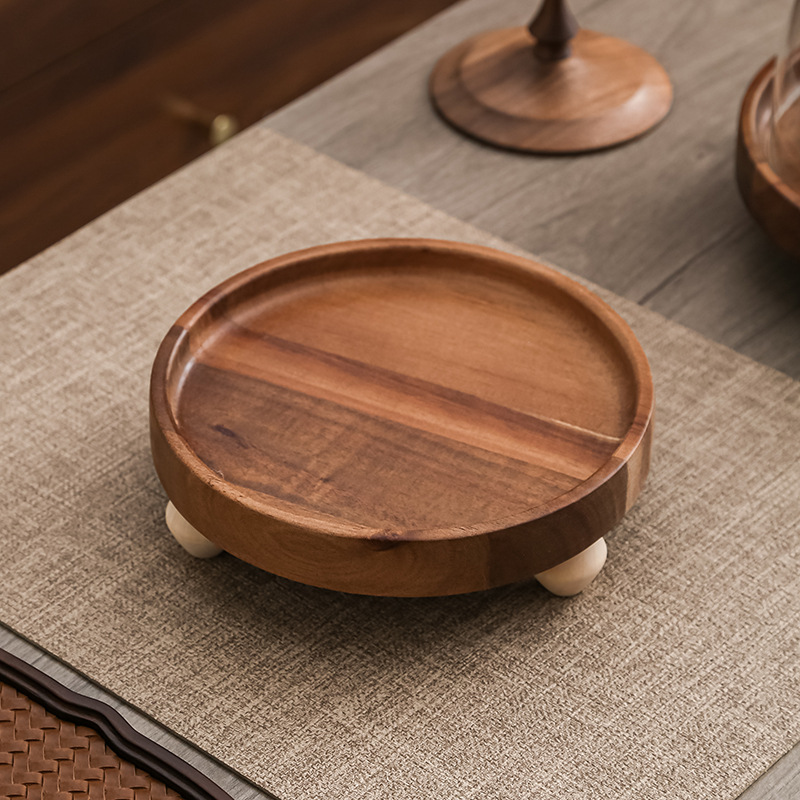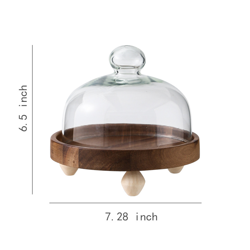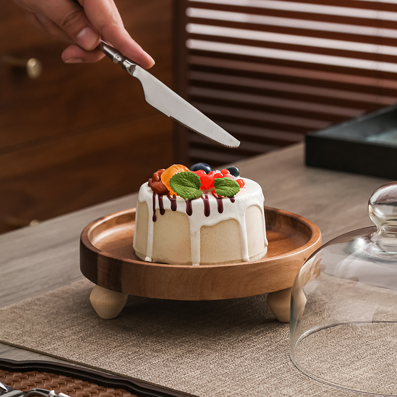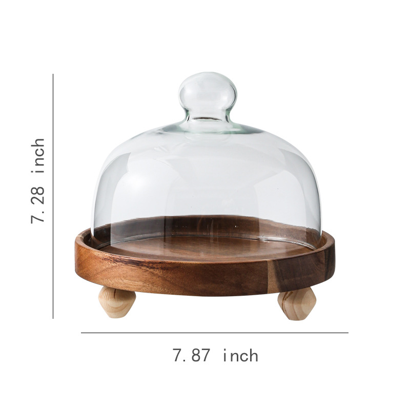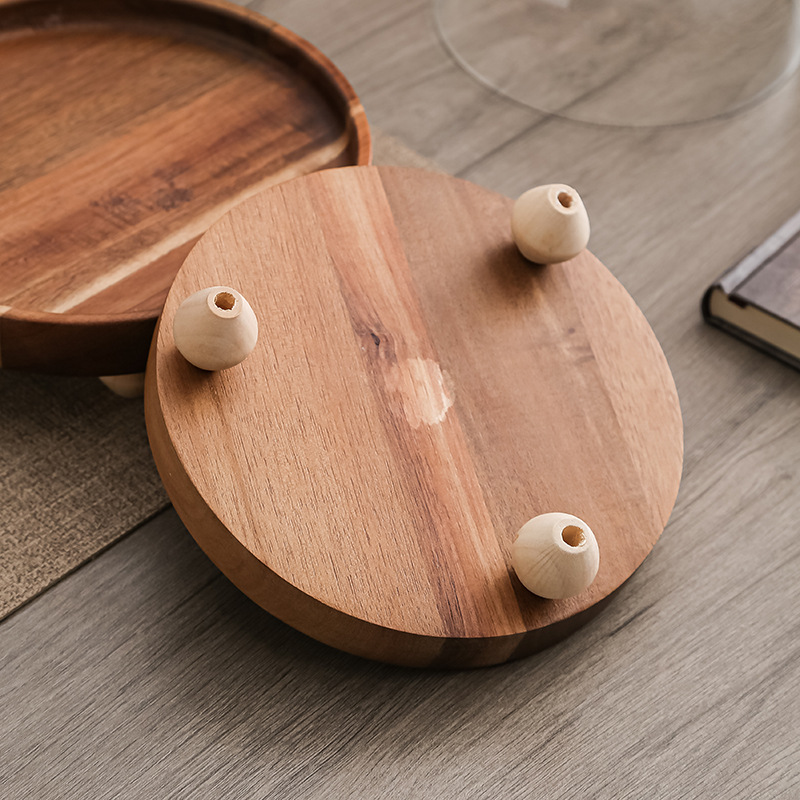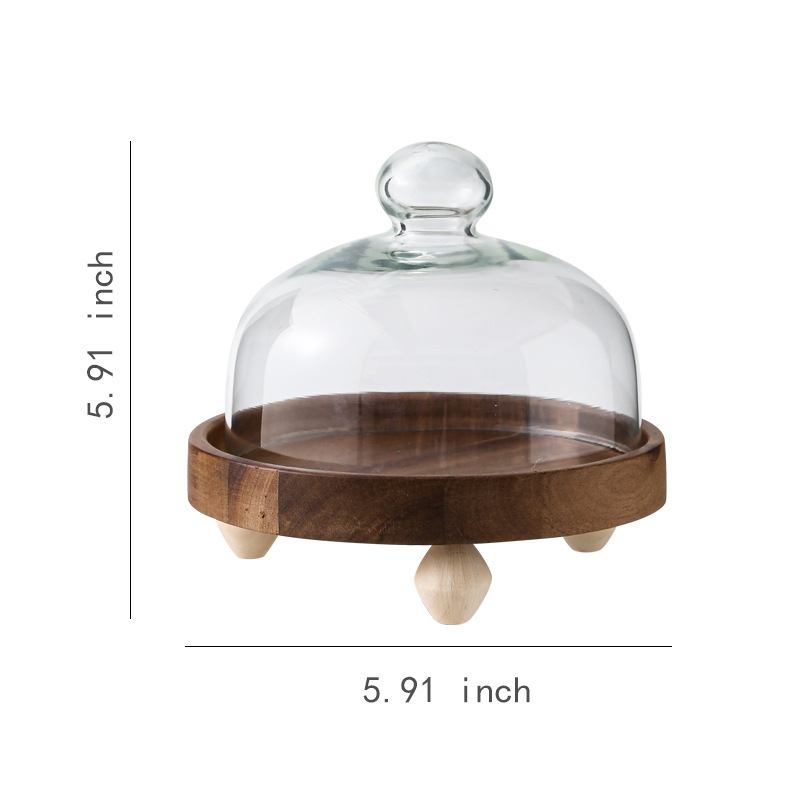 Pastel alto de madera de acacia, postre, tazón de fruta, plato de pan, plato de exhibición de restaurante de hotel, cubierta de vidrio a prueba de polvo
