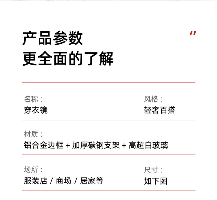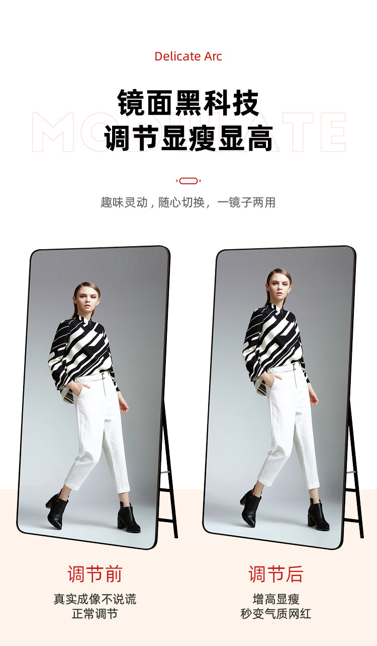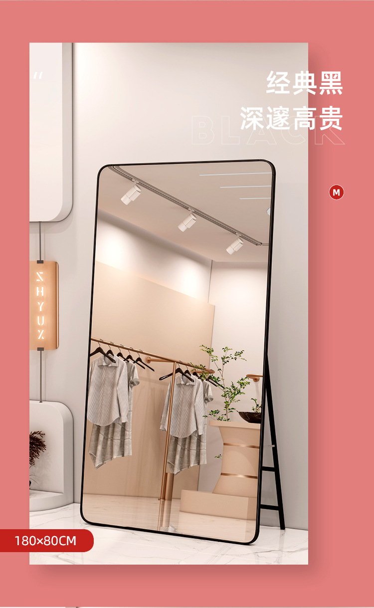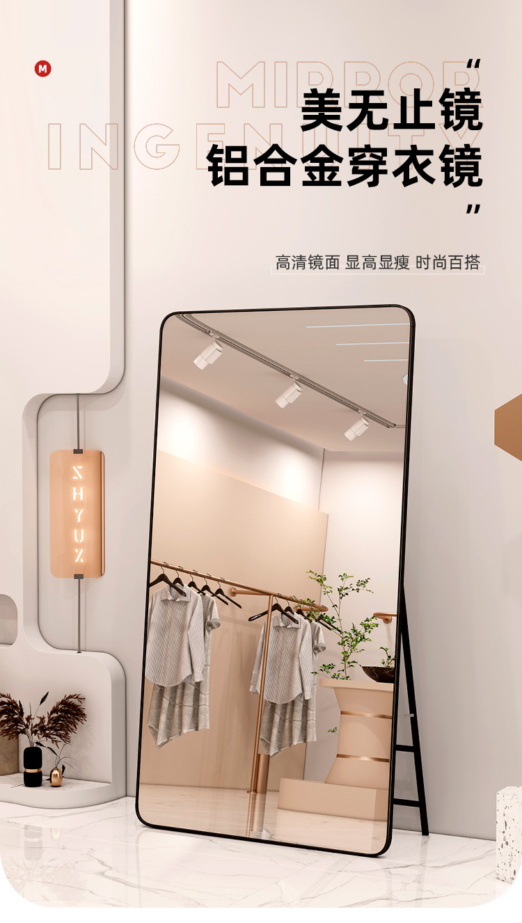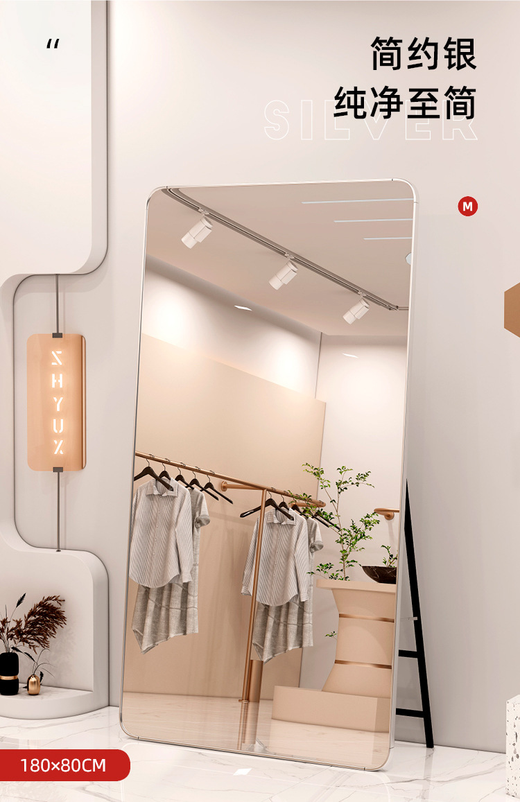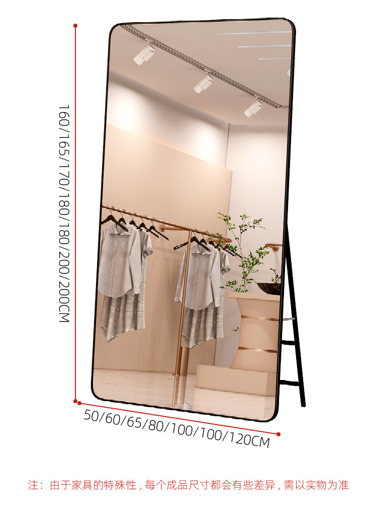 Espejo de pie, espejo de cuerpo completo, tienda de ropa de belleza, transmisión en vivo, tienda de ropa de mujer delgada y alta, espejo de vestir