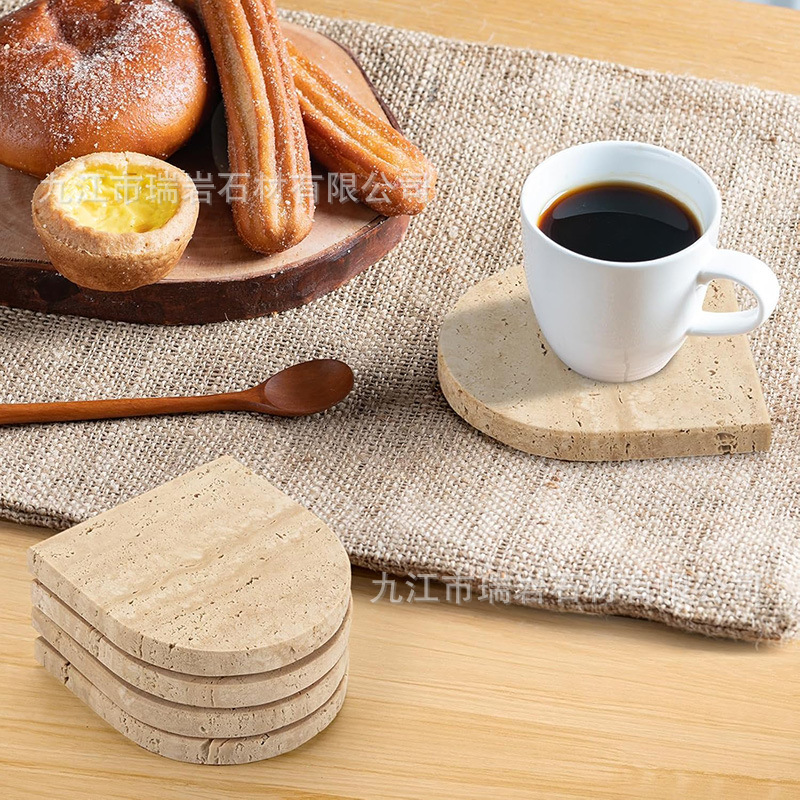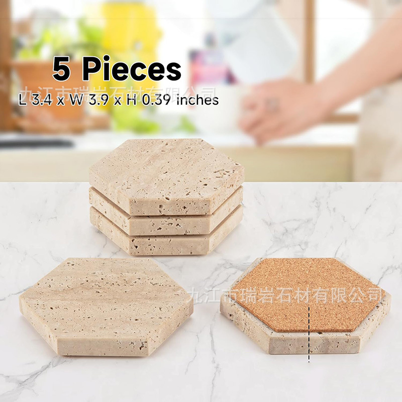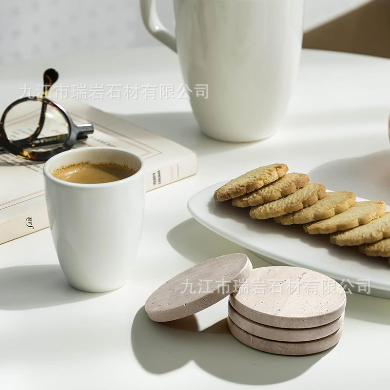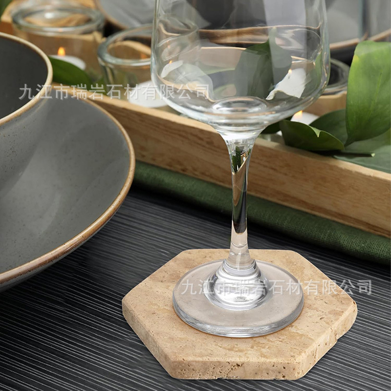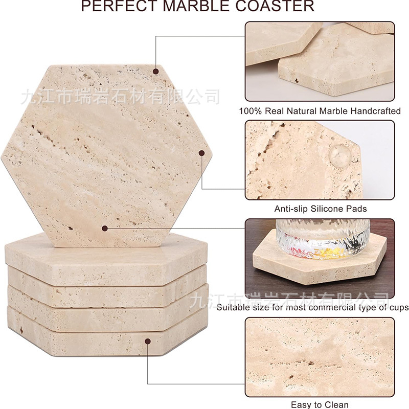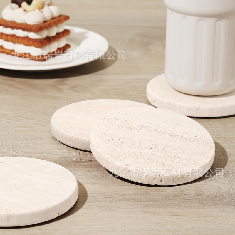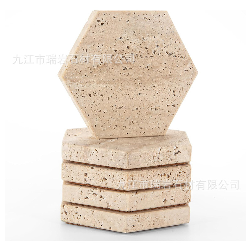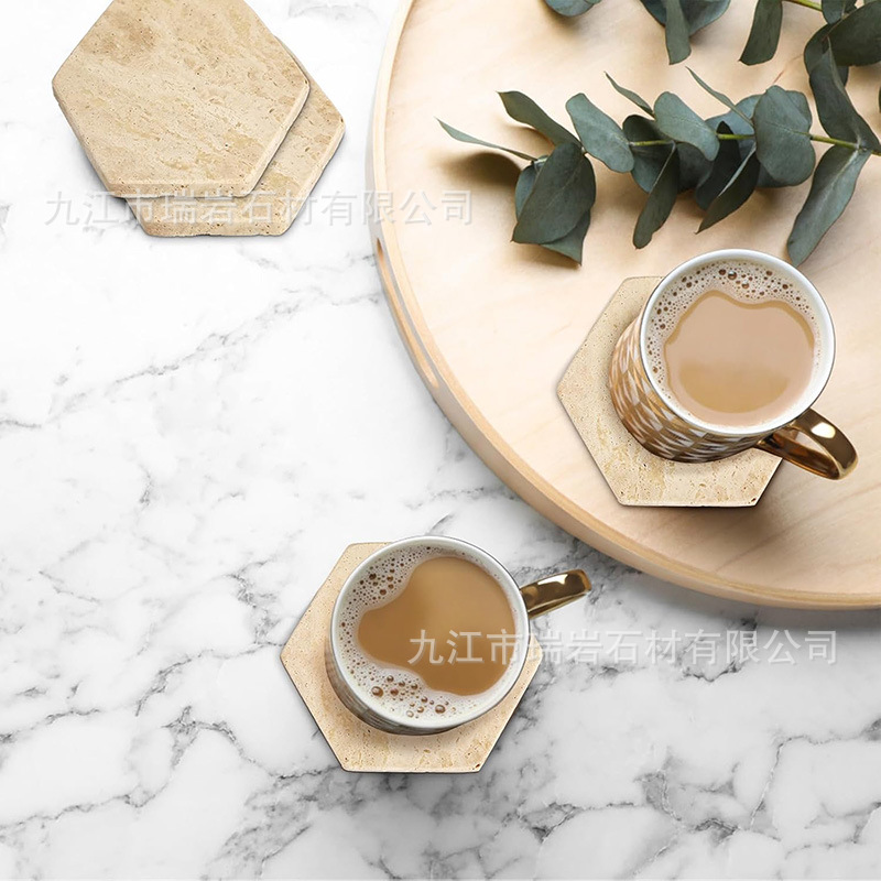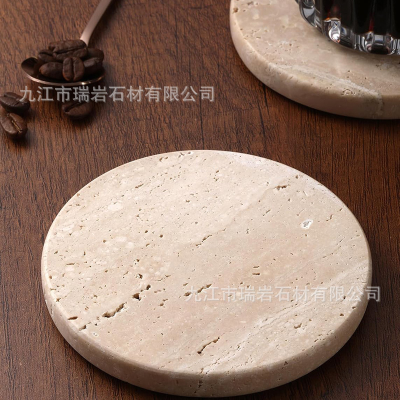 Posavasos de mármol de travertino natural de Amazon transfronterizo al por mayor, posavasos de café de whisky, accesorios de tiro absorbentes