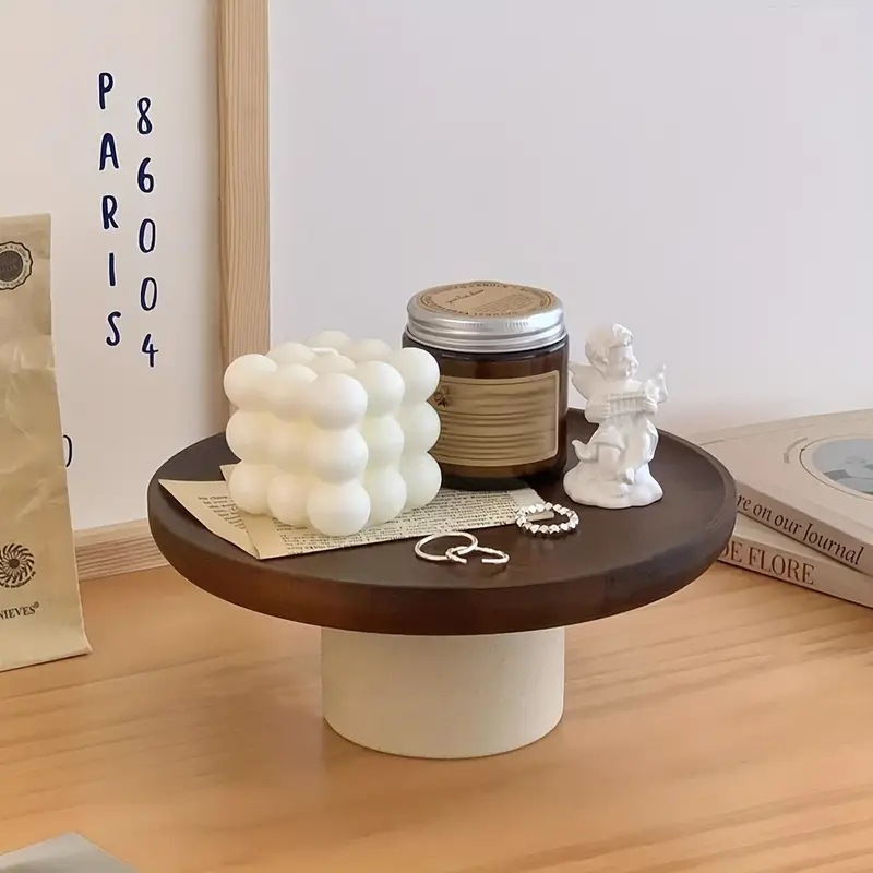 Paleta de fruta de pie alto de cerámica de madera de amor retro, mesa de centro de sala de estar para el hogar, bandeja de madera, bandeja de almacenamiento de bocadillos de pastel de corazón de pastelería