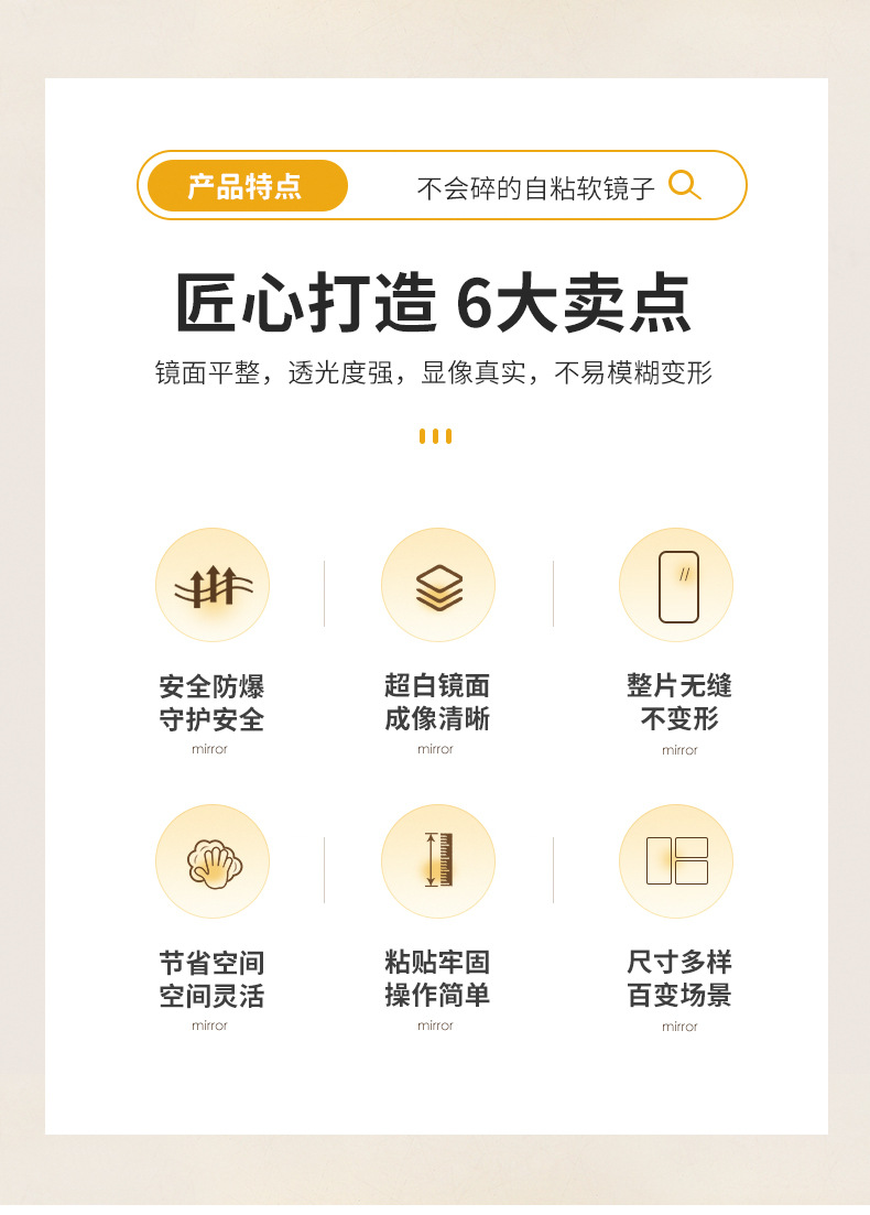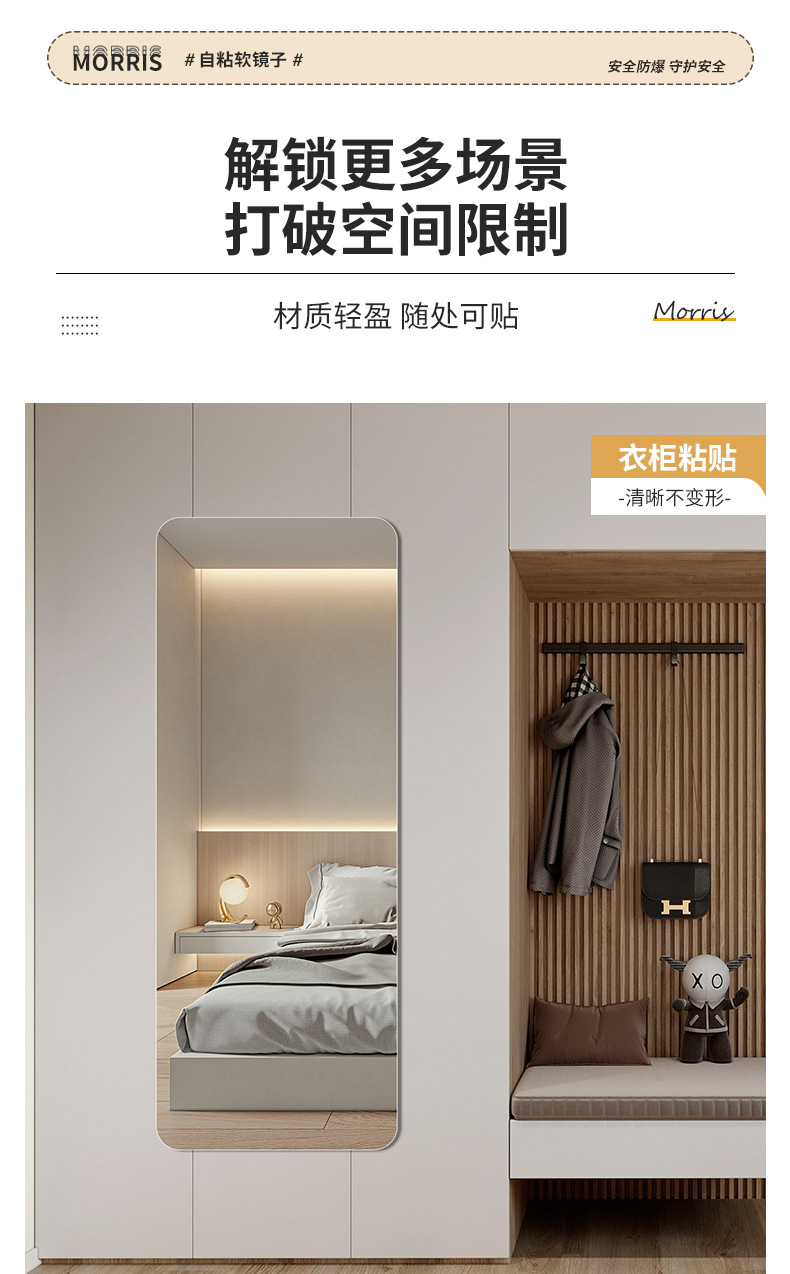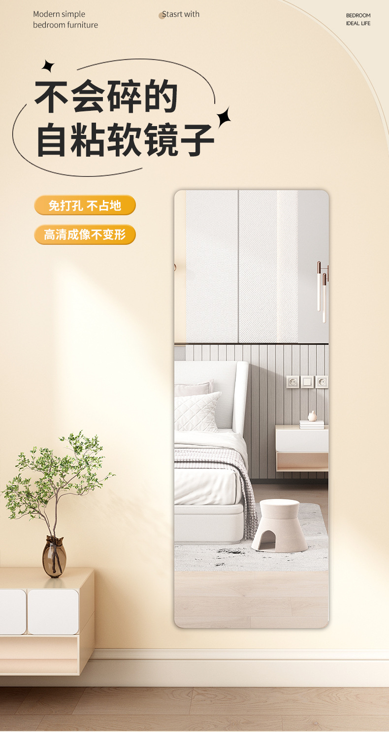 Espejo suave personalizado pegado a la pared espejo de cuerpo completo acrílico autoadhesivo baño baño HD maquillaje lente de tamaño pequeño