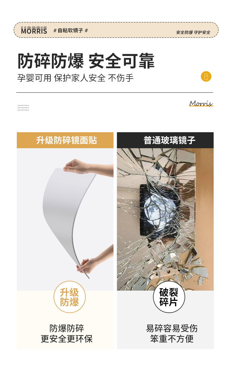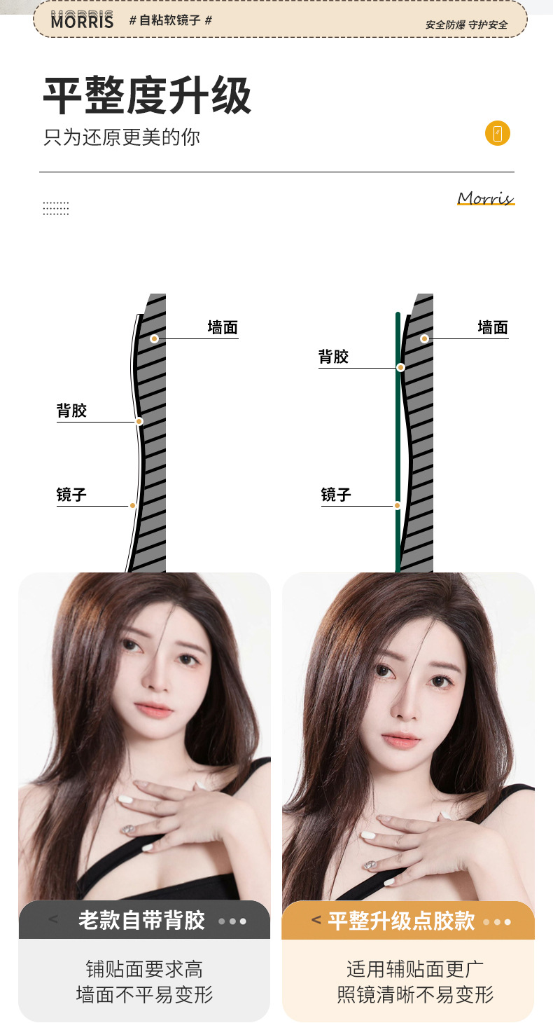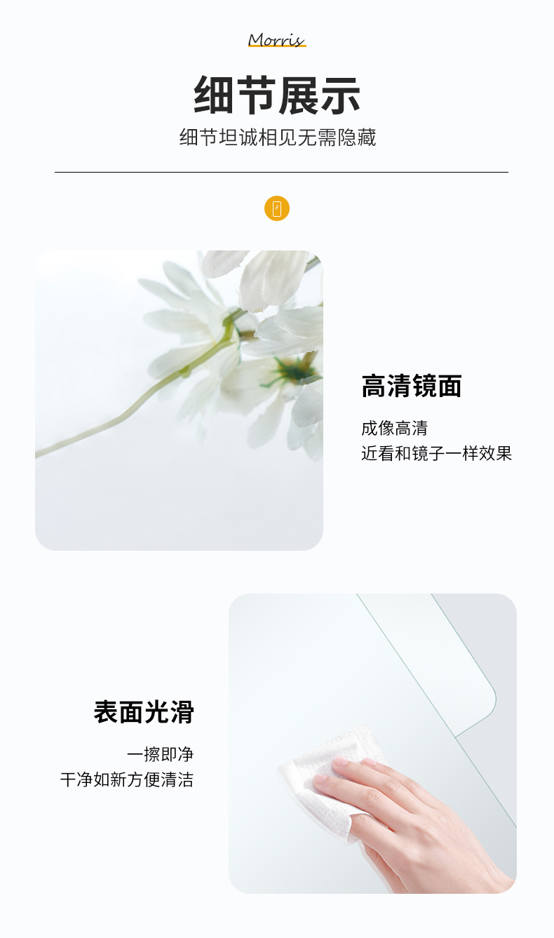Espejo suave personalizado pegado a la pared espejo de cuerpo completo acrílico autoadhesivo baño baño HD maquillaje lente de tamaño pequeño