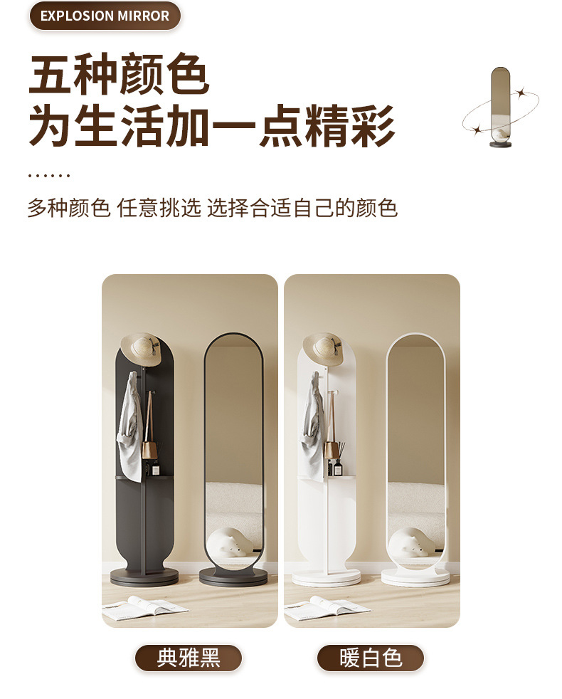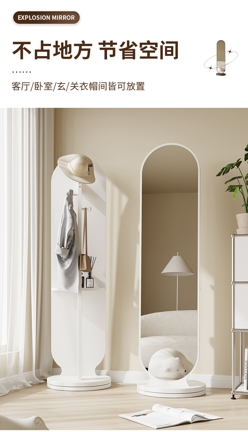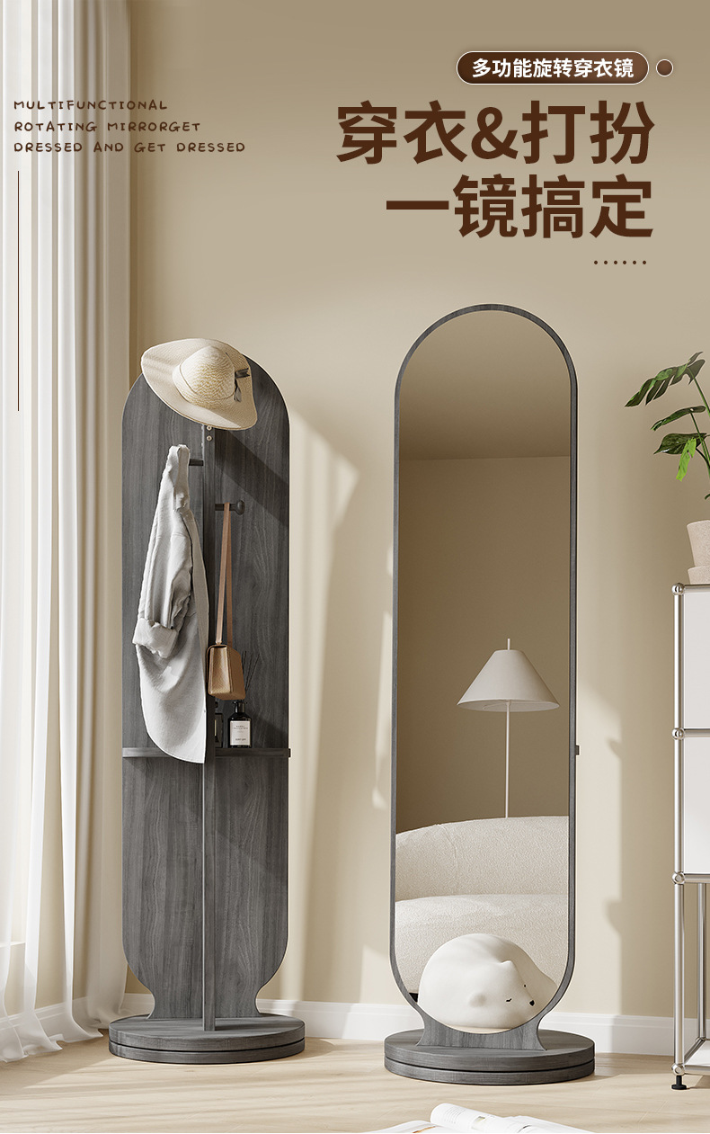 Espejo de cuerpo entero percha de ropa giratoria espejo integral espejo de vestir piso de dormitorio percha de ropa sombrero vertical gran espejo de prueba de ropa doméstica
