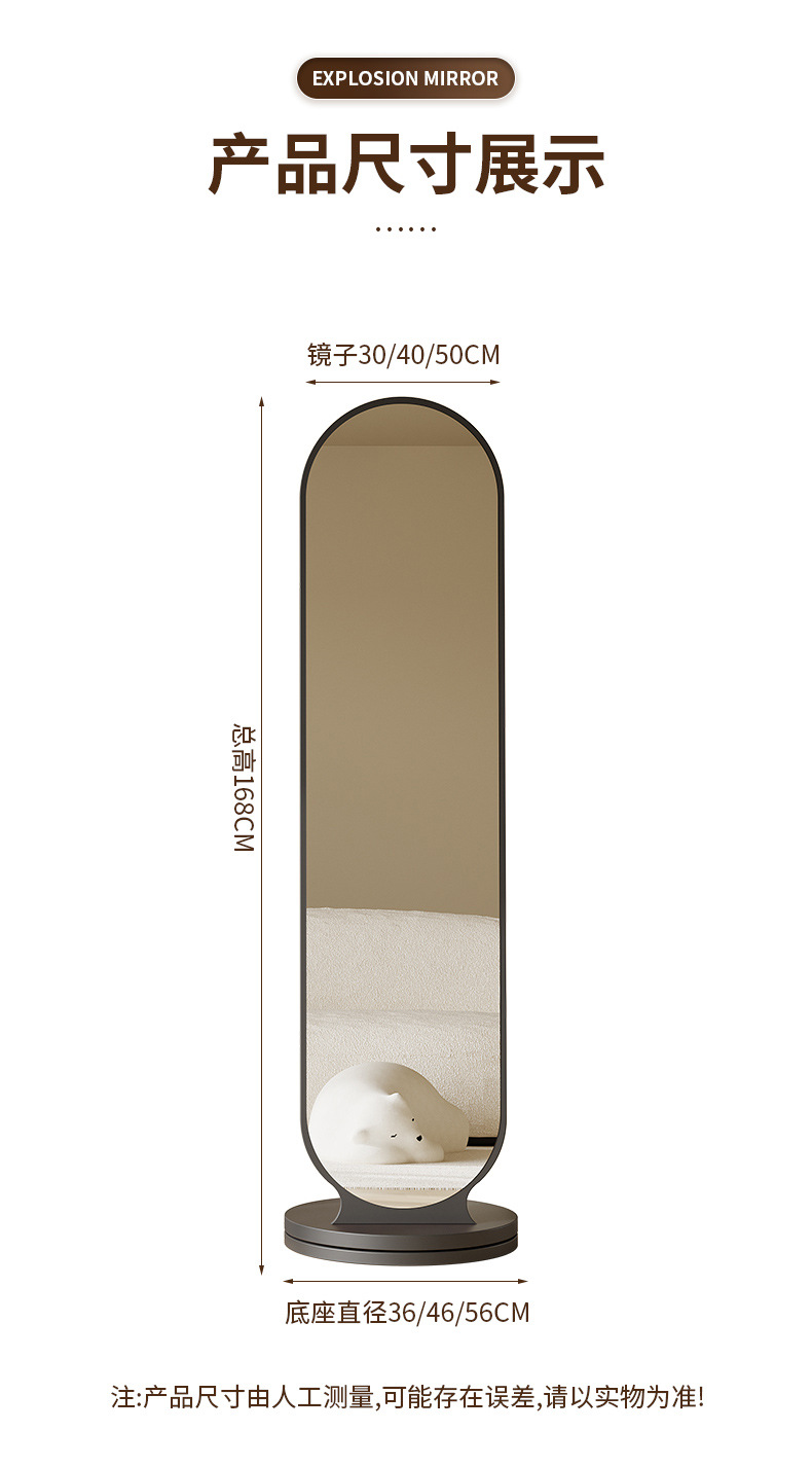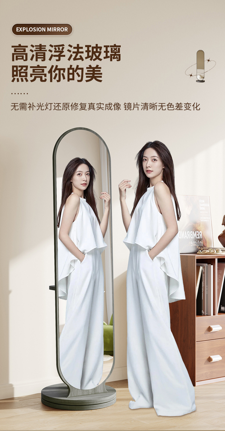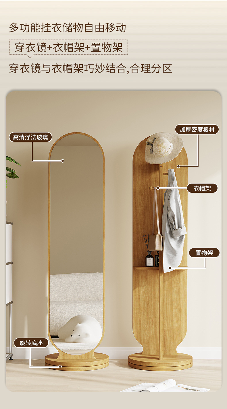 Espejo de cuerpo entero percha de ropa giratoria espejo integral espejo de vestir piso de dormitorio percha de ropa sombrero vertical gran espejo de prueba de ropa doméstica