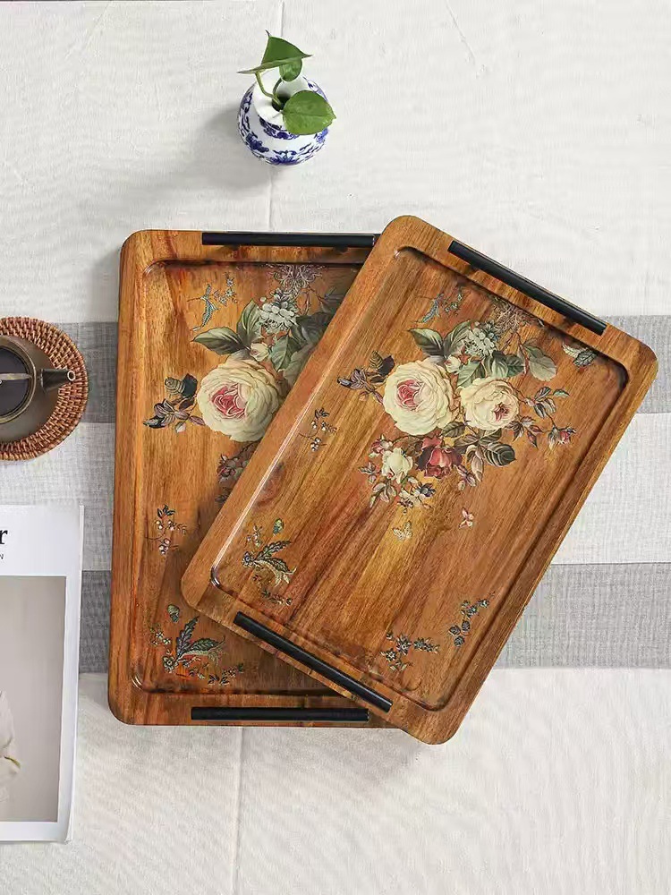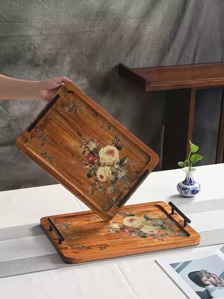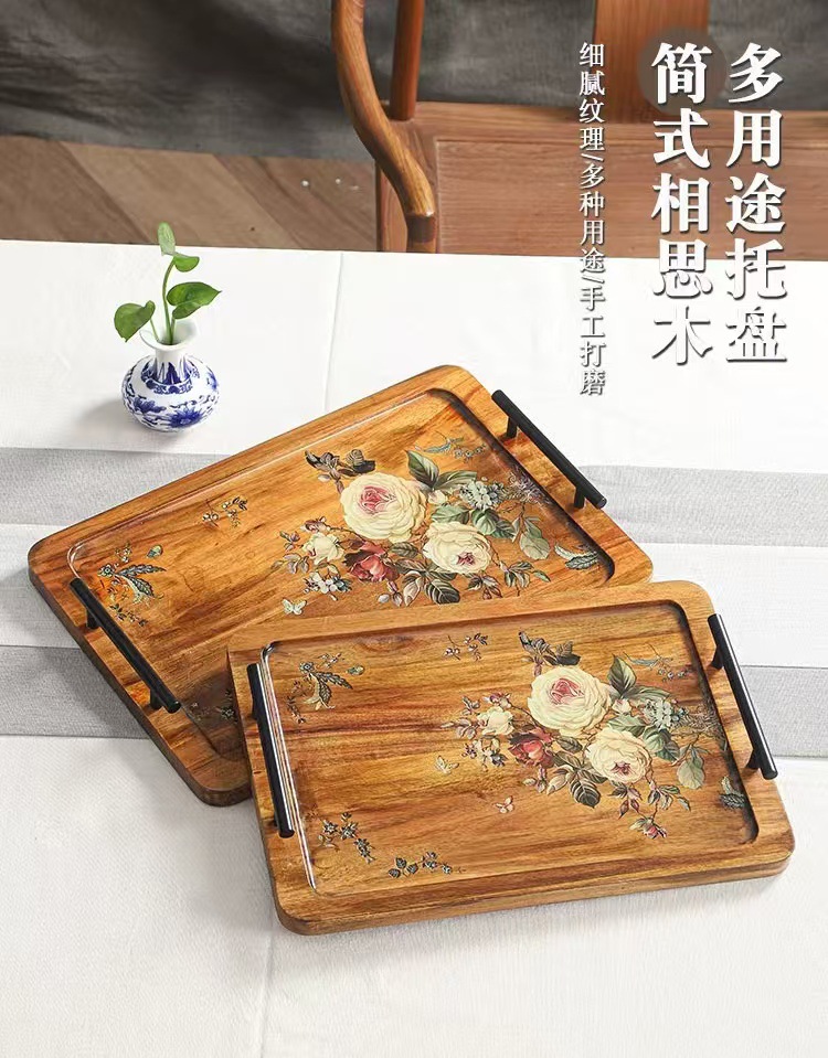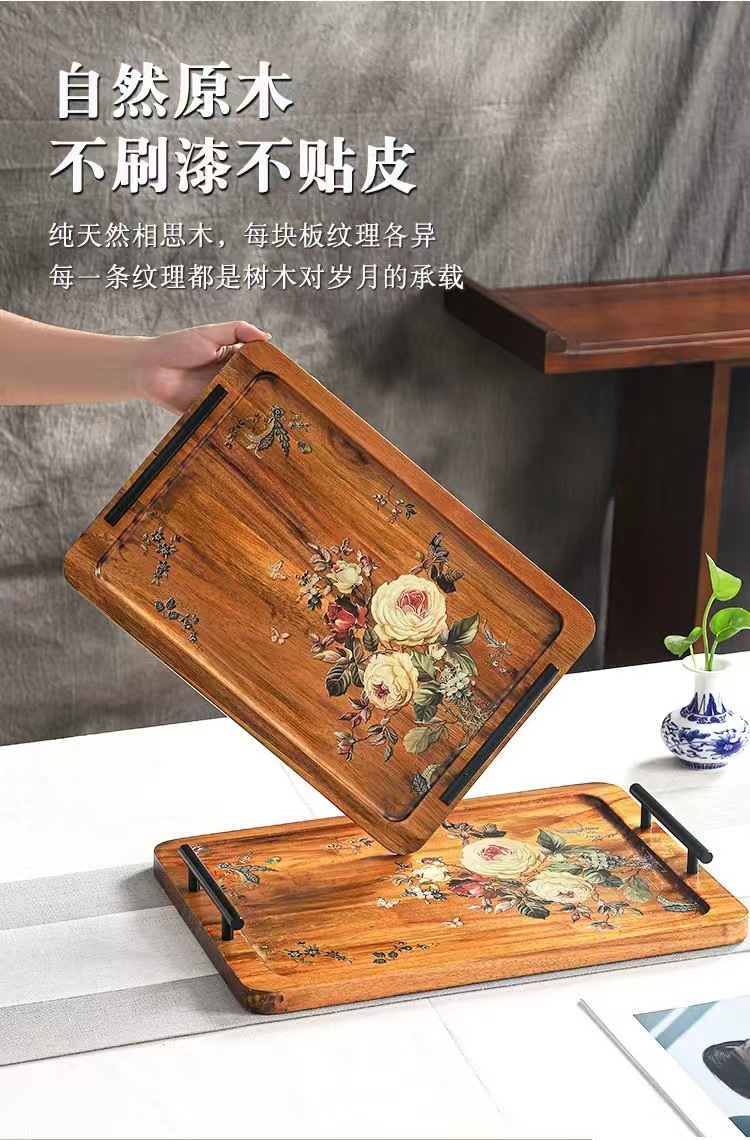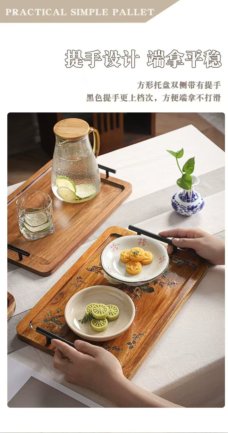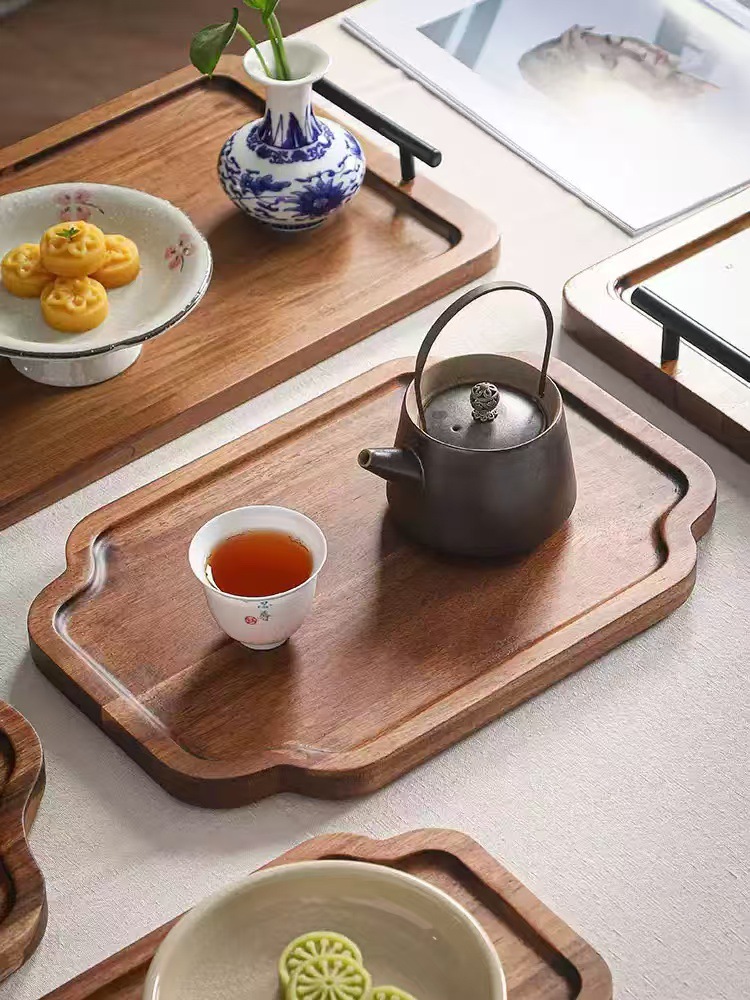 Acacia madera bandeja de té casera bandeja de infusión seca pequeña mesa de té estilo chino retrógrado olla de taza de té bandeja de almacenamiento de refrigerio bandeja de almacenamiento