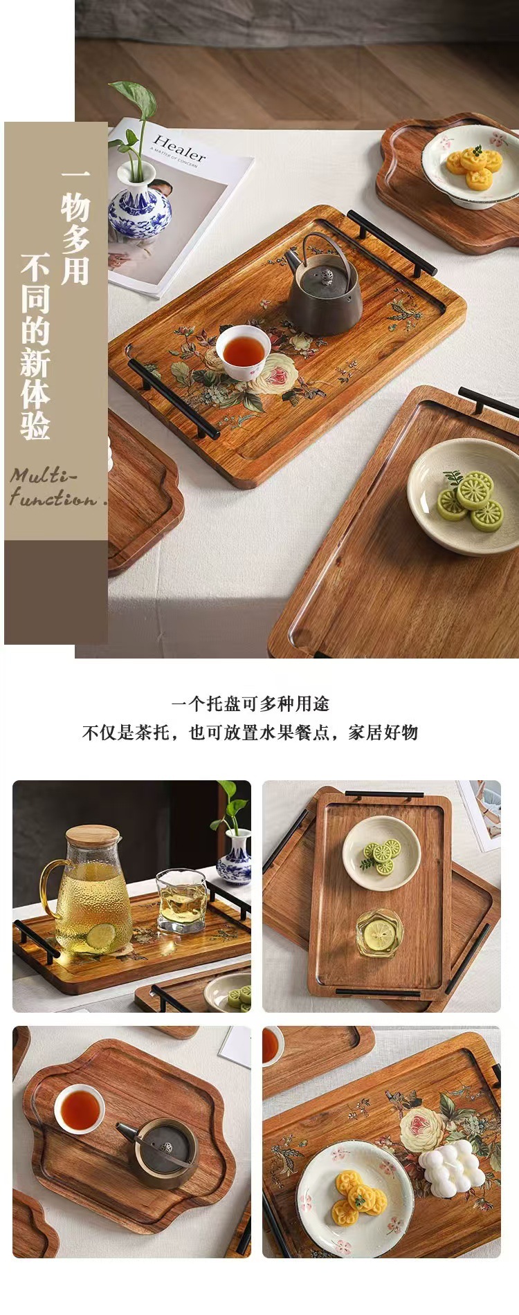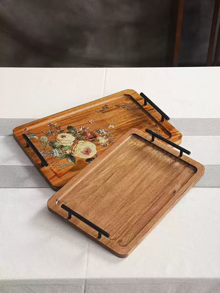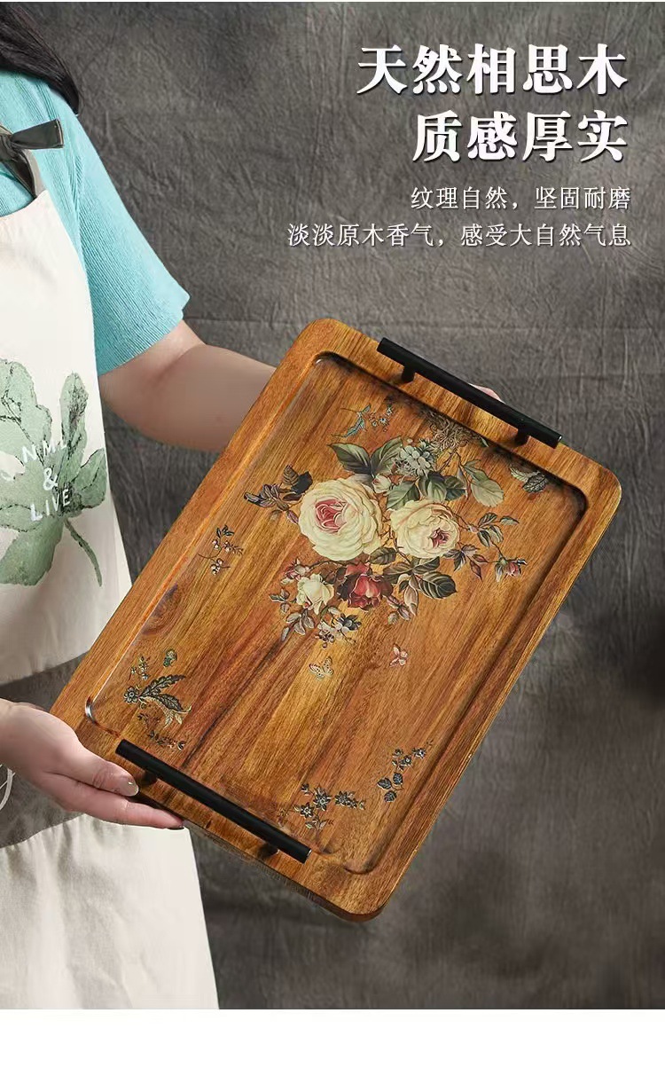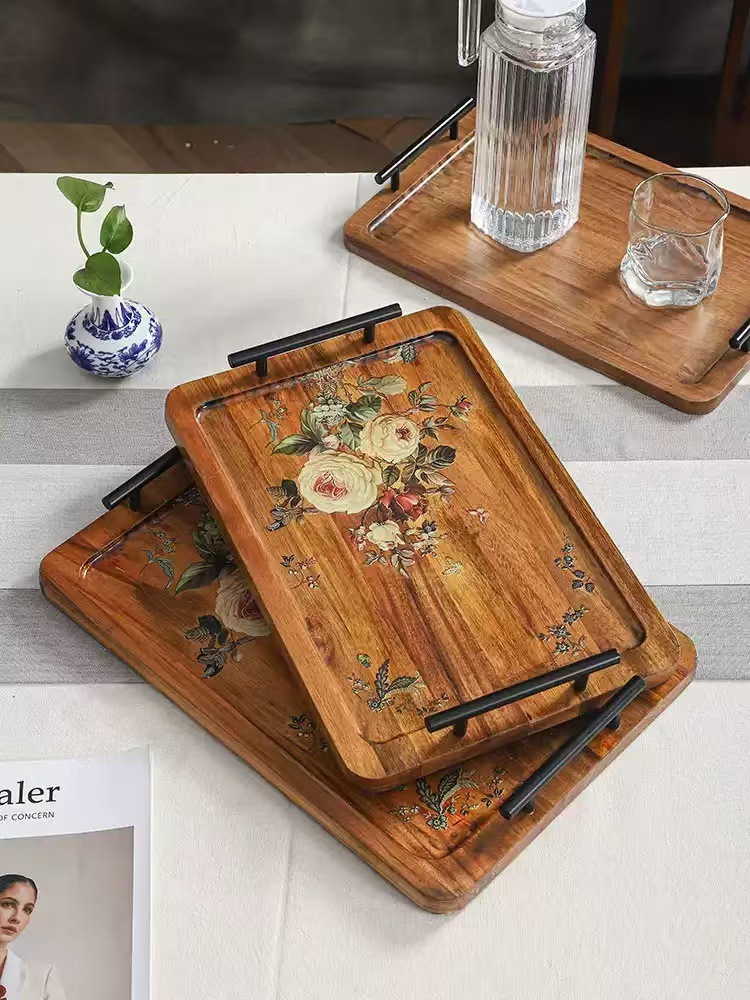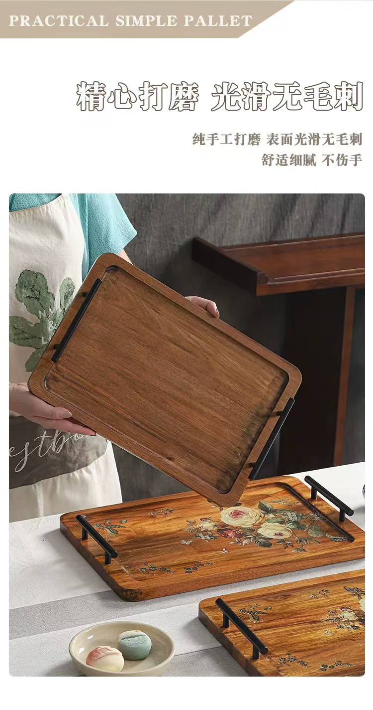 Acacia madera bandeja de té casera bandeja de infusión seca pequeña mesa de té estilo chino retrógrado olla de taza de té bandeja de almacenamiento de refrigerio bandeja de almacenamiento