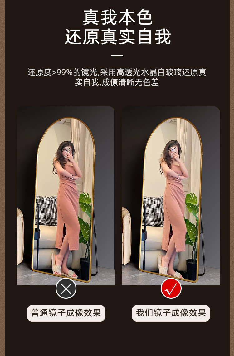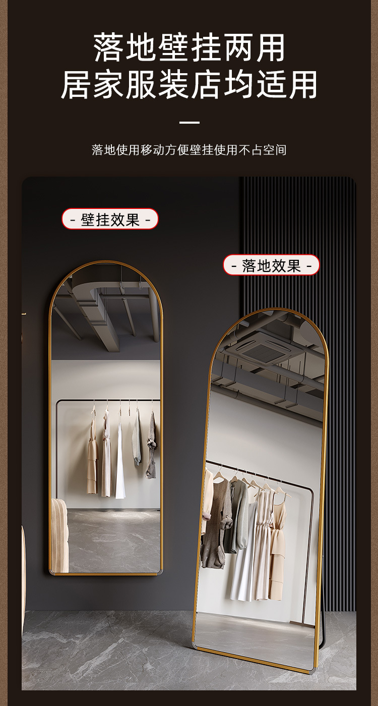 Espejo de vestir tienda de ropa doméstica de alta calidad cuerpo completo espejo de piso dormitorio pared dormitorio espejo de prueba de vestir