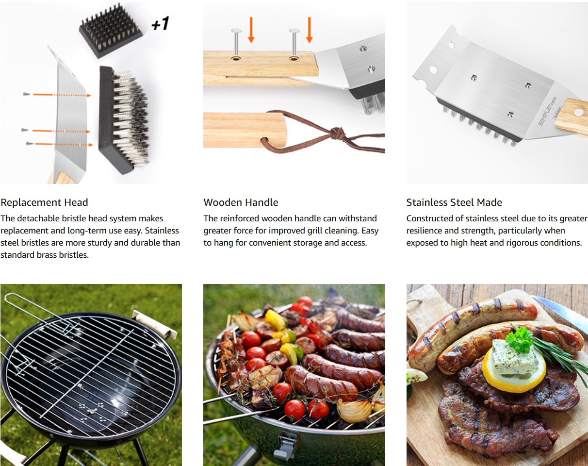 | Especificaciones | Cepillo de limpieza de barbacoa con mango de madera |