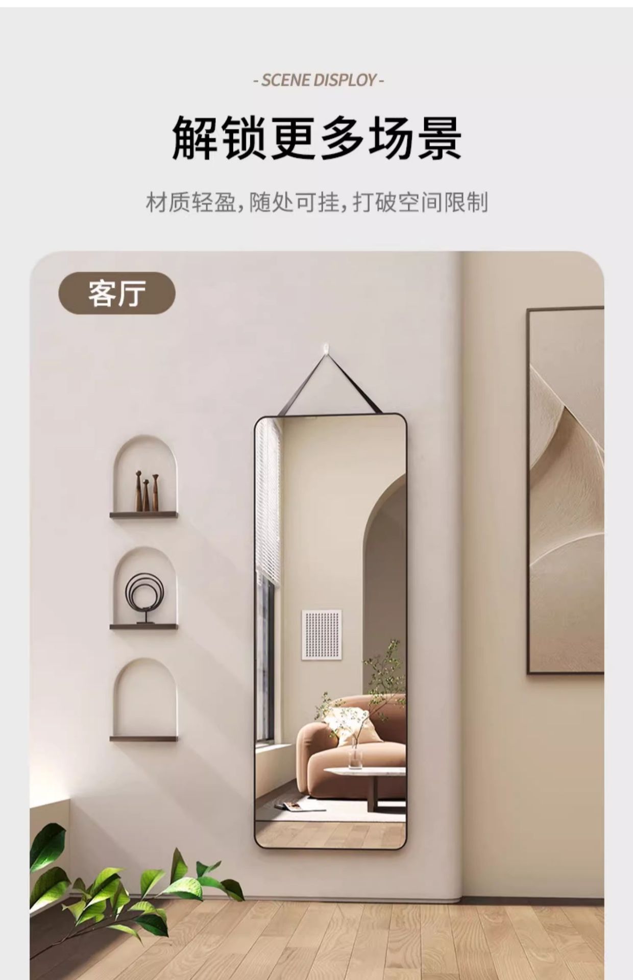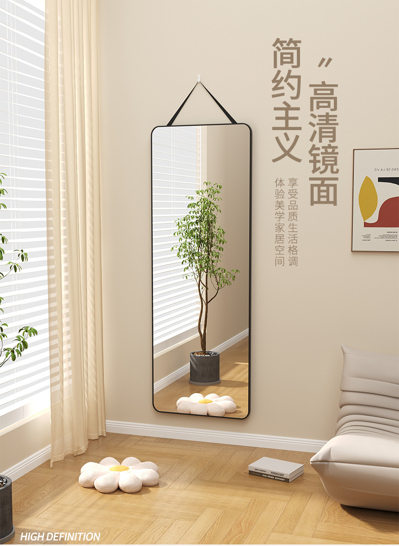 Espejo de cuerpo entero autoadhesivo de pared de pared doméstica sin perforación de espejo dormitorio de niñas espejo de vestimenta de dormitorio espejo de prueba
