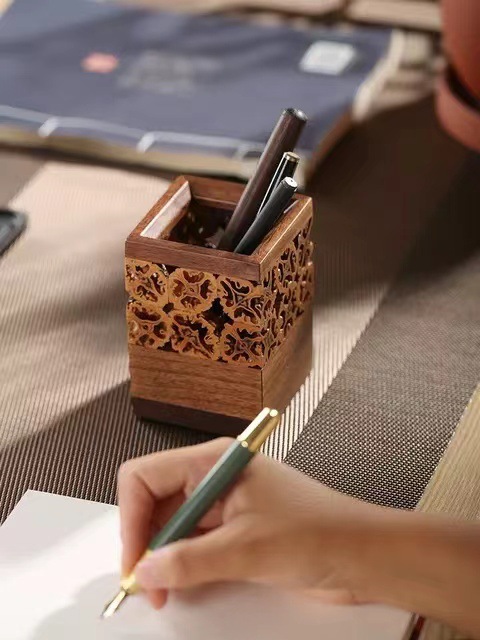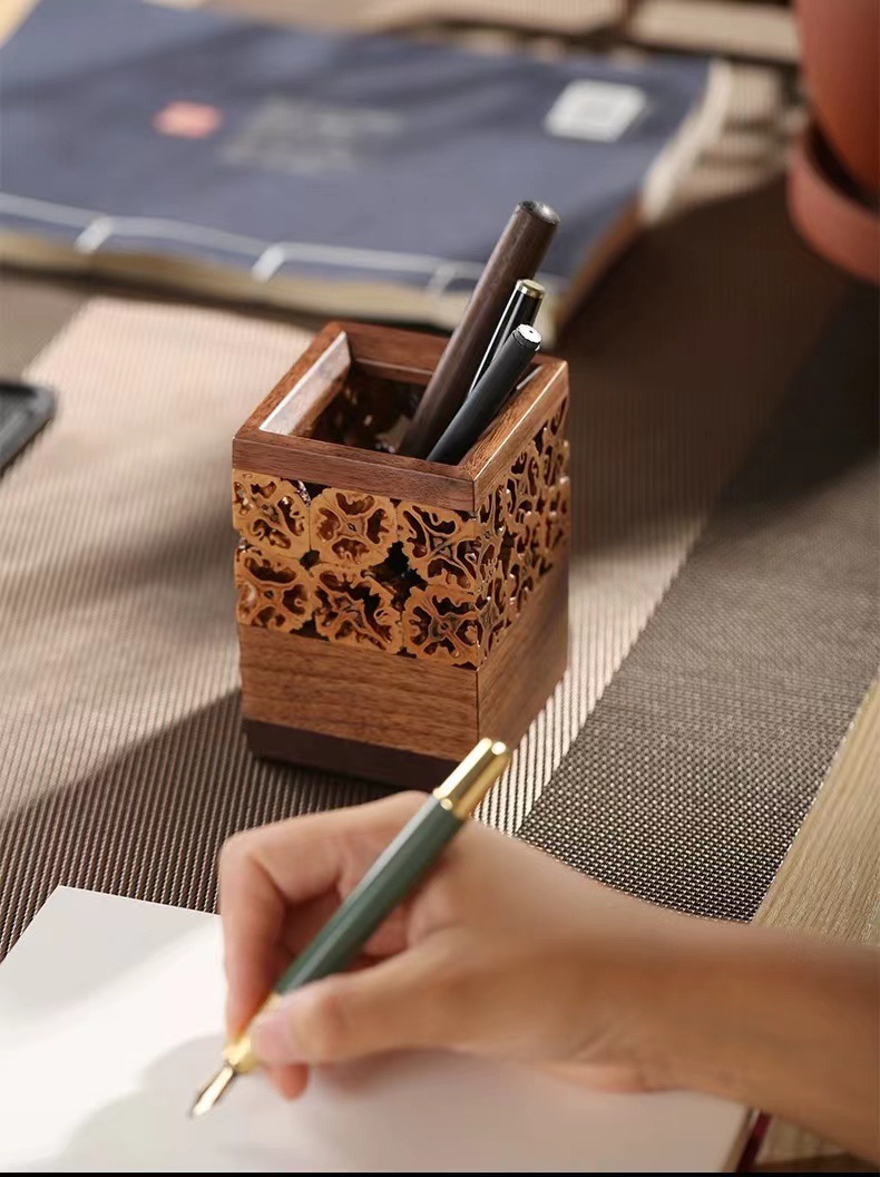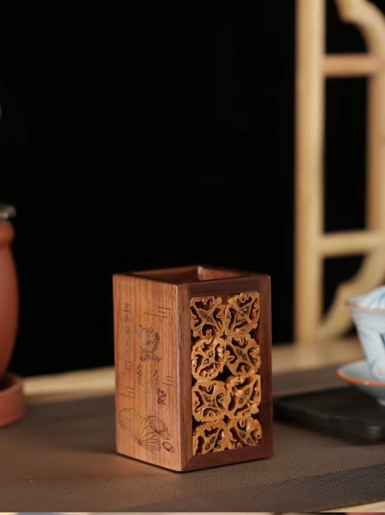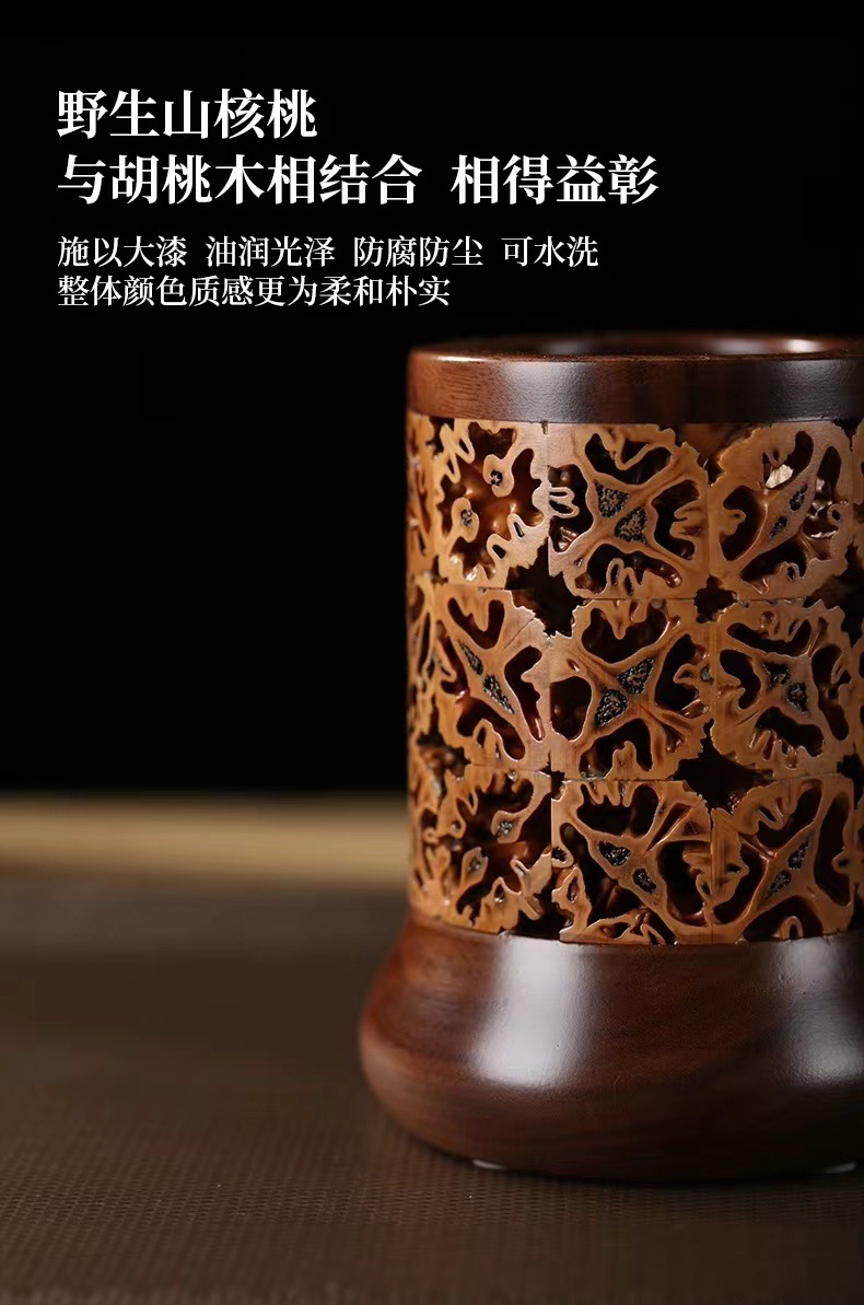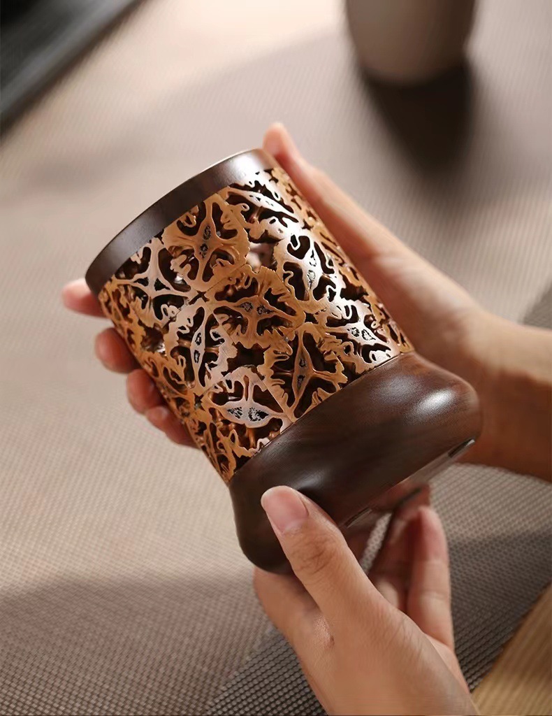 Cubo de pluma de madera sólida barril de almacenamiento de nuez barril de té barril de té barril de ceremonia de té seis caballeros ceremonia de té