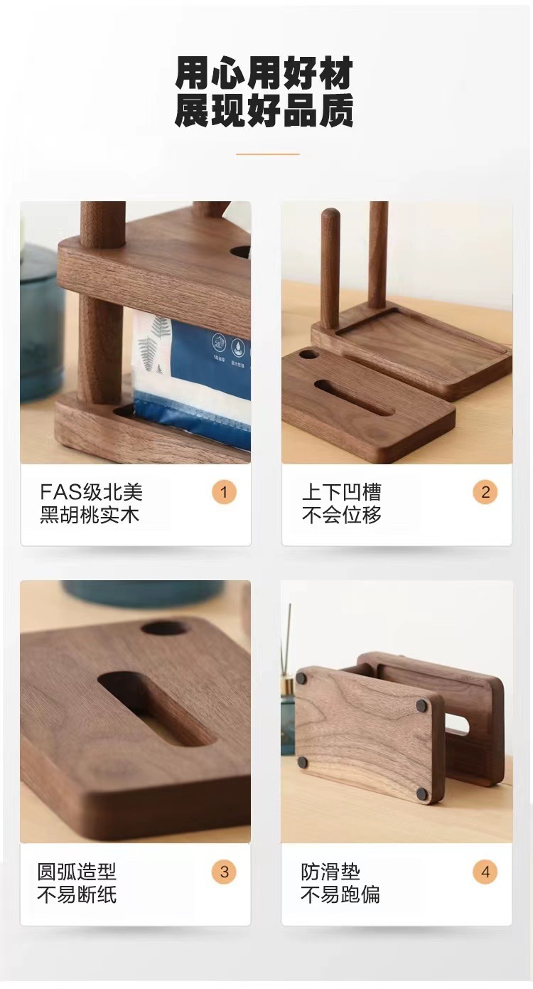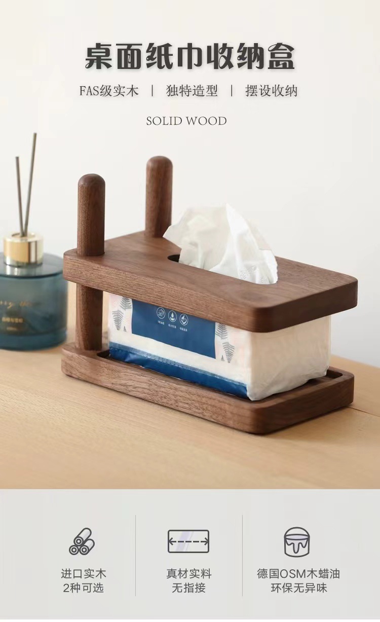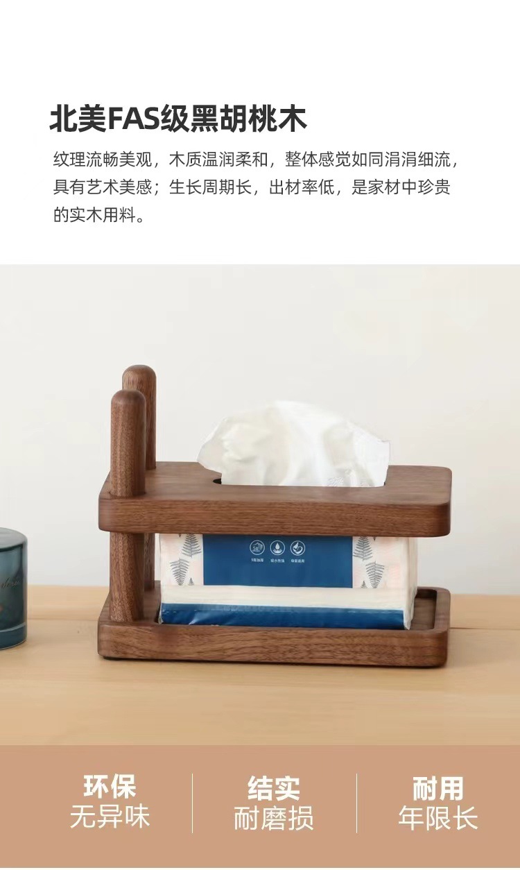 Nogal negro, haya, madera maciza, caja de pañuelos de lujo ligero, sala de estar, dormitorio, hogar, hotel, caja de dibujo, caja de papel simple de madera