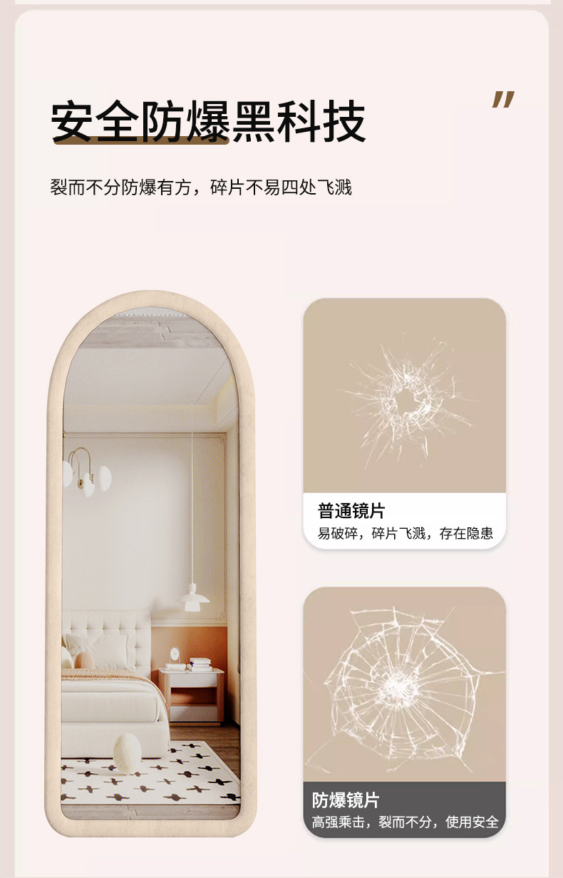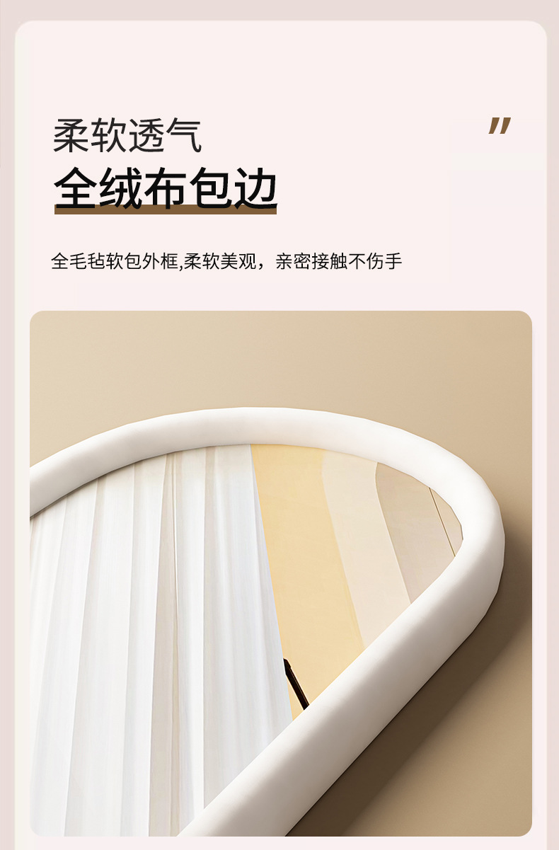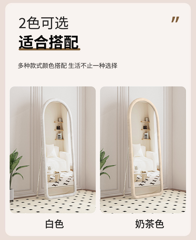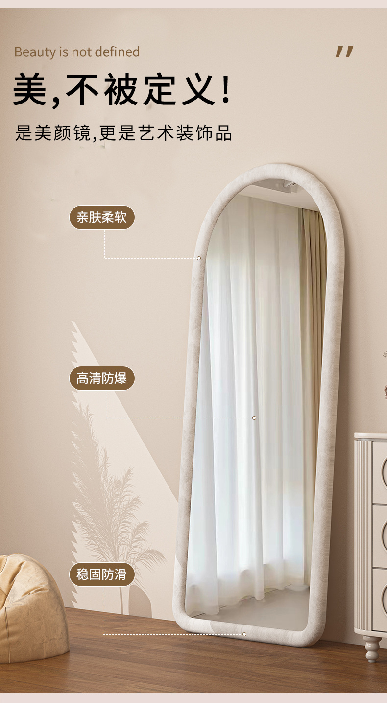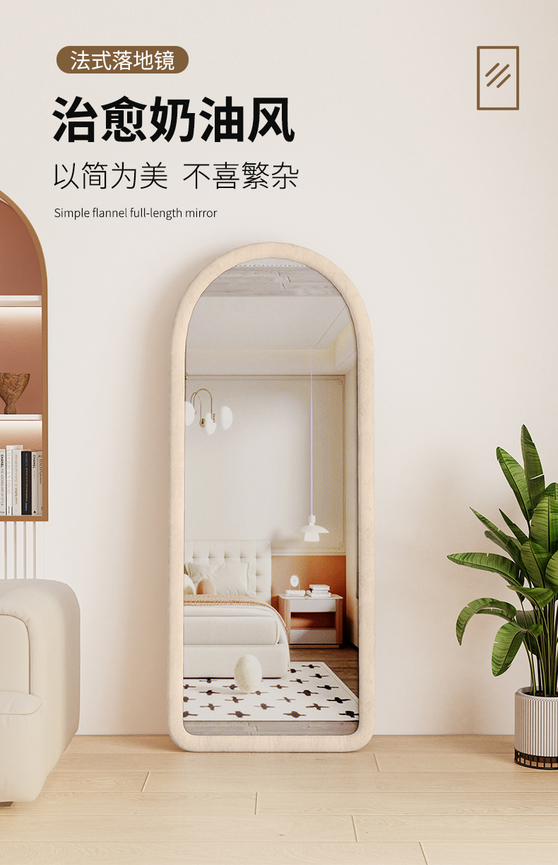 Espejo de cuerpo entero, espejo de suelo, espejo de prueba de viento, espejo de vestimenta, espejo de dormitorio de chicas, espejo de forma especial, lujo francés