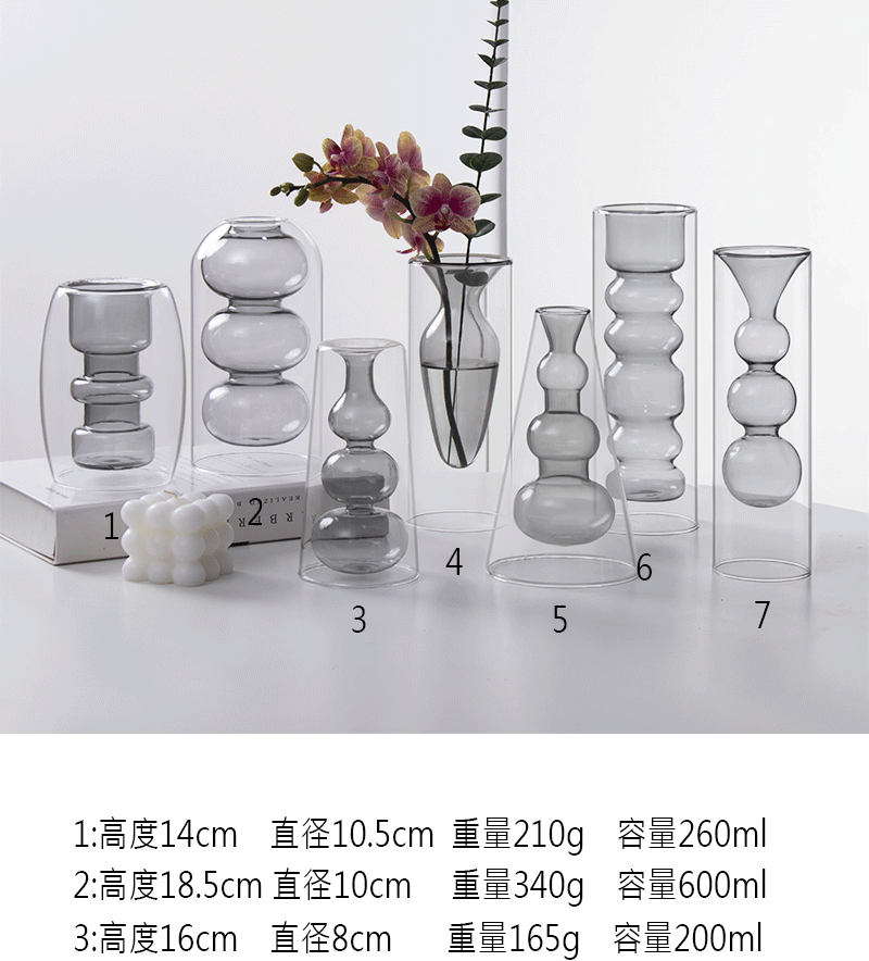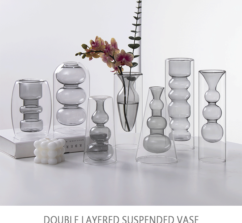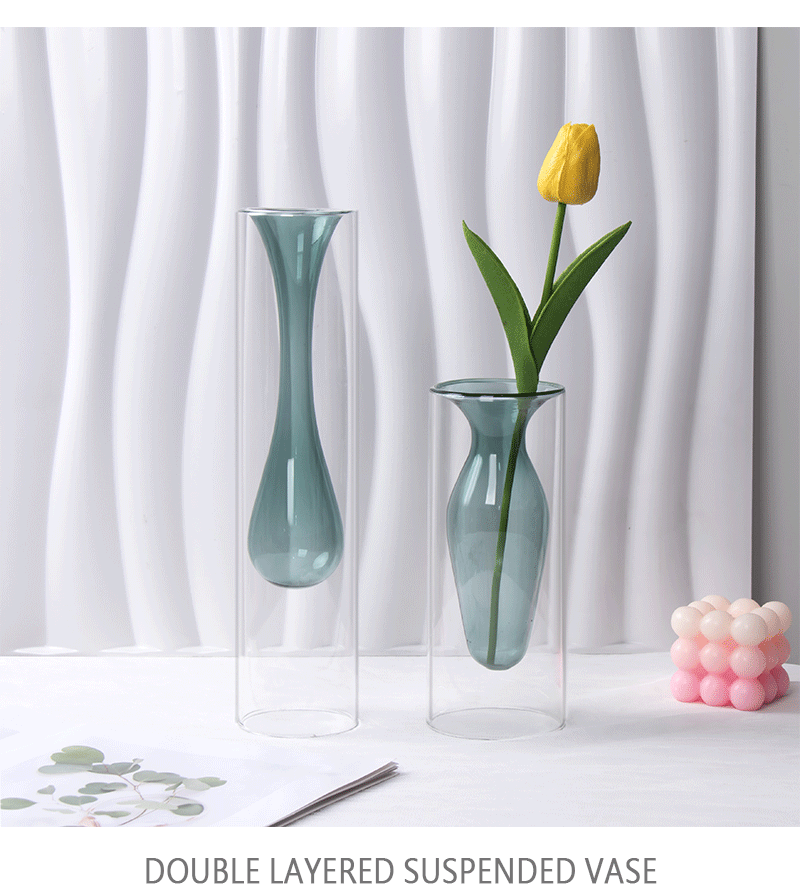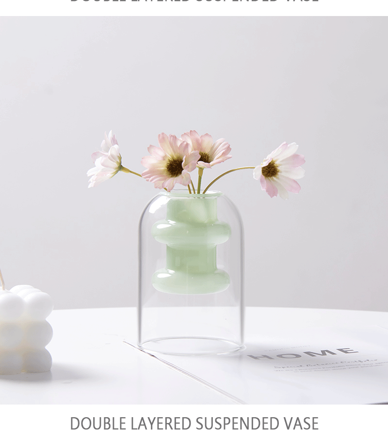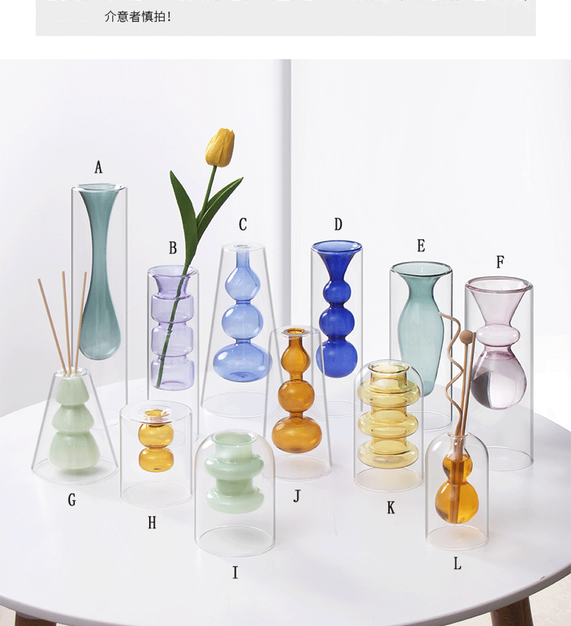 Nordicins moderno minimalista vidrio de colores creativo doble vidrio transparente vasijas de flores artísticas personales