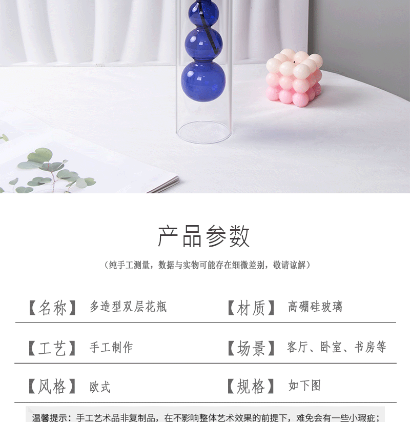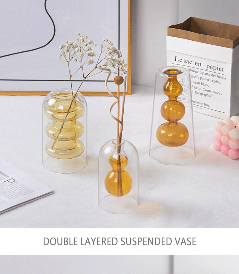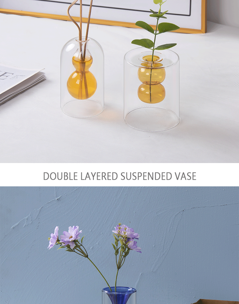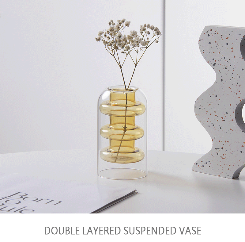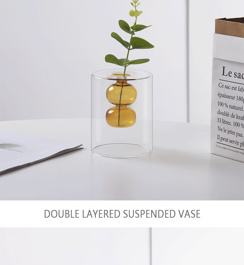 Nordicins moderno minimalista vidrio de colores creativo doble vidrio transparente vasijas de flores artísticas personales