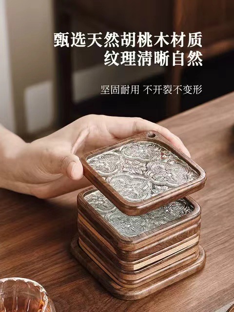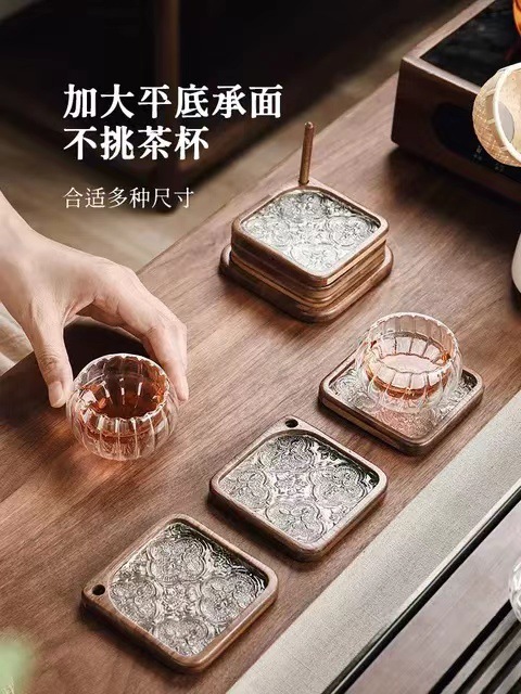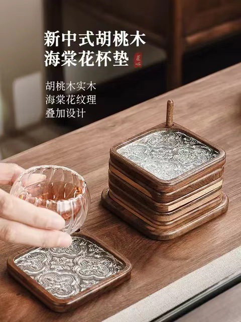 Begonia flor taza almohadilla accesorios de té decoración de mesa de té madera sólida aislamiento térmico almohadilla de té soporte de taza resistente a quemaduras