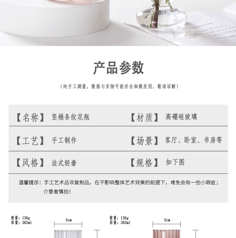 TamañoFlorero transparente de rayas simples,Jarrón marrón rayado simple