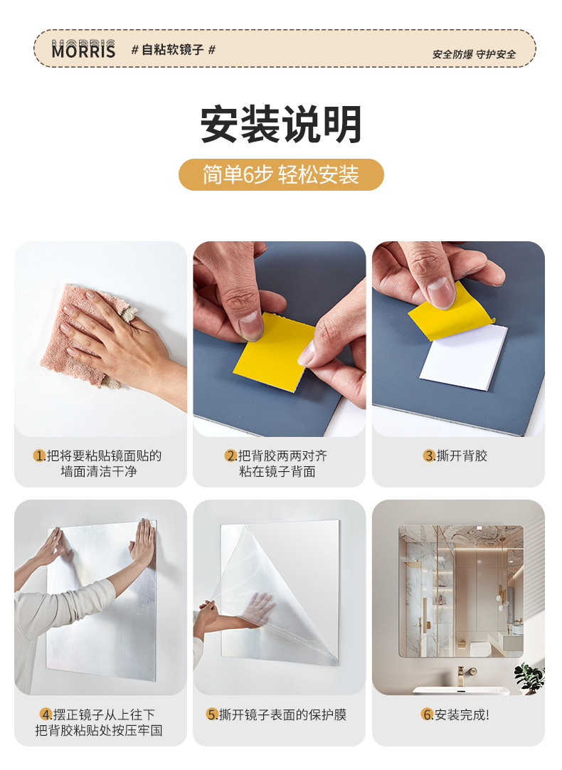 Espejo de acrílico sin deformación pegado a la pared espejo de cuerpo entero de costura de dormitorio espejo de ajuste doméstico pegado espejo de cuerpo entero sin perforación