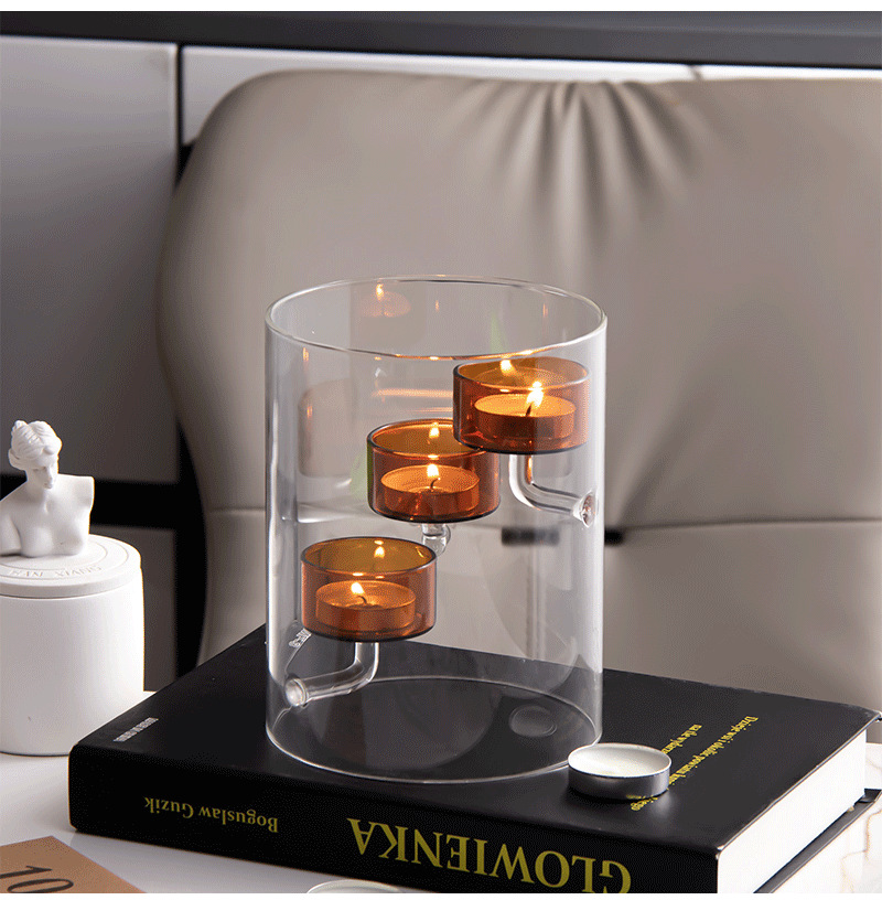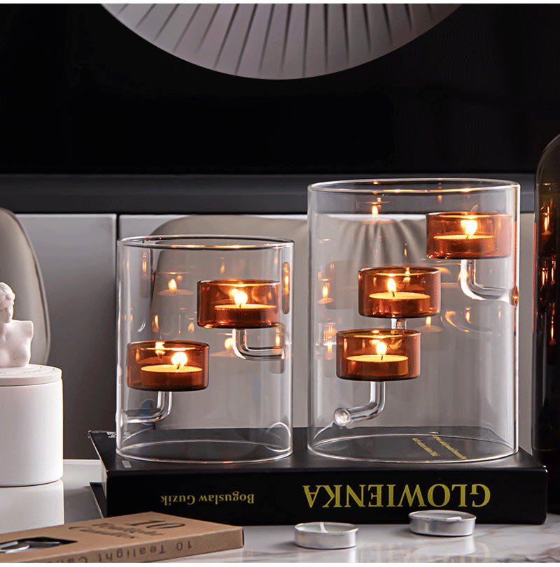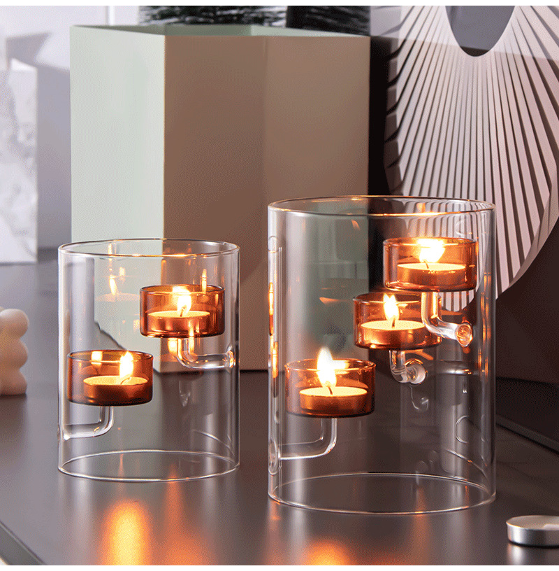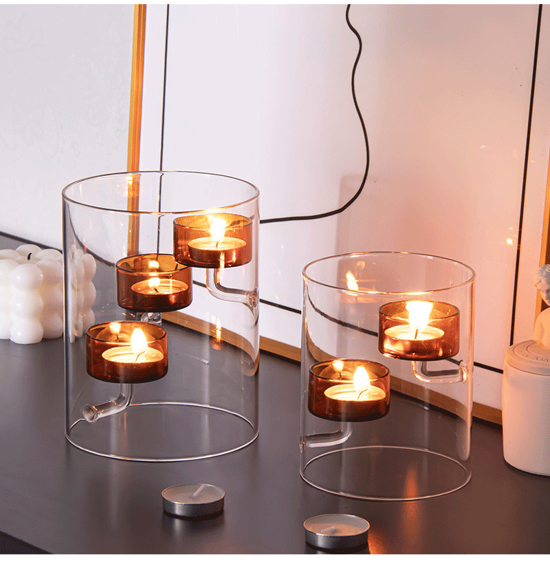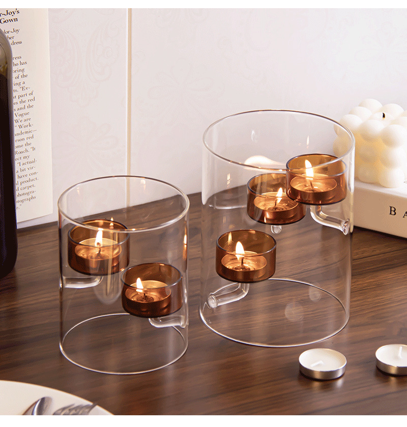 Cilindro de estilo europeo huracán vidrio candelabro marrón candelabro a prueba de viento decoración creativa del hogar luz de las velas regalo de la cena