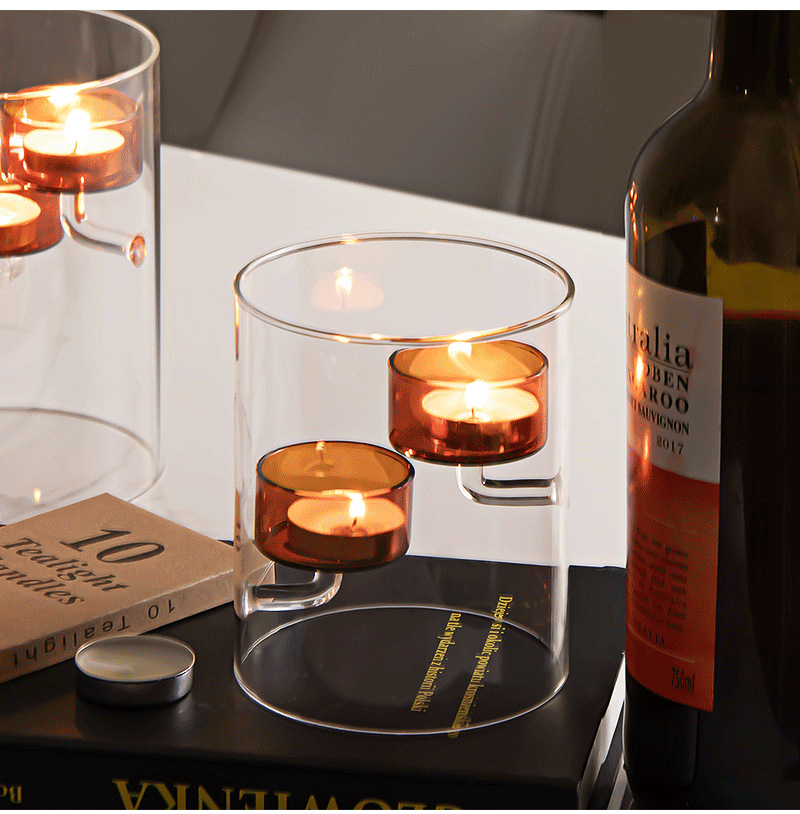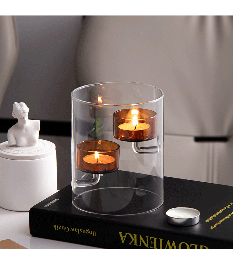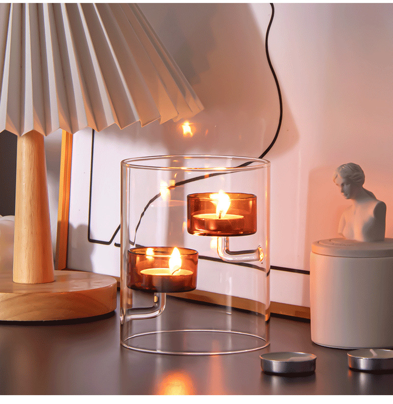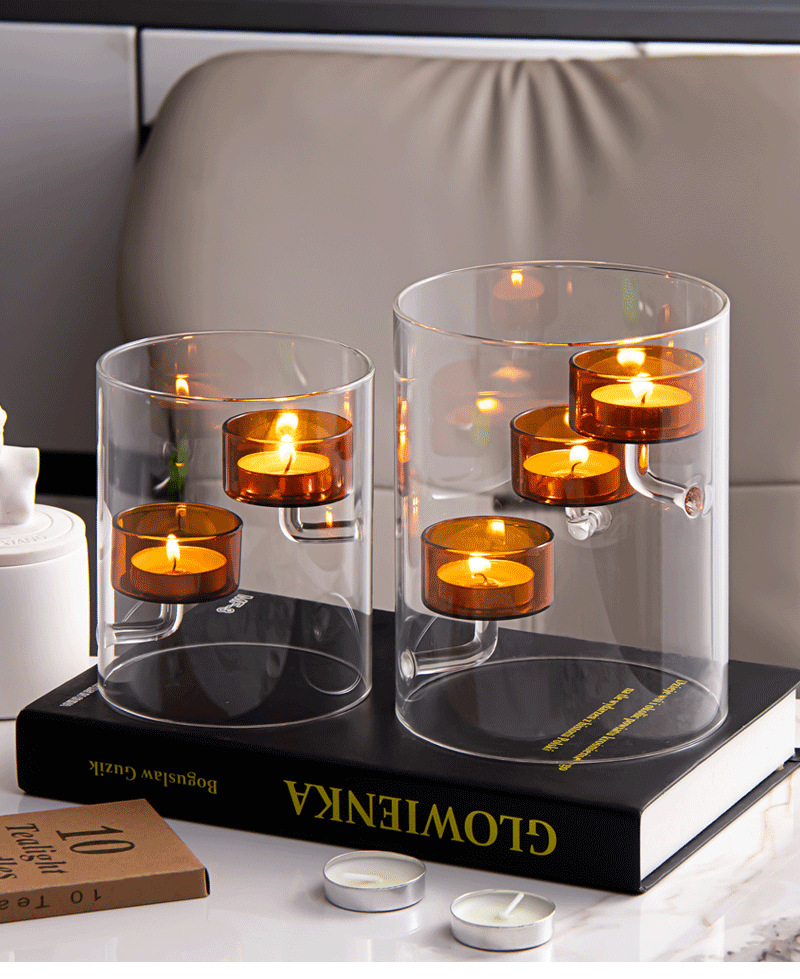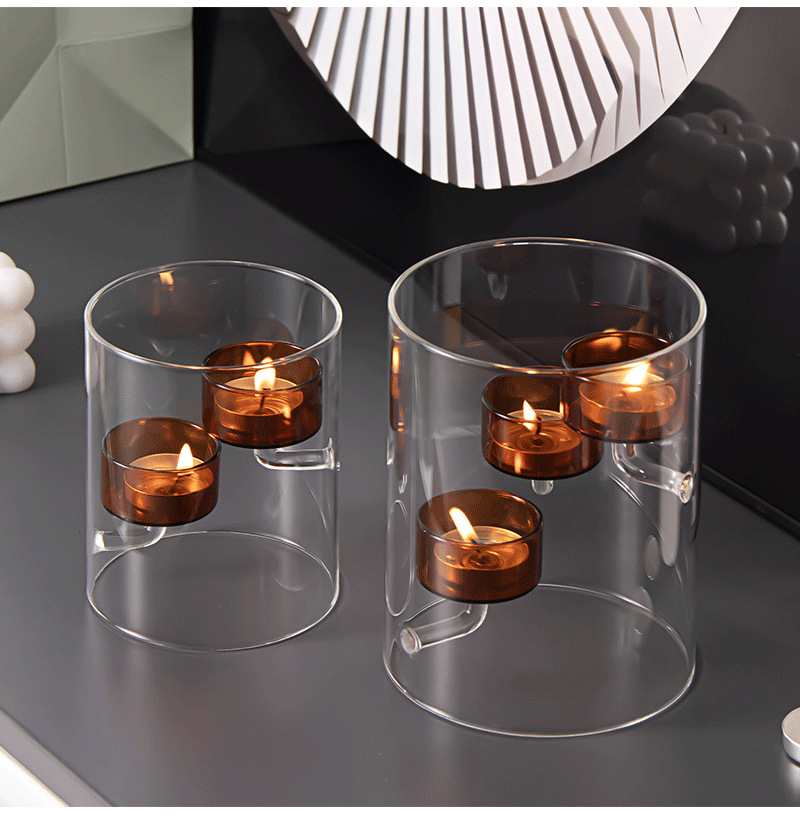 Cilindro de estilo europeo huracán vidrio candelabro marrón candelabro a prueba de viento decoración creativa del hogar luz de las velas regalo de la cena