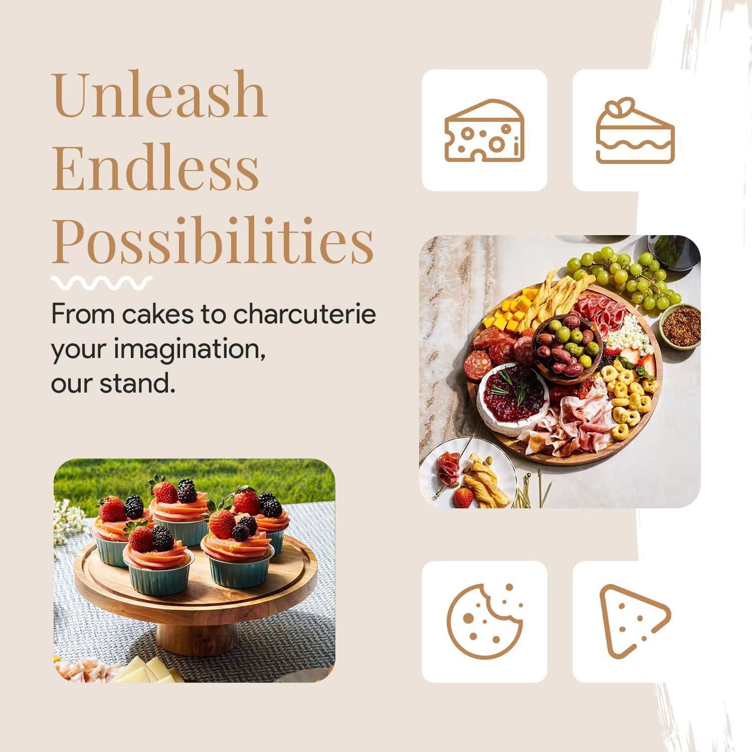 Plato para pasteles de madera Estante para postres de madera Mesa de boda Decoración de pan Estante de exhibición de postres Bandeja de frutas Plato redondo