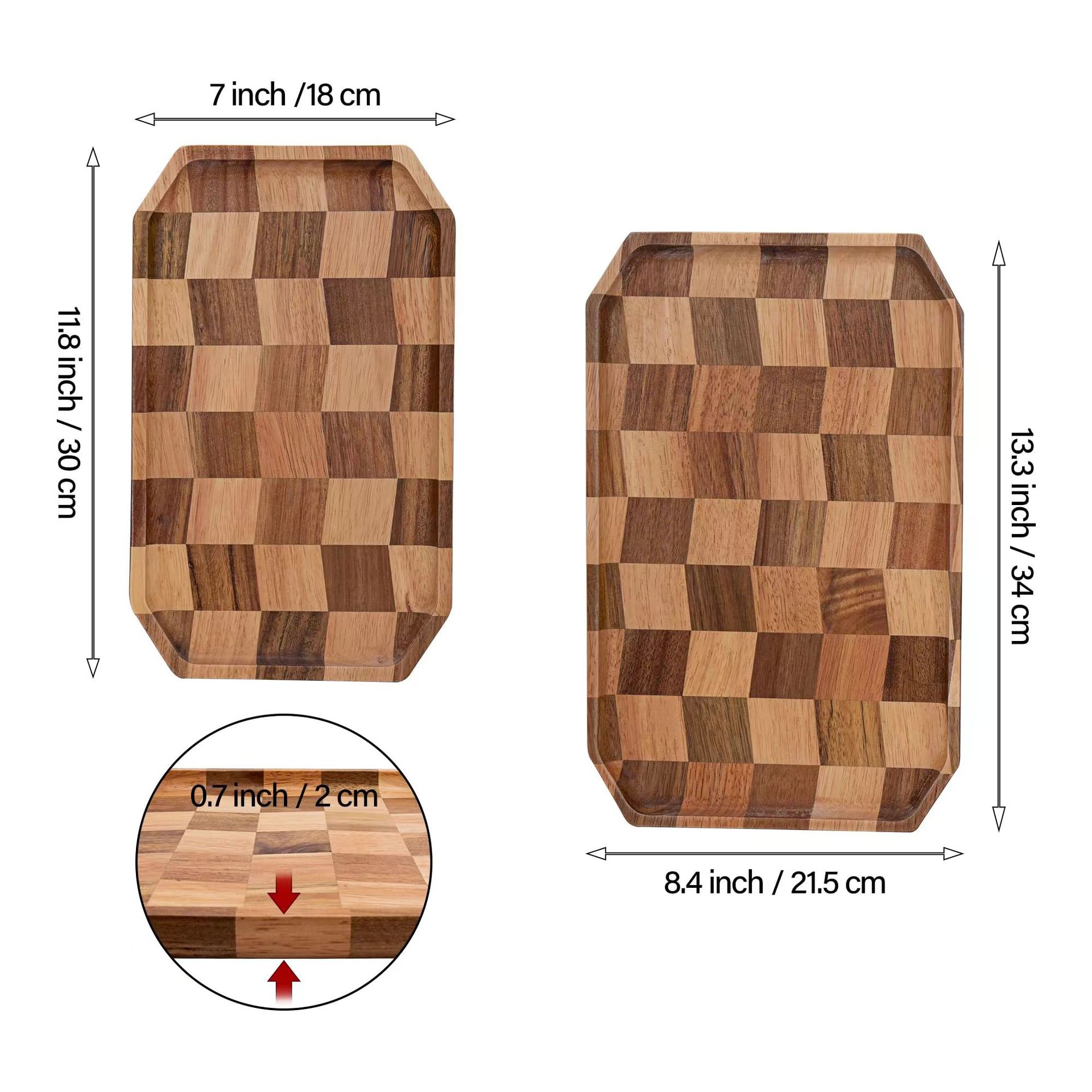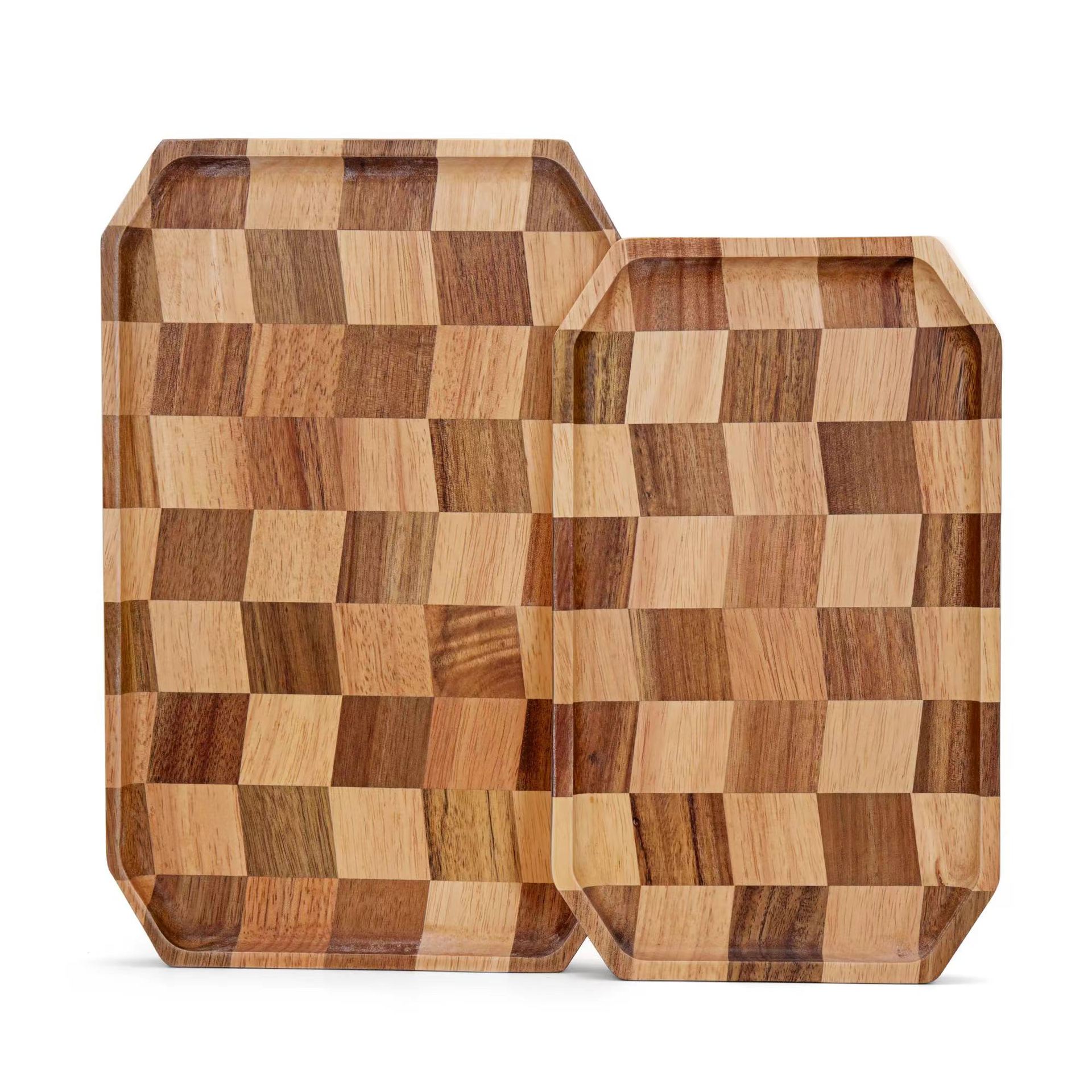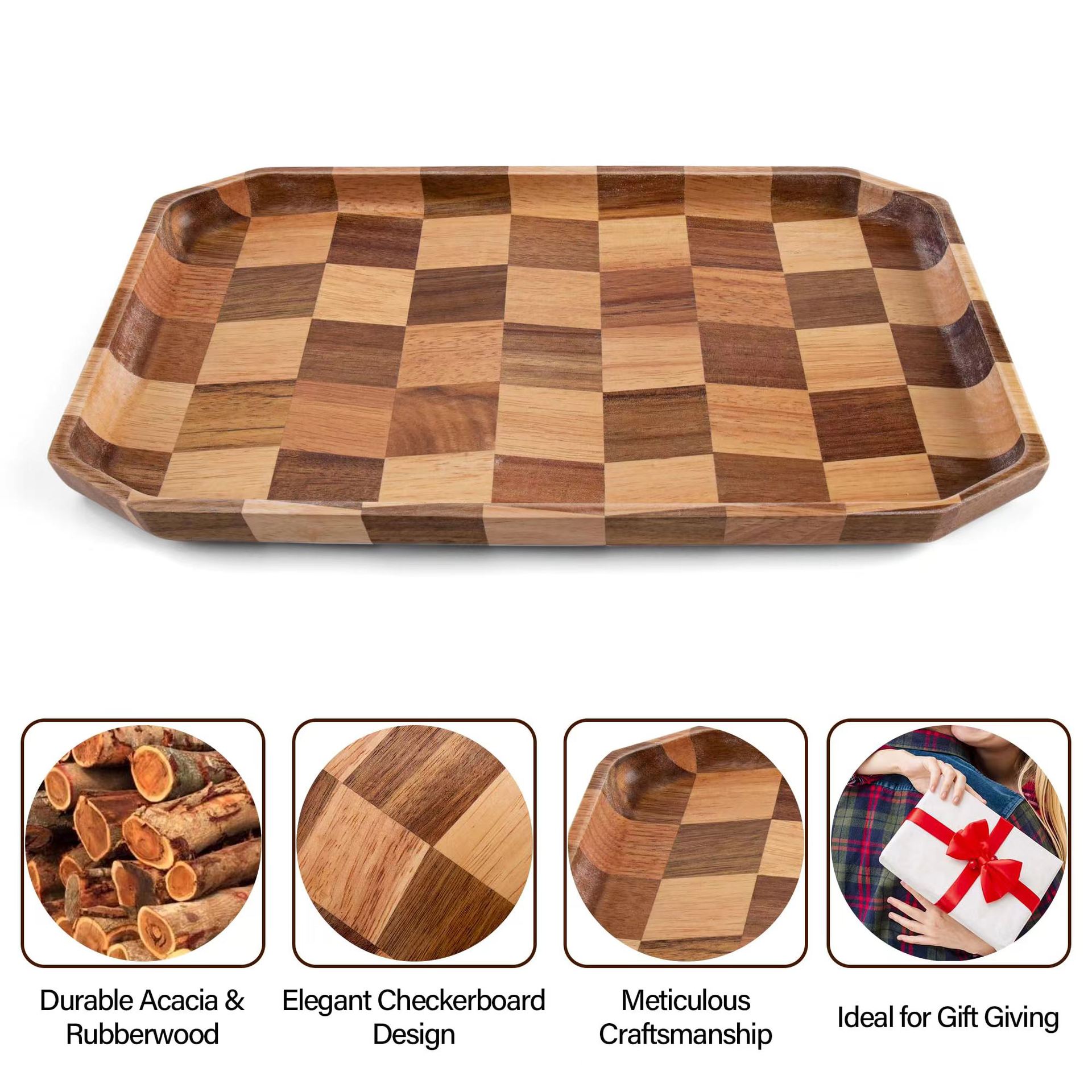 Bandeja de tablero de ajedrez de madera Mesa de la sala de estar Aperitivos Bandeja de almacenamiento de frutas Bandeja de desayuno de hotel Bandeja de té de madera maciza