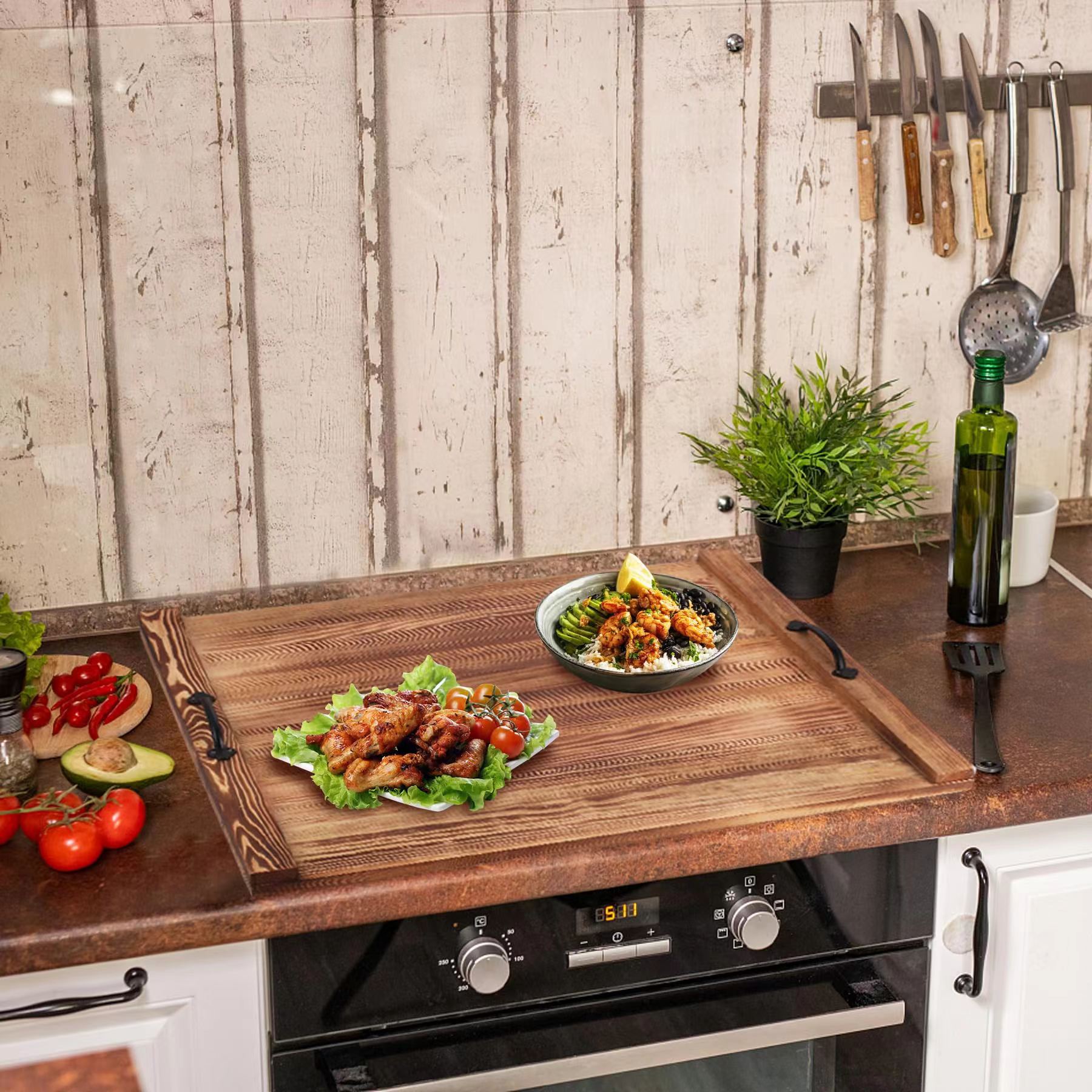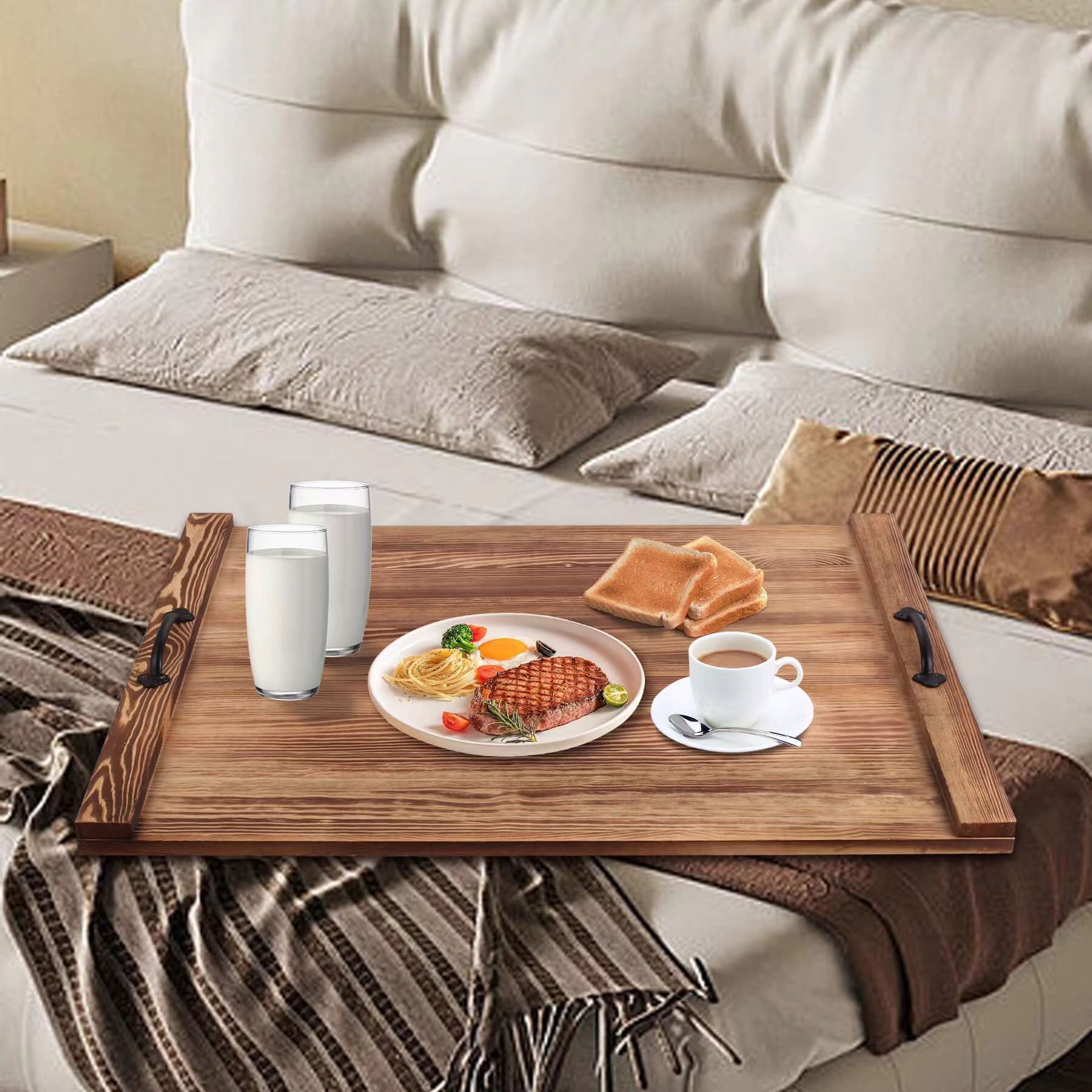 Bandeja de almacenamiento carbonizada de pino retro, mesa de centro de sala de estar, bandeja de té de madera, mesa de comedor, bandeja de frutas, decoración
