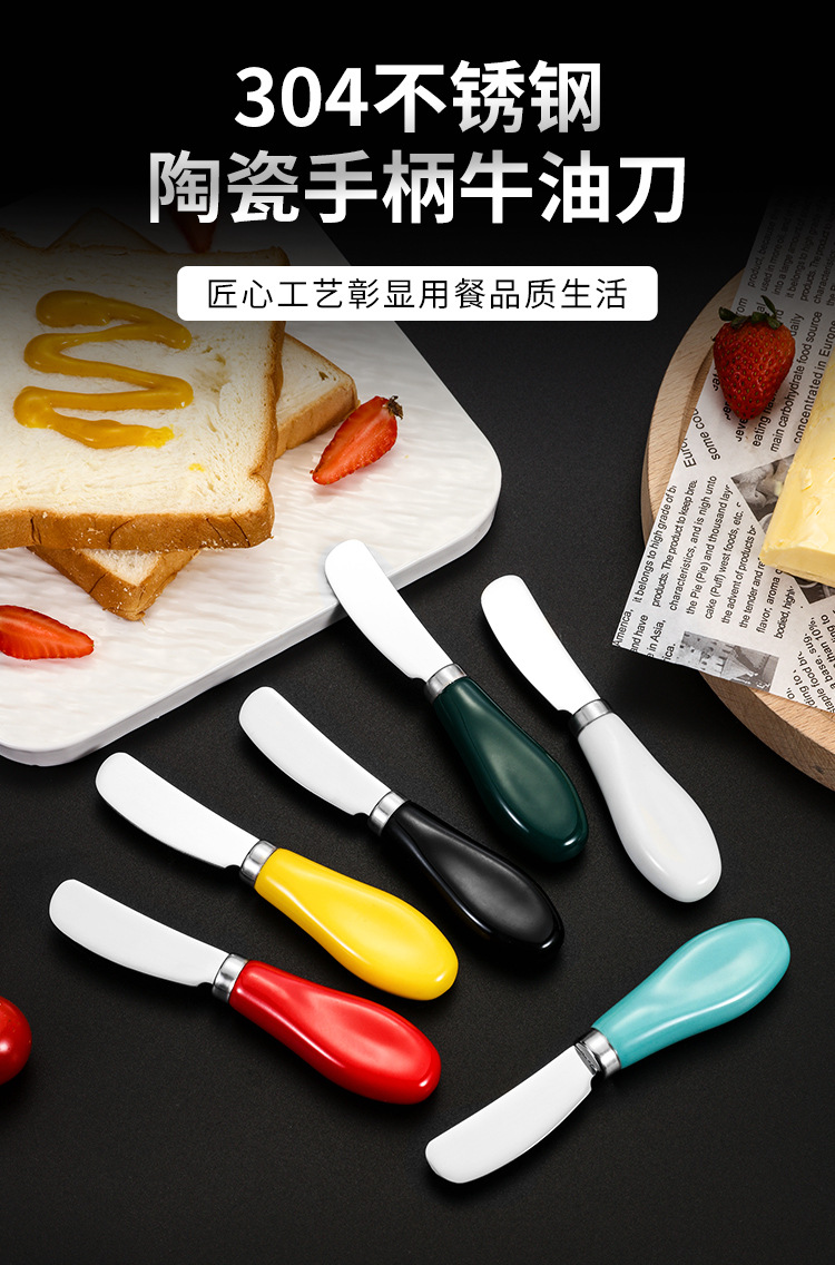 Mango de cerámica transfronteriza 304 cuchillo de mantequilla de acero inoxidable cuchillo de cubierta de pane con espátula de mermelada queso de mantequilla