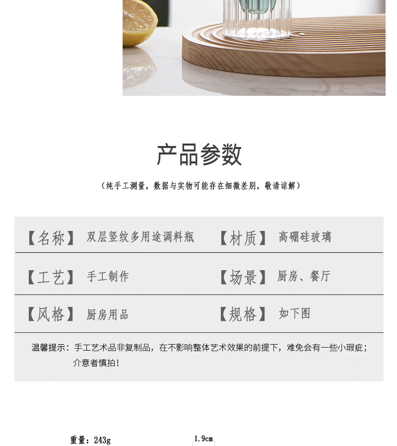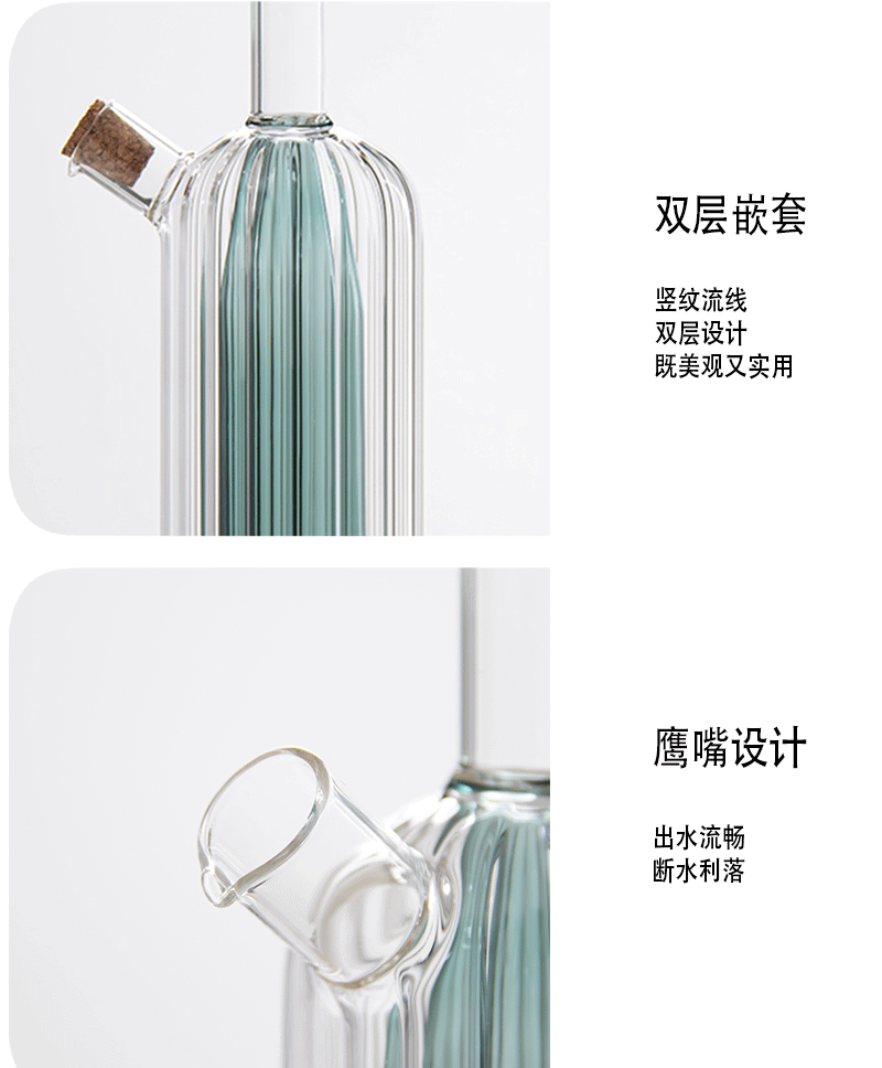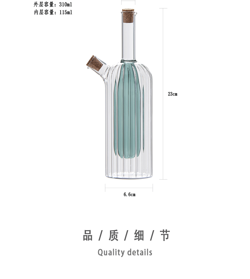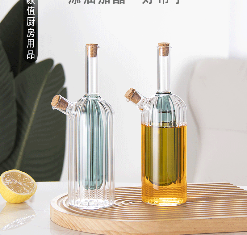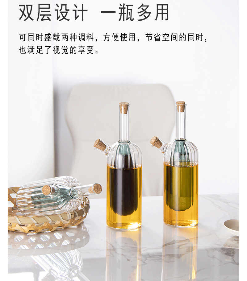 Botella de vinagre de vidrio creativa de cocina casera sellada de doble vidrio de salsa de soja botella de vinagre de condimento a prueba de fugas de aceite 2 - en - 1