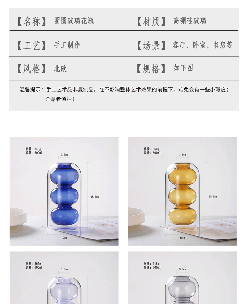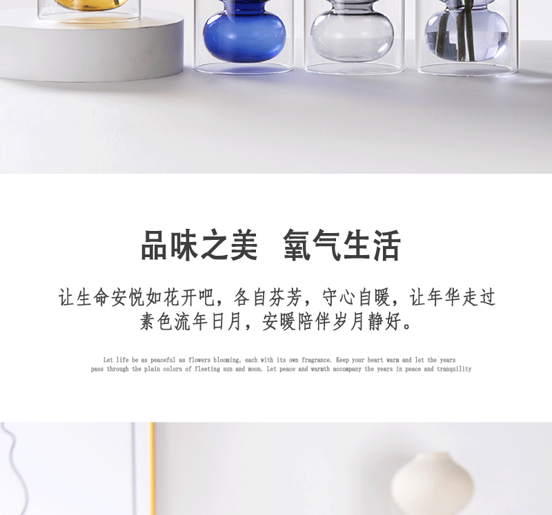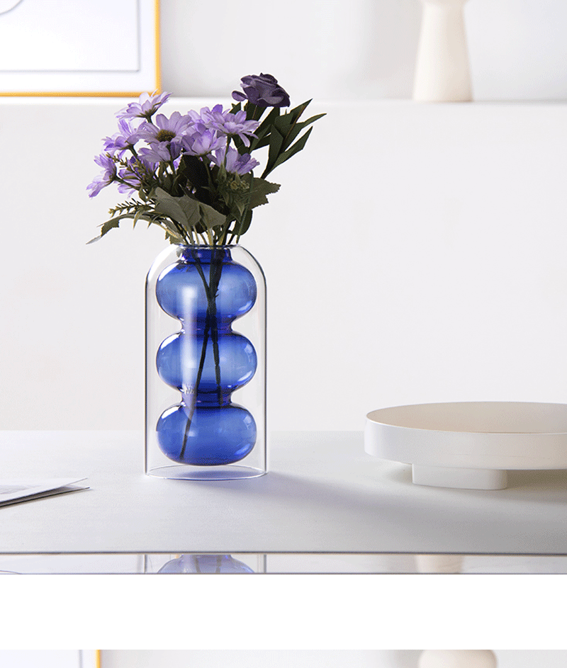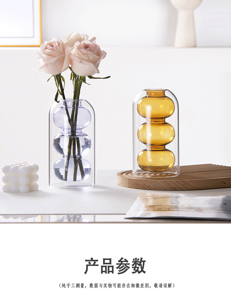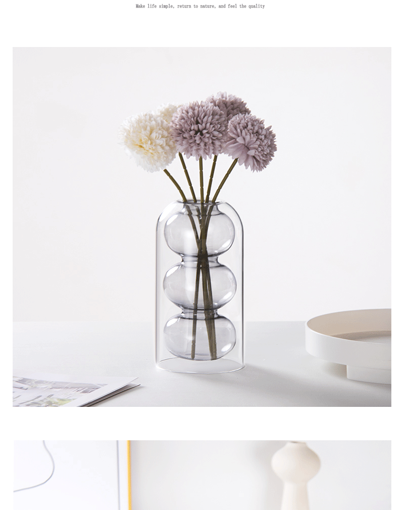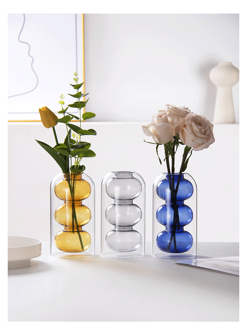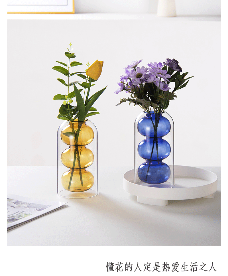 Nórdico creativo vidrio de color pequeño jarrón ins estilo decoración simple sala de estar arreglo floral flor seca agua transparente nutritiva boca fina