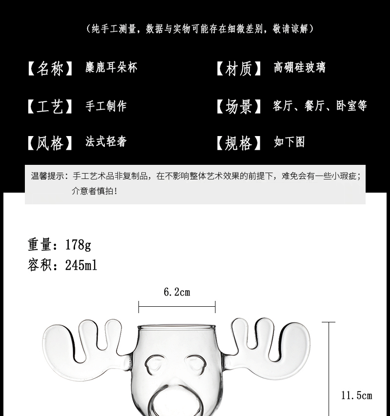 Alces lindos vidrio copa de vino alce vidrio de borosilicato taza de yogur taza de jugo de Navidad ELK vidrio