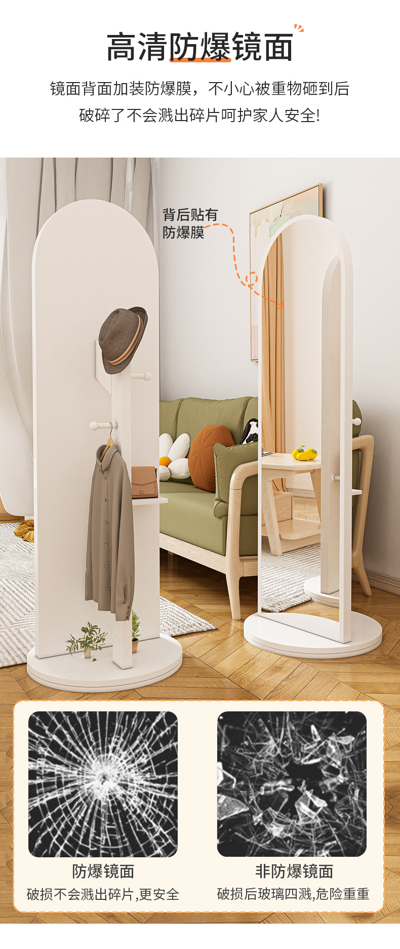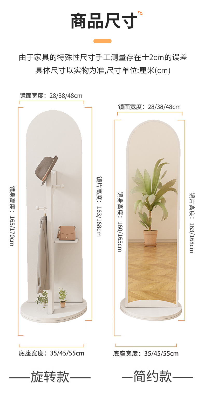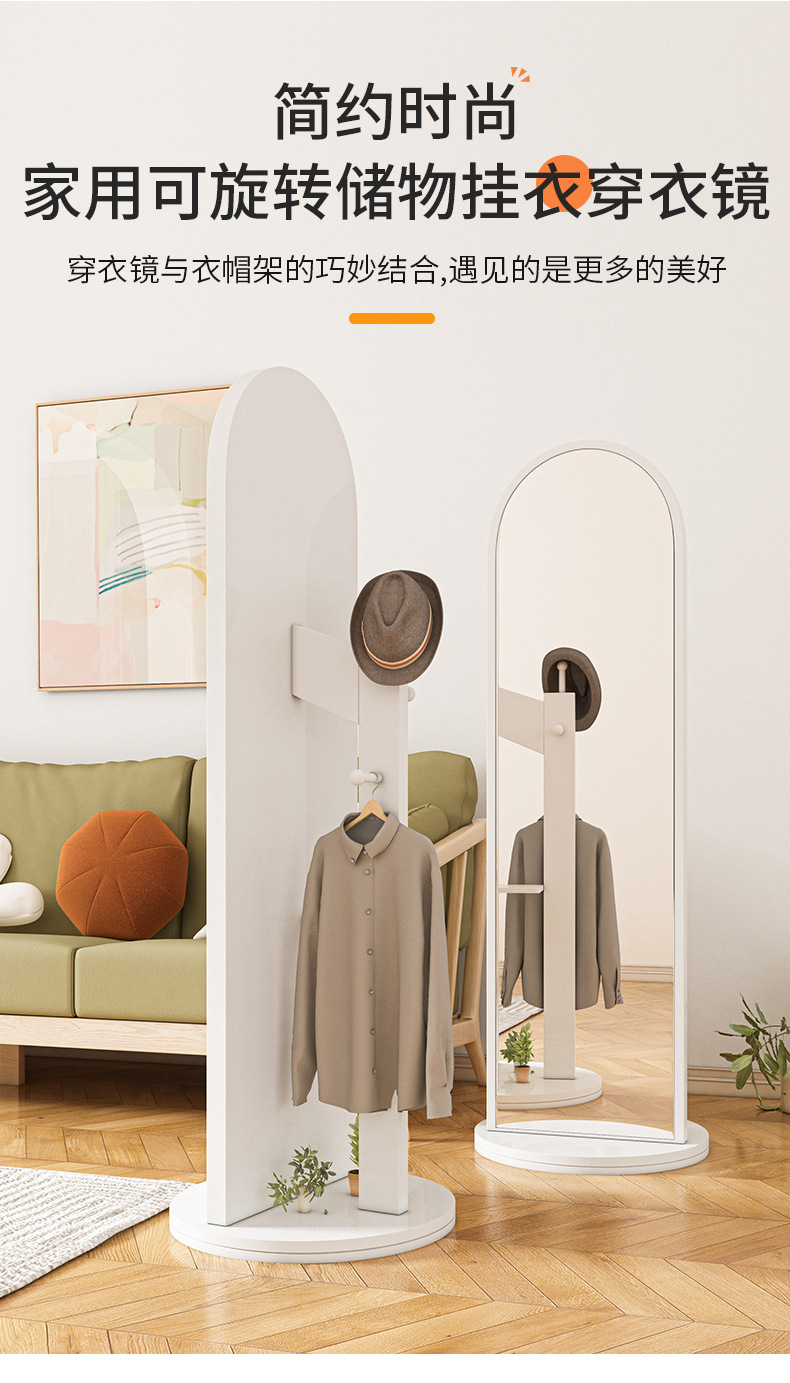Espejo giratorio de ropa colgante de suelo espejo de cuerpo completo espejo de ropa colgante de dormitorio espejo de prueba móvil vertical