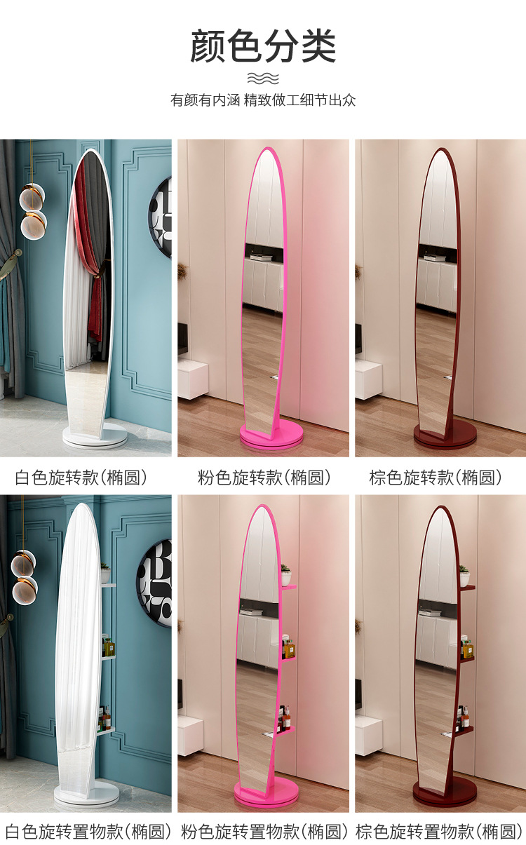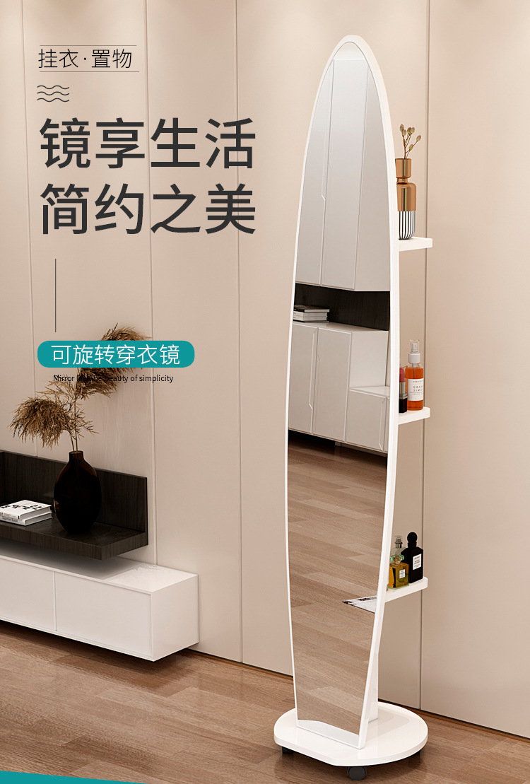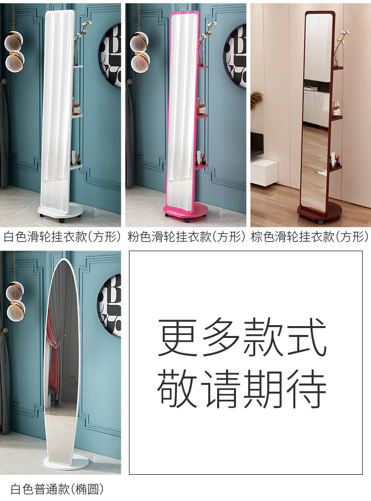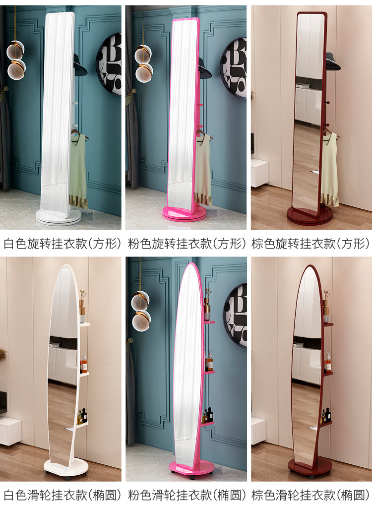 Espejo de cuerpo entero, espejo de piso para vestir, espejo de probador de dormitorio doméstico para niñas, espejo grande tridimensional móvil giratorio de viento