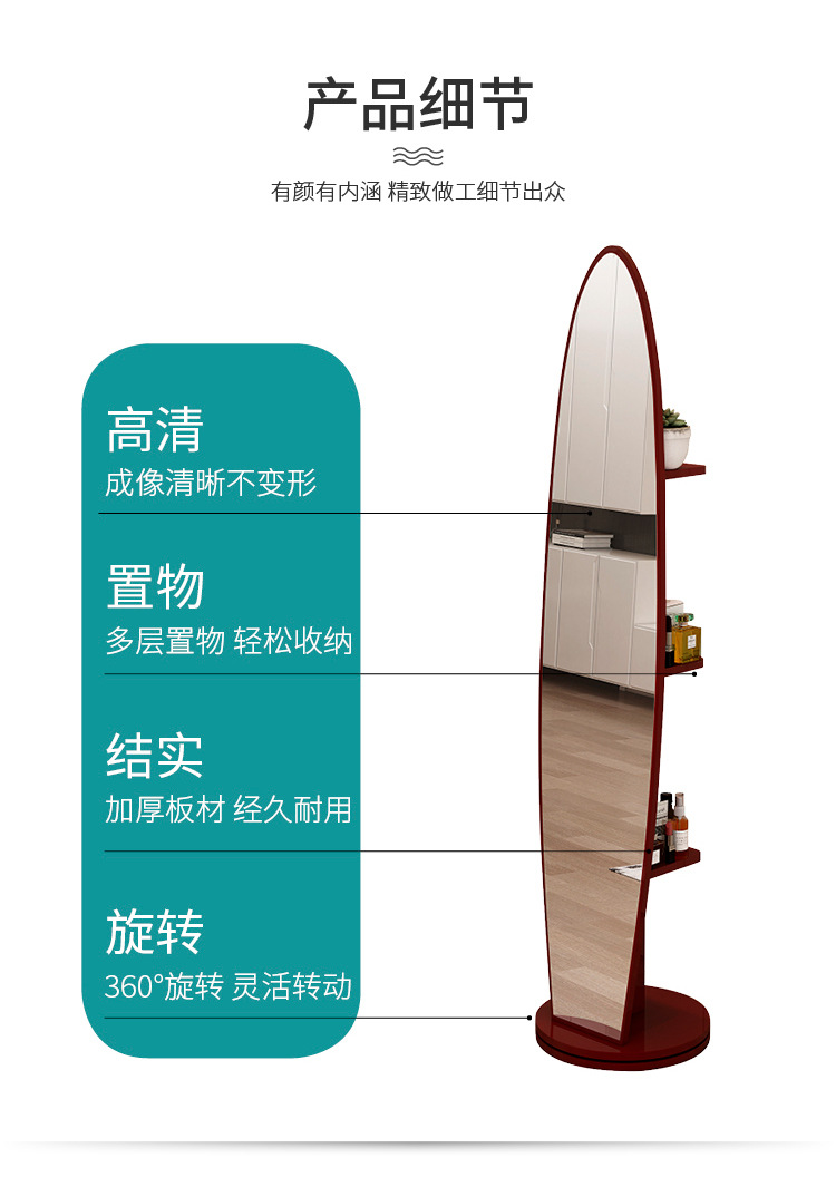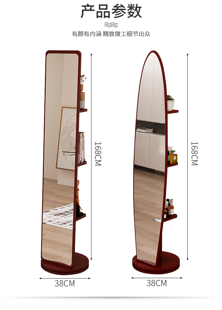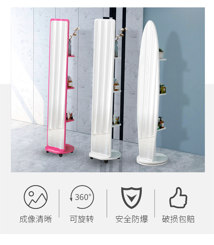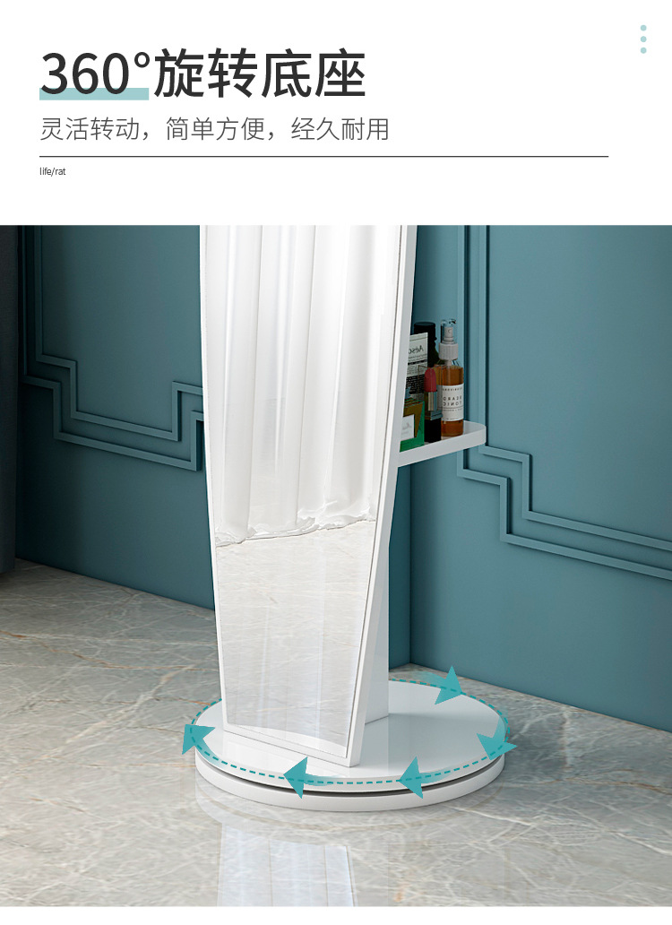 Espejo de cuerpo entero, espejo de piso para vestir, espejo de probador de dormitorio doméstico para niñas, espejo grande tridimensional móvil giratorio de viento