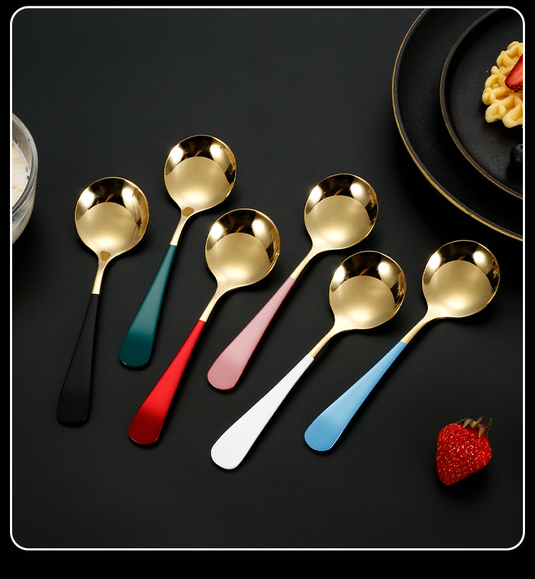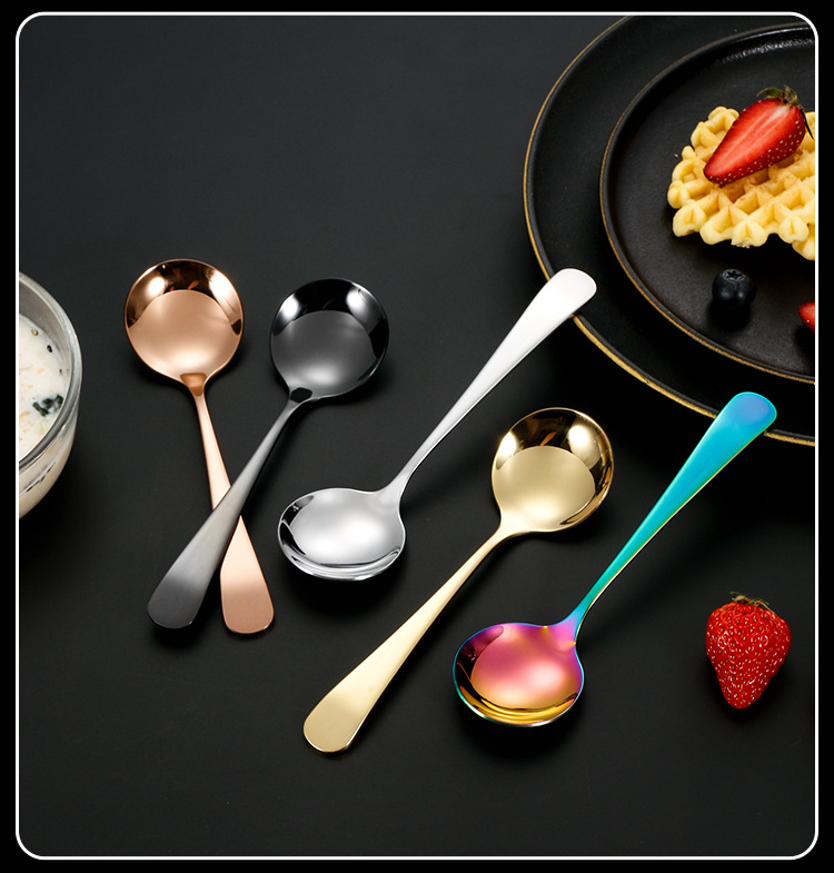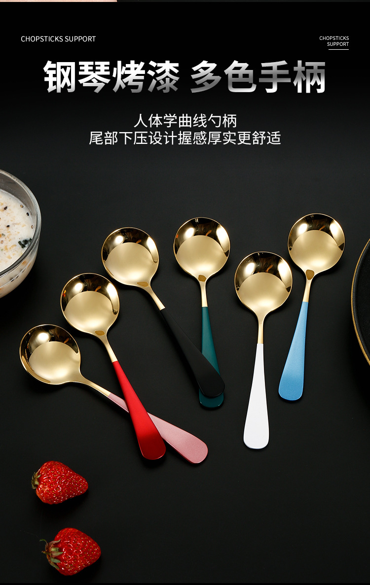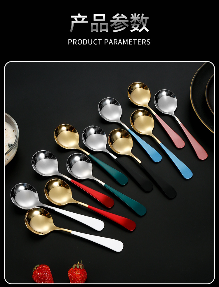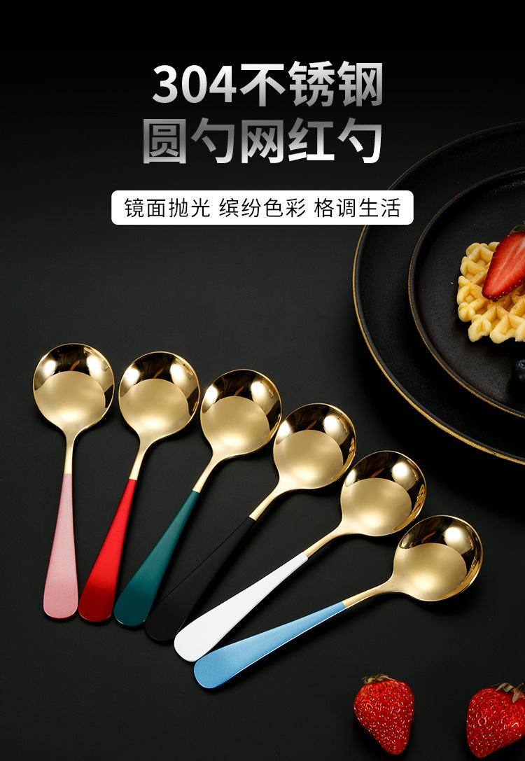 304 de acero inoxidable red cuchara roja ins cuchara de cabeza redonda engrosada hogar coreano cuchara redonda cuchara de arroz cuchara de postre