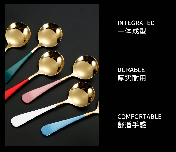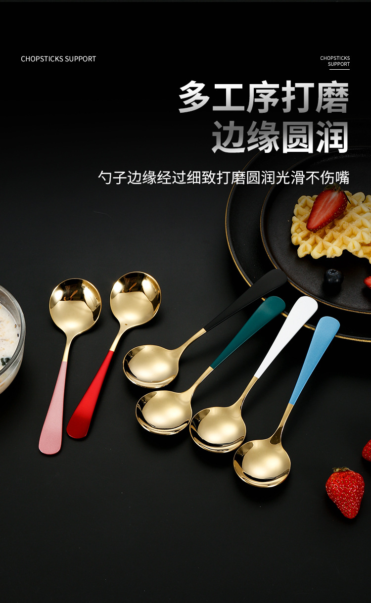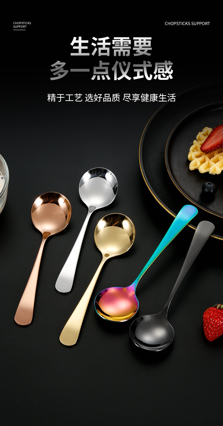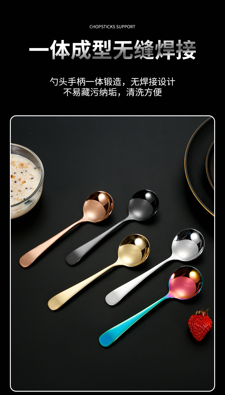 304 de acero inoxidable red cuchara roja ins cuchara de cabeza redonda engrosada hogar coreano cuchara redonda cuchara de arroz cuchara de postre