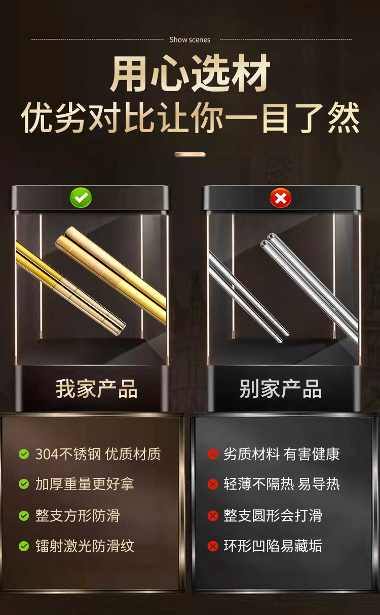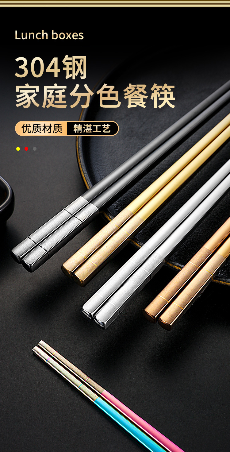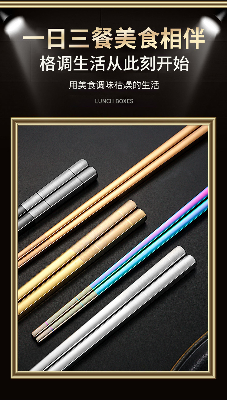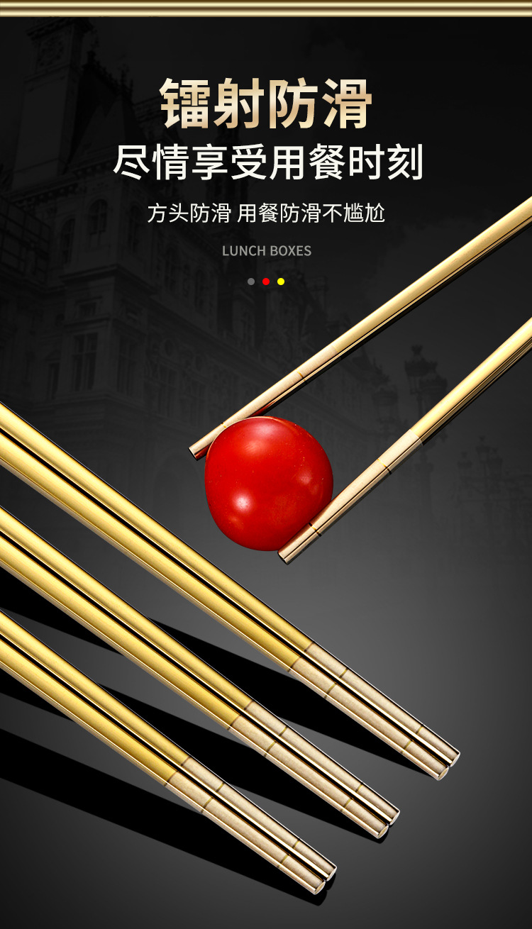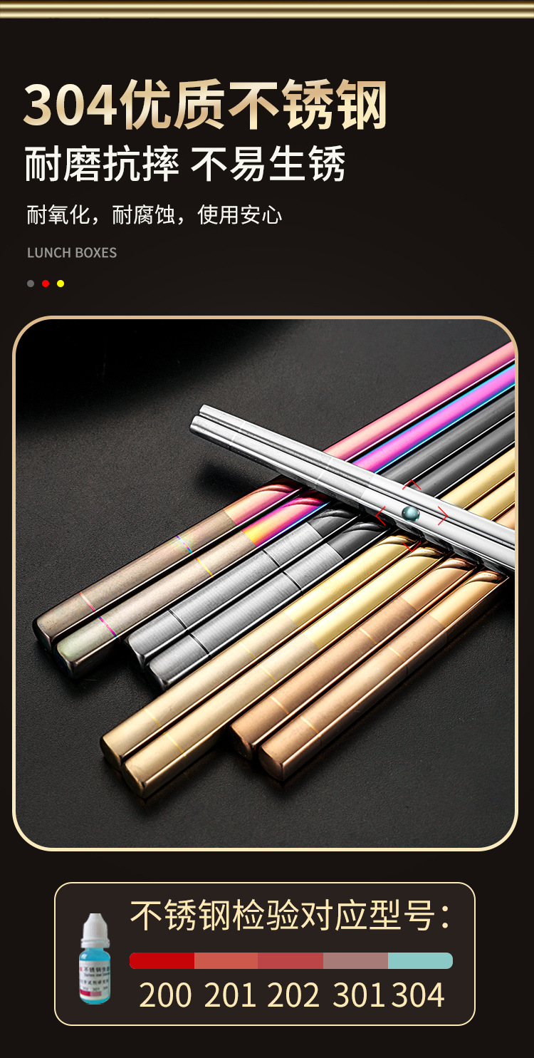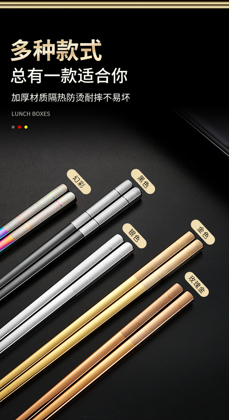 Directo de fábrica de acero inoxidable 304 palillos aislamiento cuadrado completo engrosado antideslizante logotipo imprimible hogar palillos al por mayor