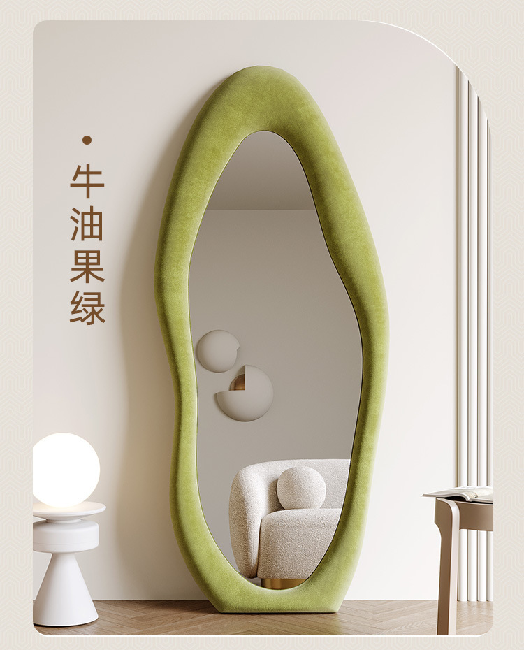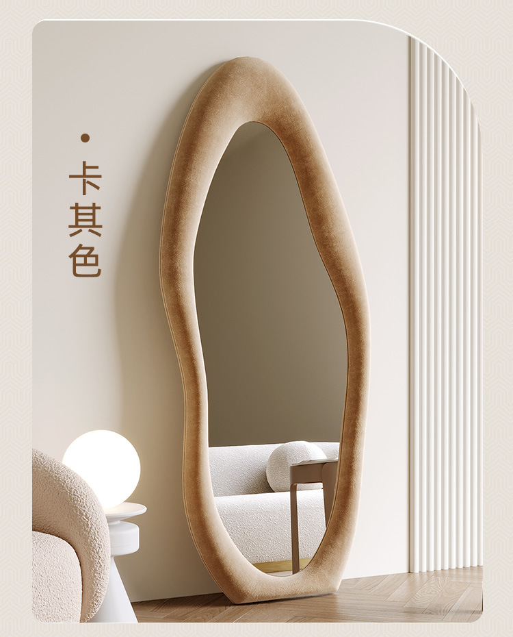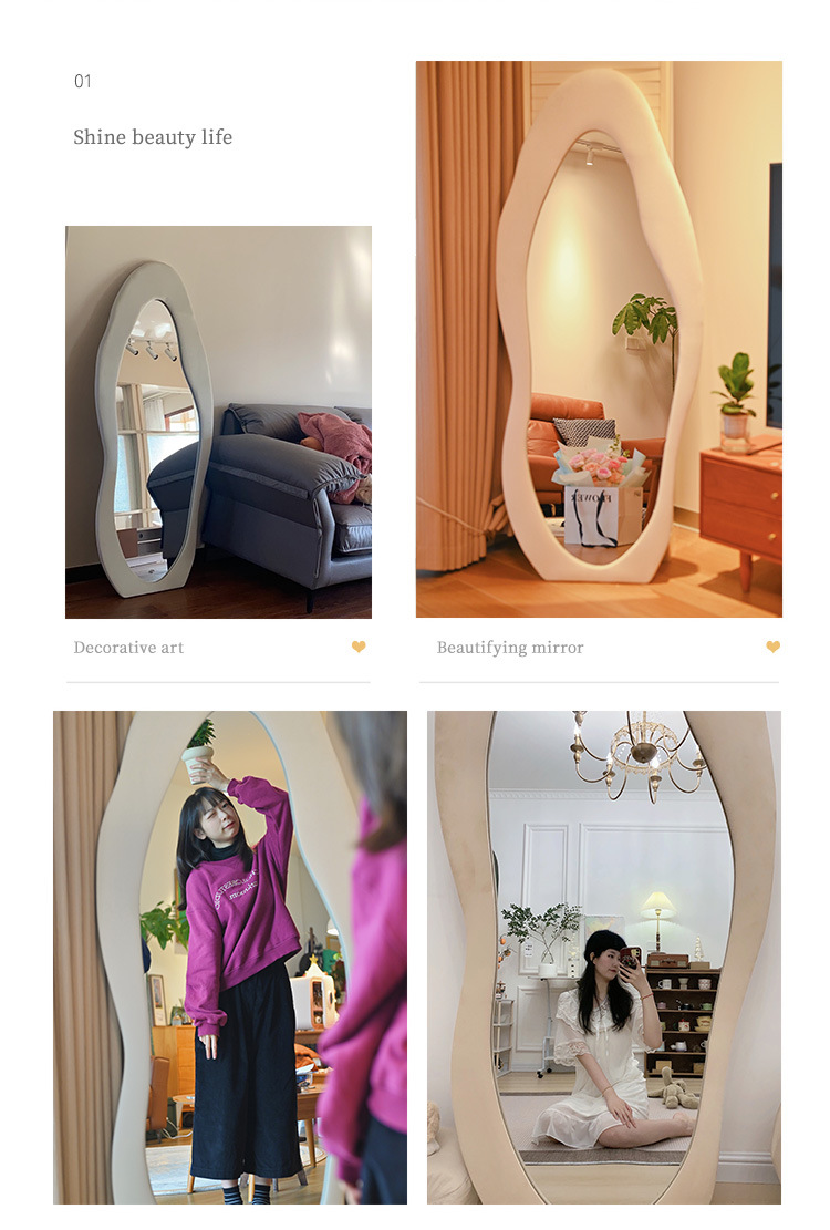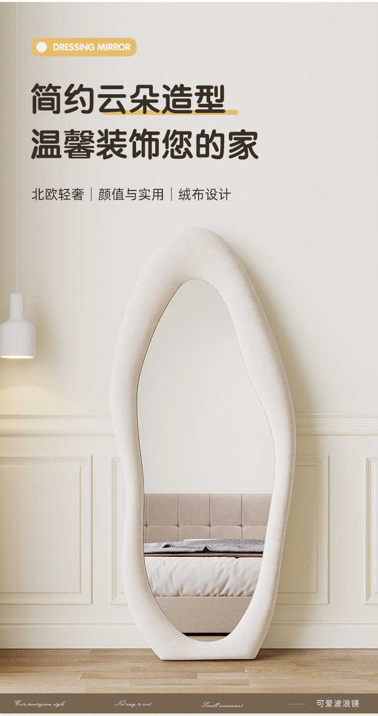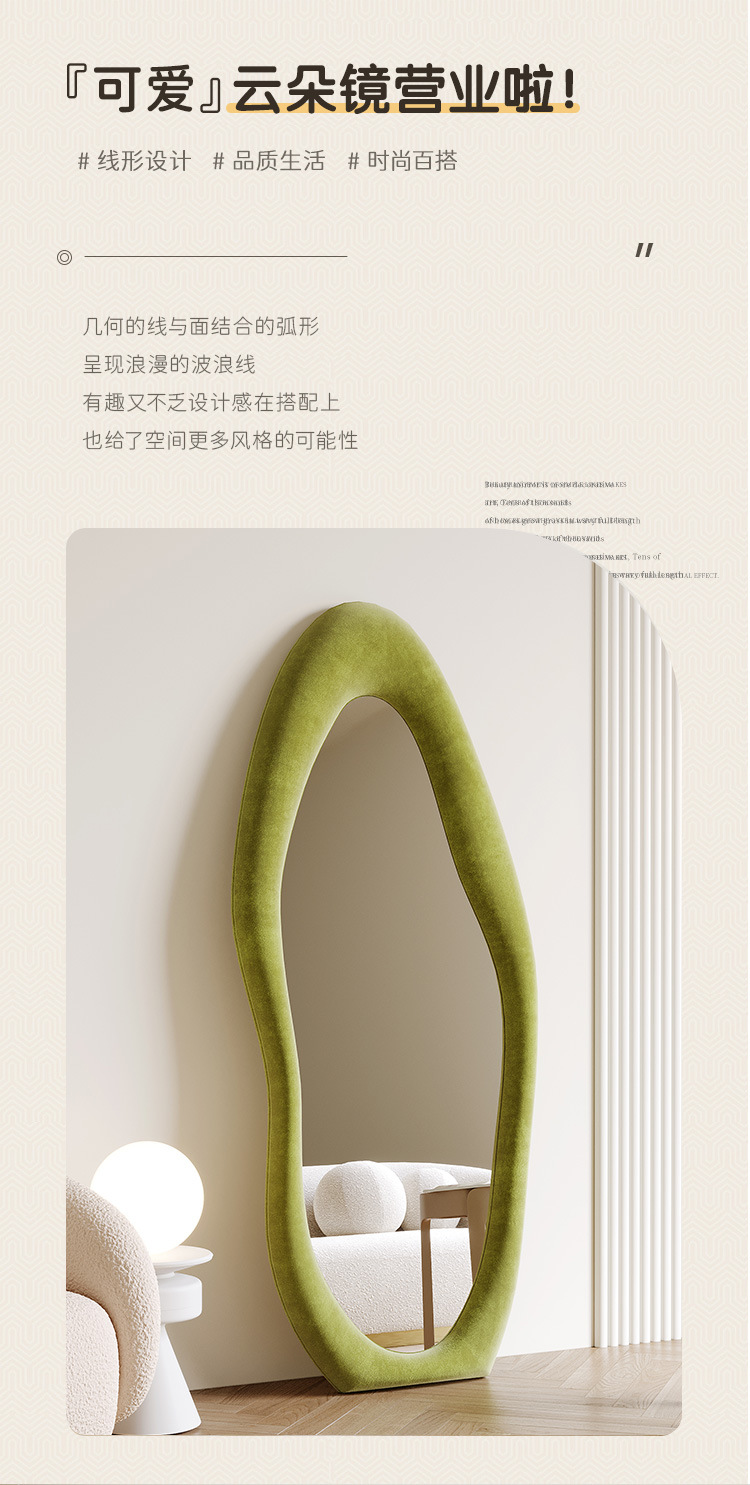 Espejo de forma especial de estilo crema Espejo de cuerpo entero Espejo de cuerpo entero de nube Espejo de tocador de tienda de ropa Espejo de tocador Dormitorio doméstico Espejo de piso neto de red