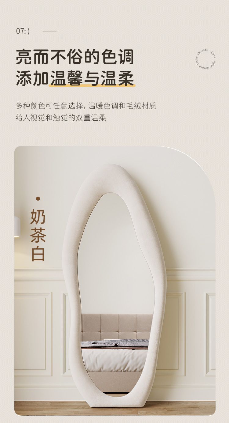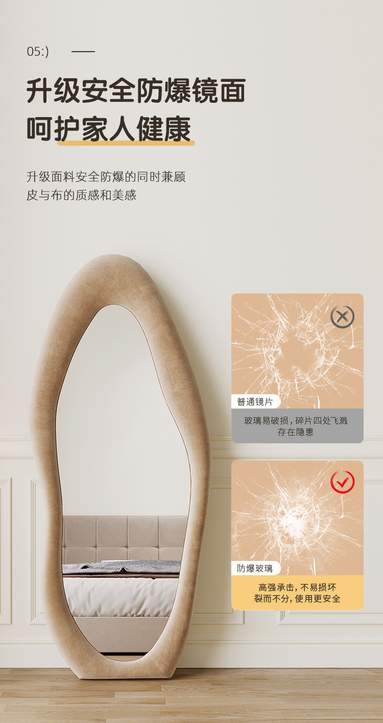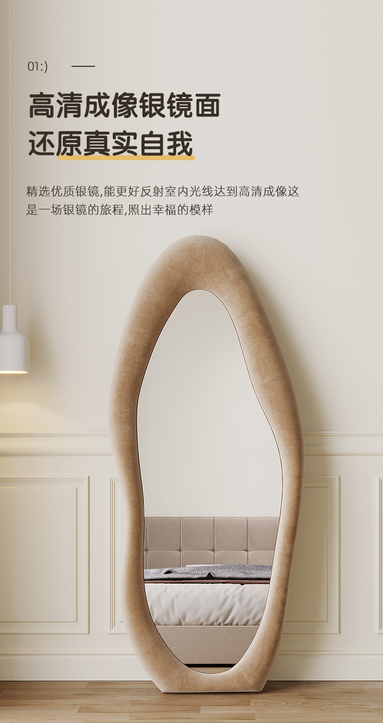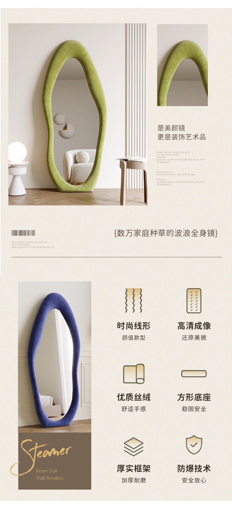 Espejo de forma especial de estilo crema Espejo de cuerpo entero Espejo de cuerpo entero de nube Espejo de tocador de tienda de ropa Espejo de tocador Dormitorio doméstico Espejo de piso neto de red