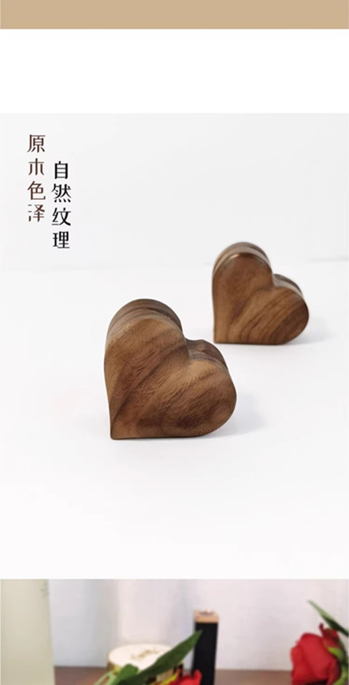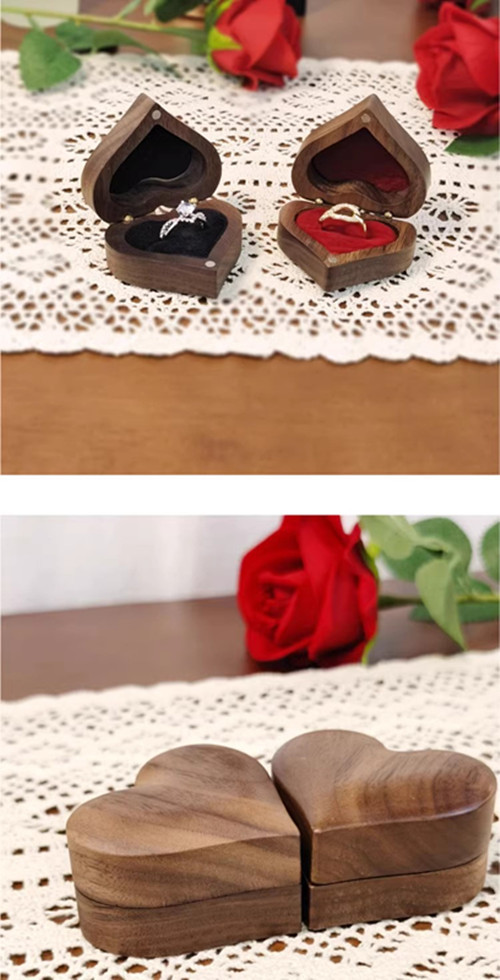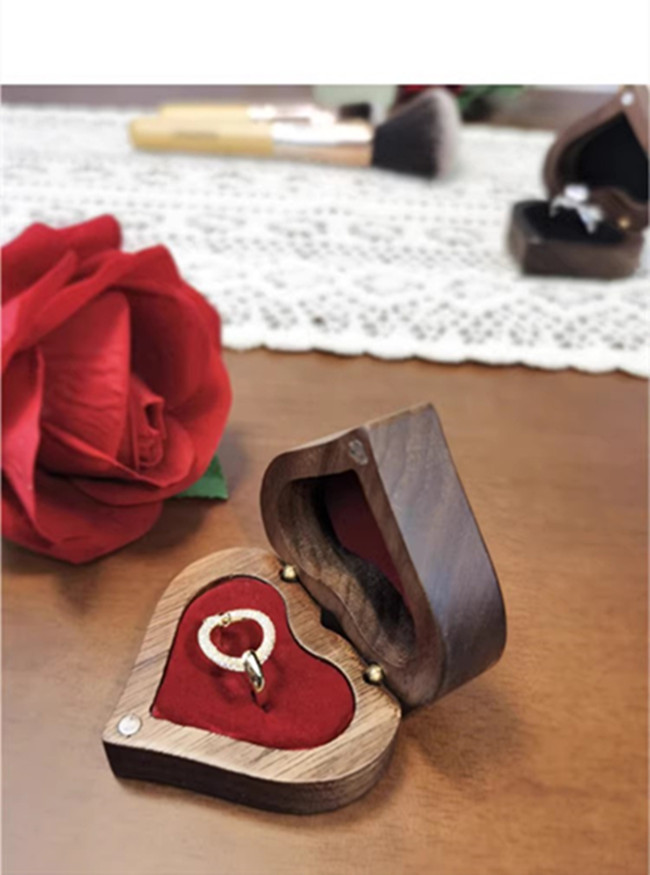 Caja de anillo creativo en forma de corazón romántico pareja Nogal Negro madera anillo de amor caja de almacenamiento de joyería de madera maciza