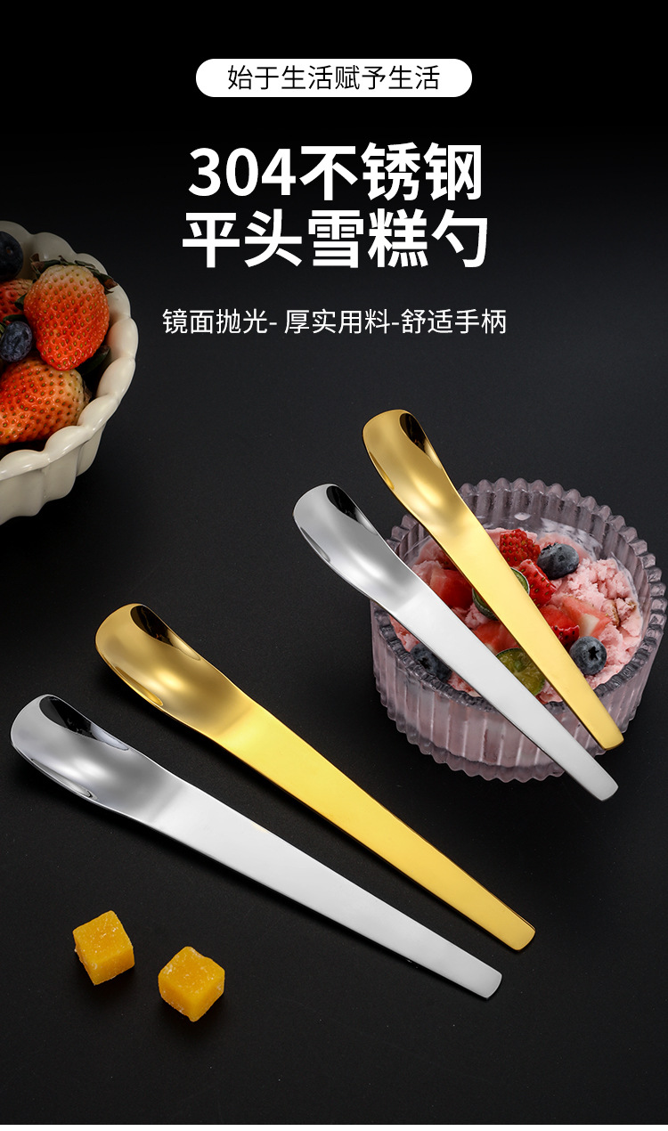 Cruz-frontera creativa 304 cuchara de acero inoxidable helado cuchara helado cabeza plana postre cuchara de mezcla cuchara de la torta