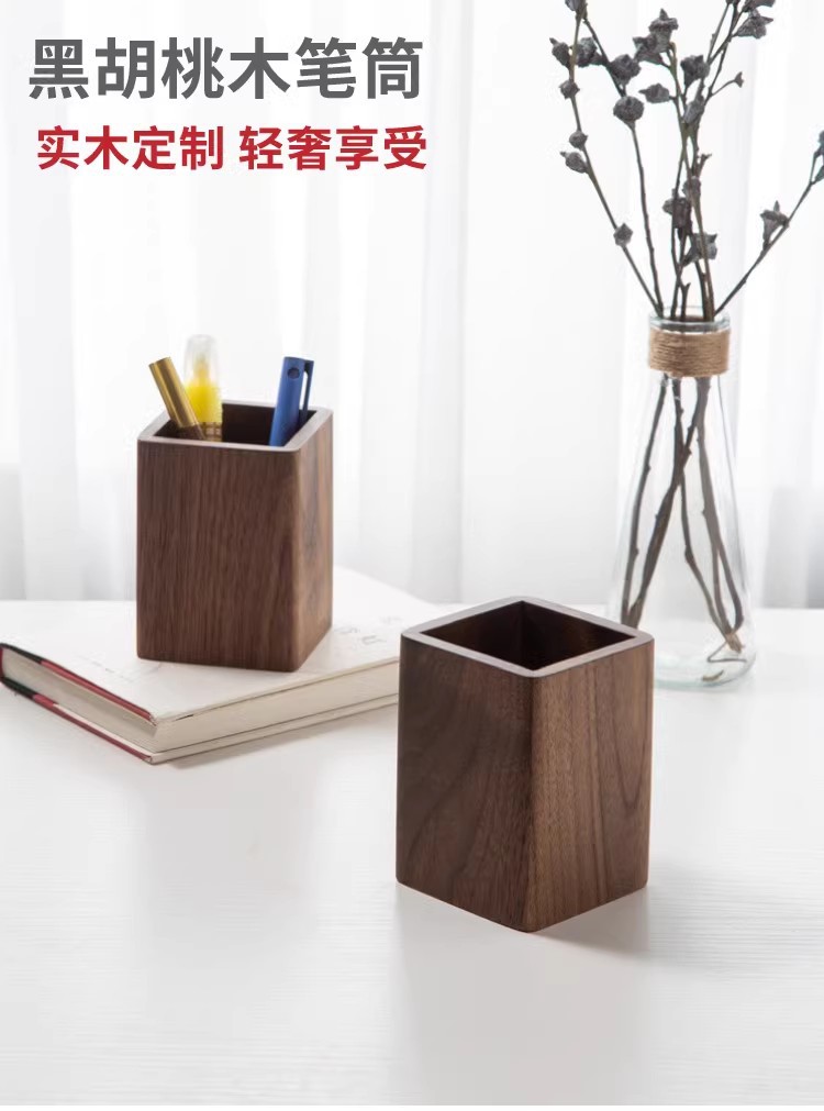 Negro nogal moderno minimalista titular de la pluma estudiante de almacenamiento de madera maciza creativa Oficina de escritorio decoración titular de la pluma de lujo
