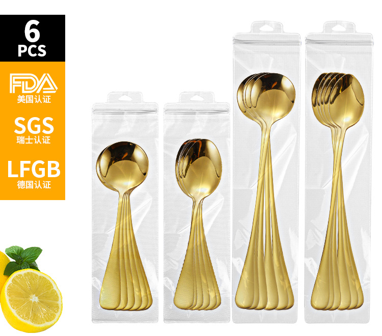 1010 cuchara de acero inoxidable comer cuchara para niños cuchara de cocina cuchara de hielo cuchara redonda cuchara puntiaguda 6 piezas traje