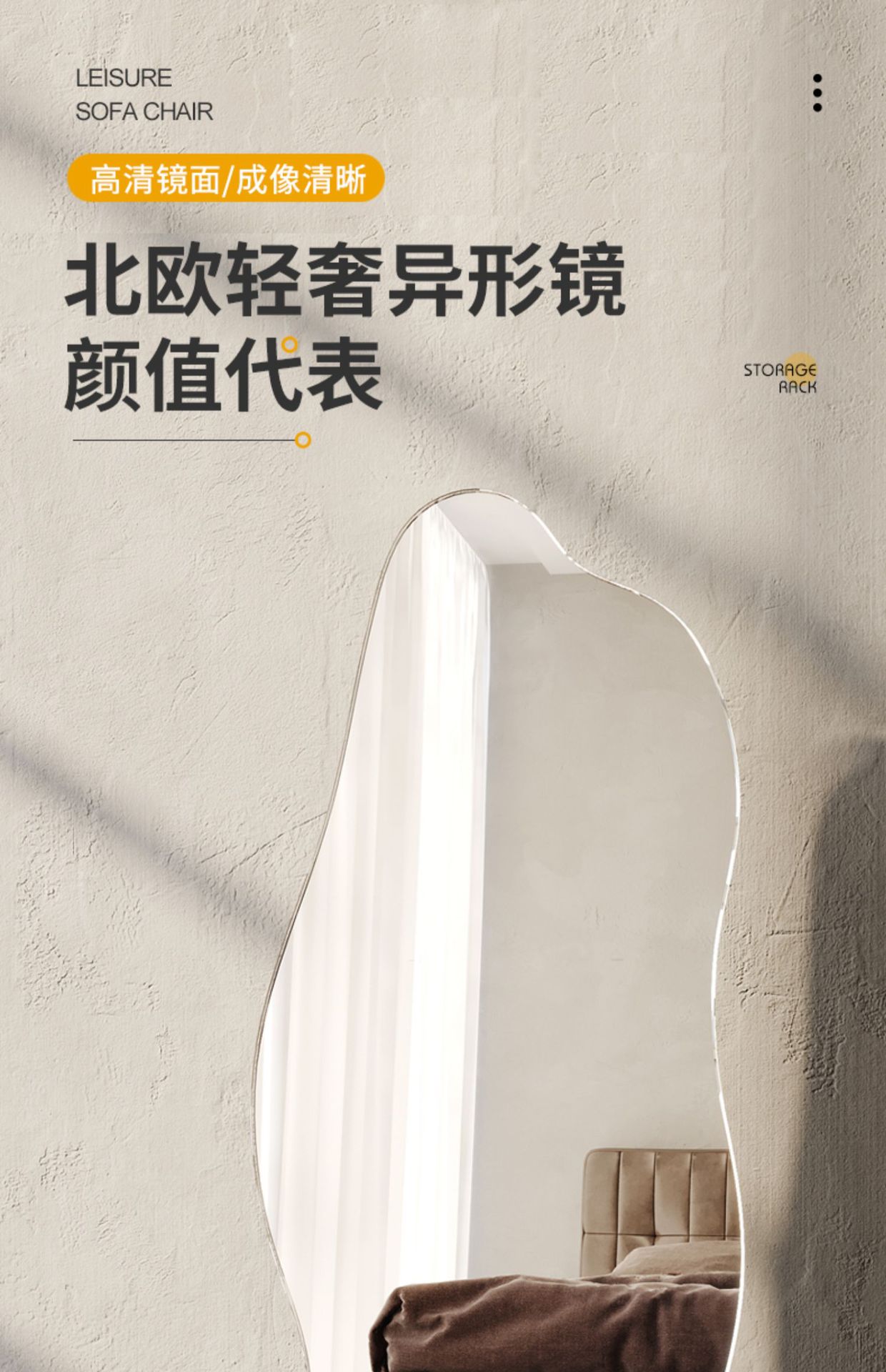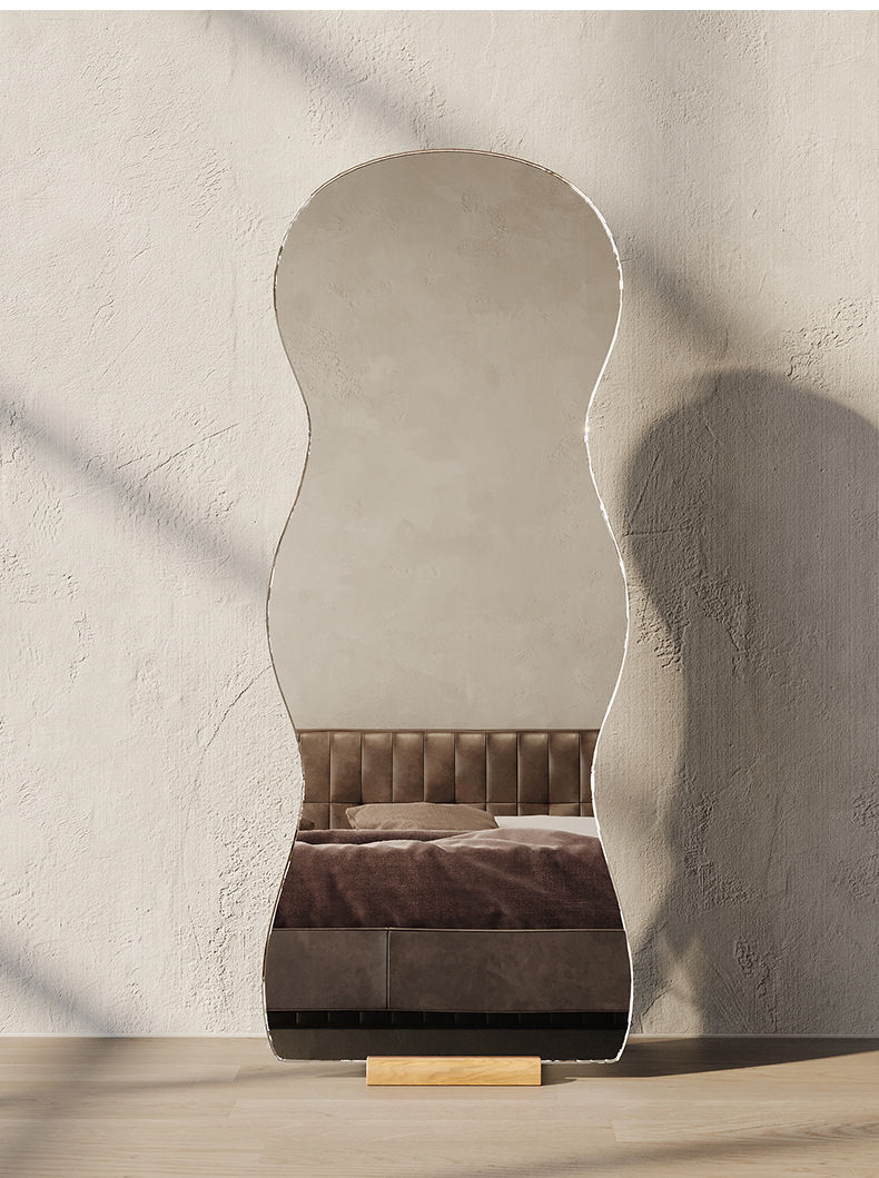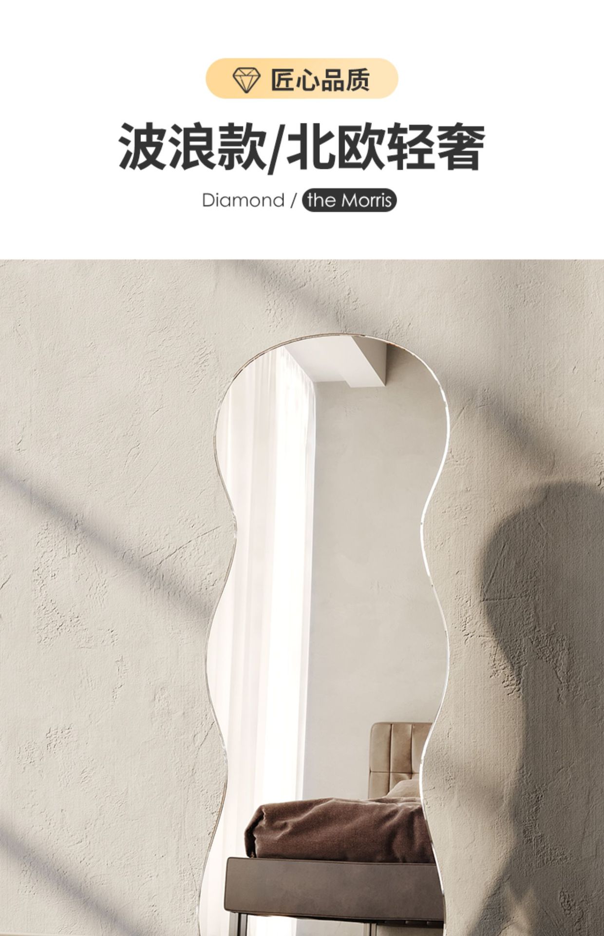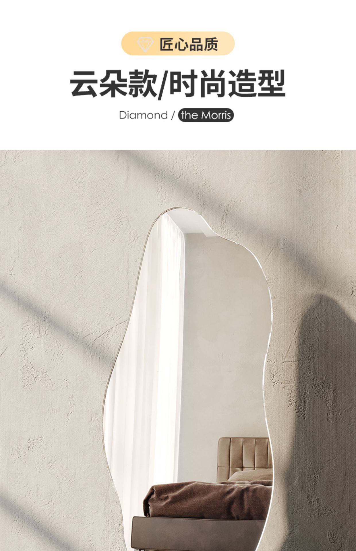 Espejo de cuerpo entero de forma irregular, de pie, para uso doméstico, dormitorio de niñas, espejo de pared con forma de nube tridimensional irregular, no requiere instalación.
