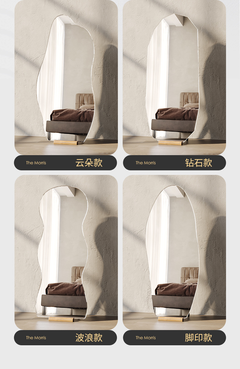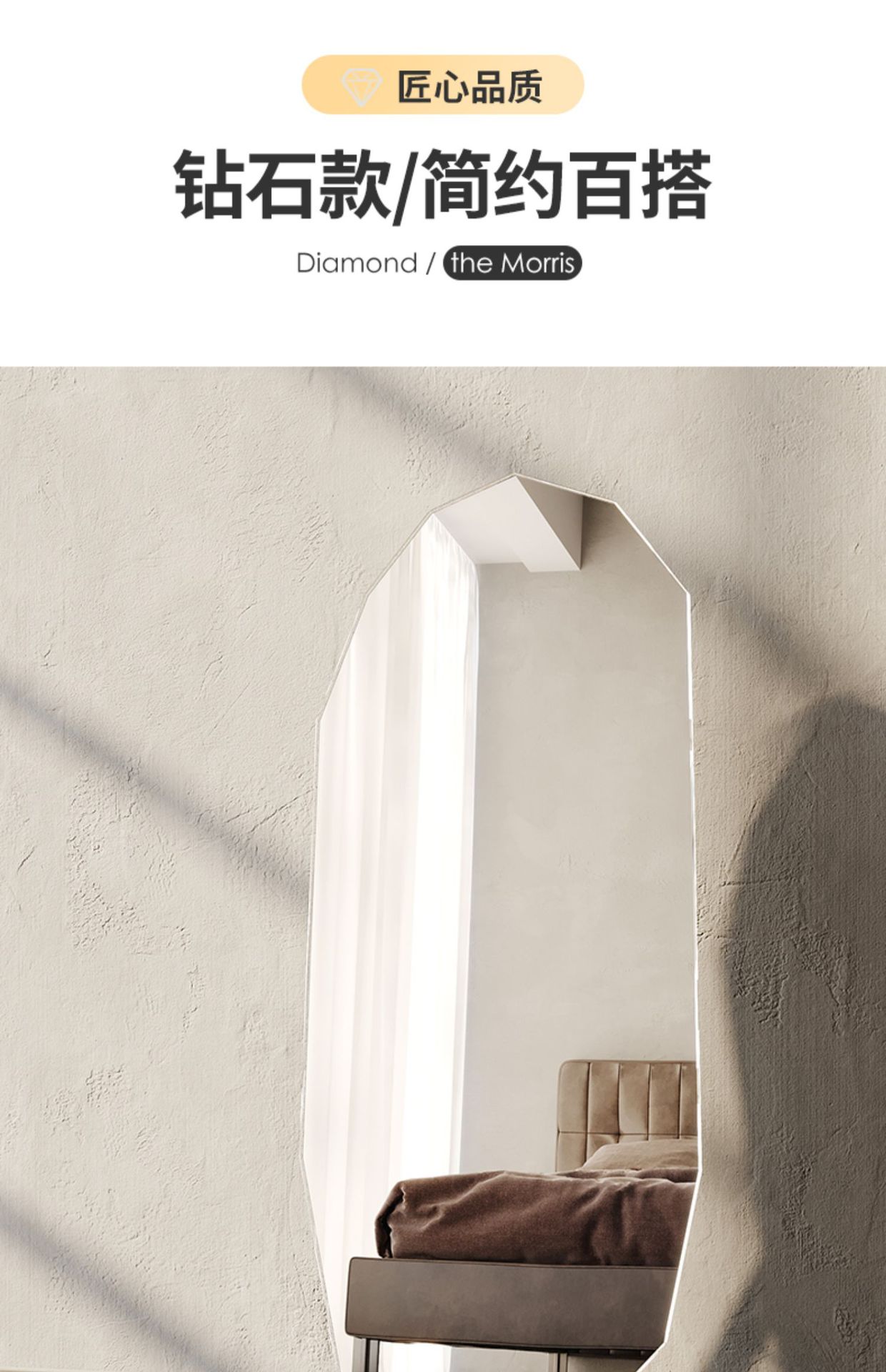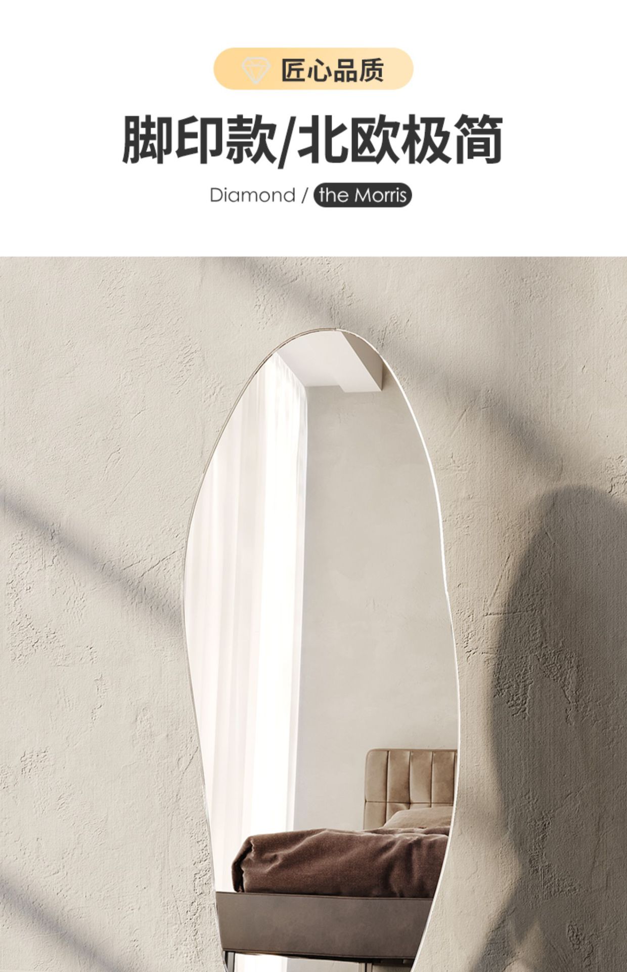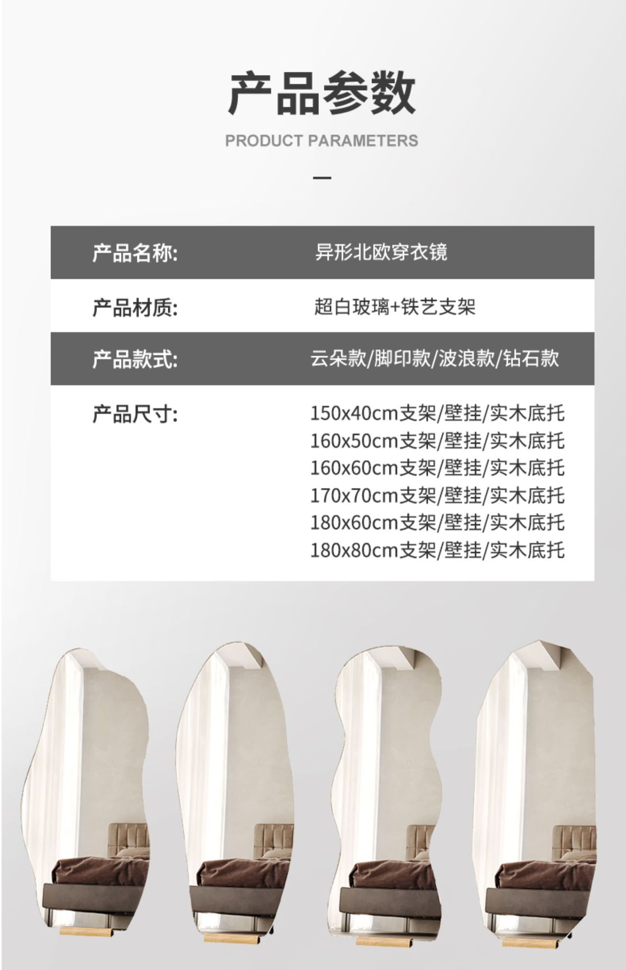 Espejo de cuerpo entero de forma irregular, de pie, para uso doméstico, dormitorio de niñas, espejo de pared con forma de nube tridimensional irregular, no requiere instalación.